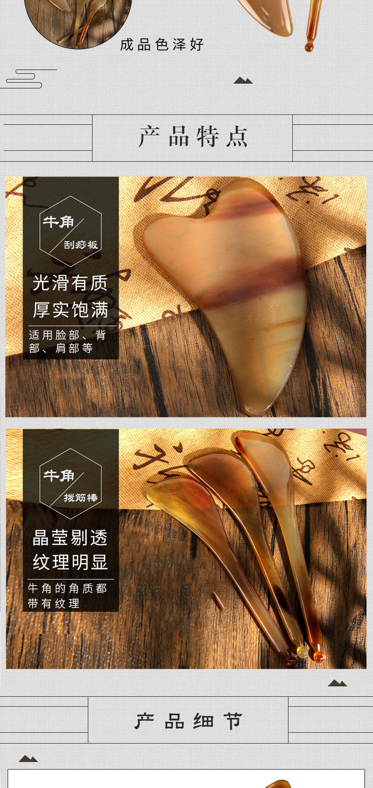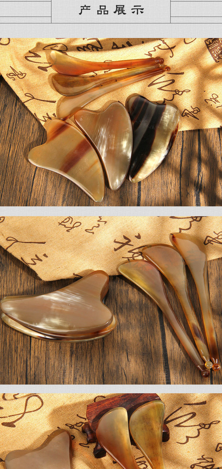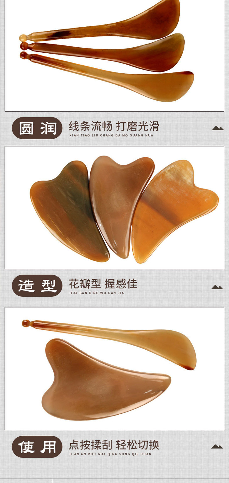 「人工打磨 晶莹剔透」牛角刮痧板 点穴拨筋棒 居家日用面部颈部造型刮痧片眼部经络按摩眼刷