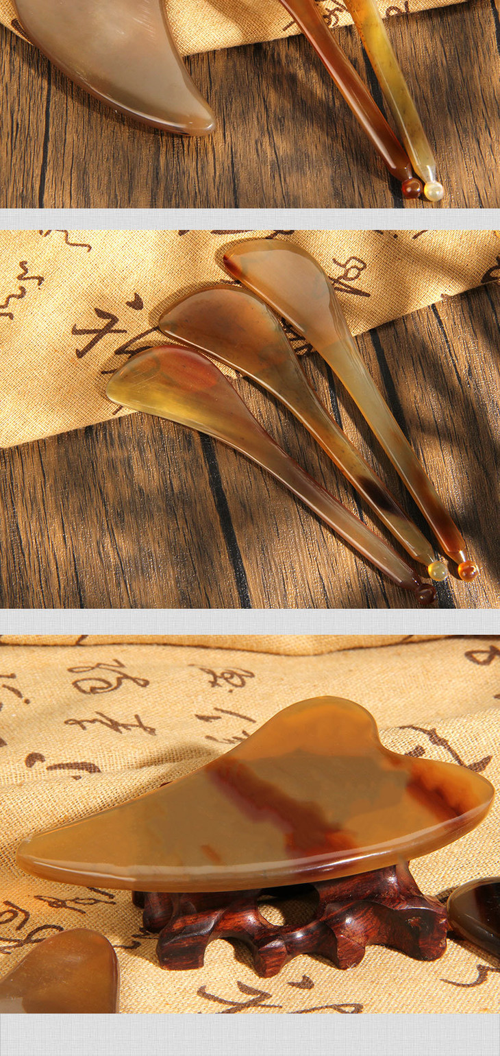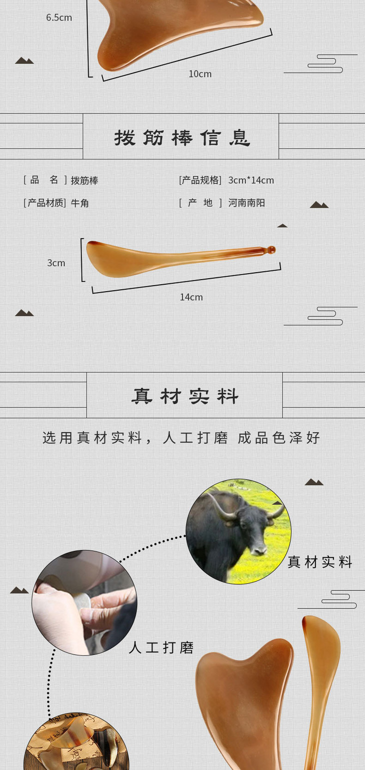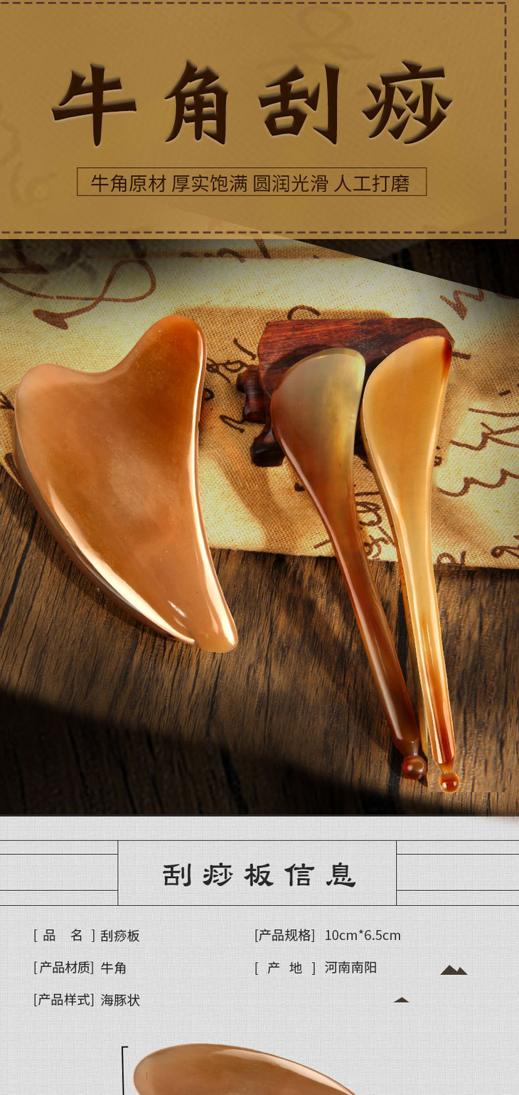 「人工打磨 晶莹剔透」牛角刮痧板 点穴拨筋棒 居家日用面部颈部造型刮痧片眼部经络按摩眼刷