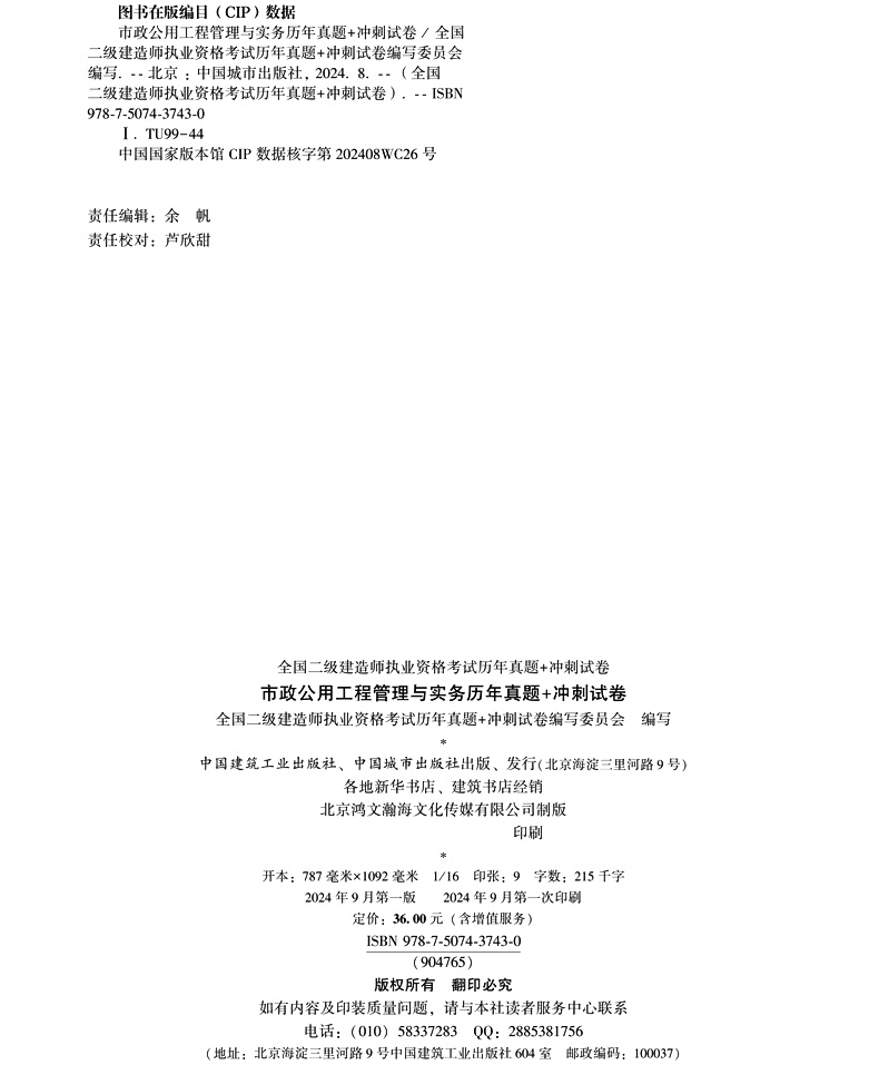 书名:2025市政公用工程管理与实务历年真题+冲刺试卷