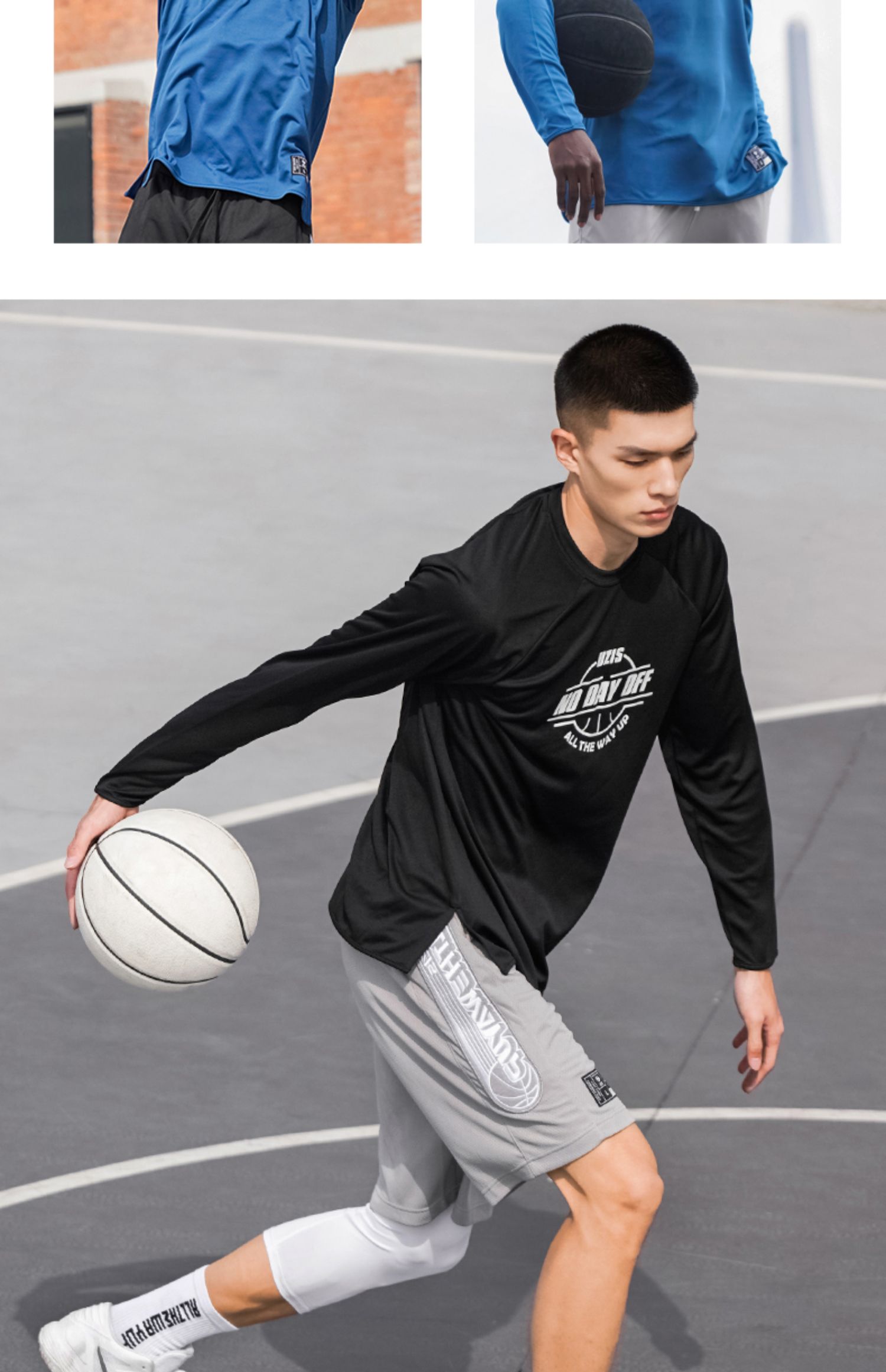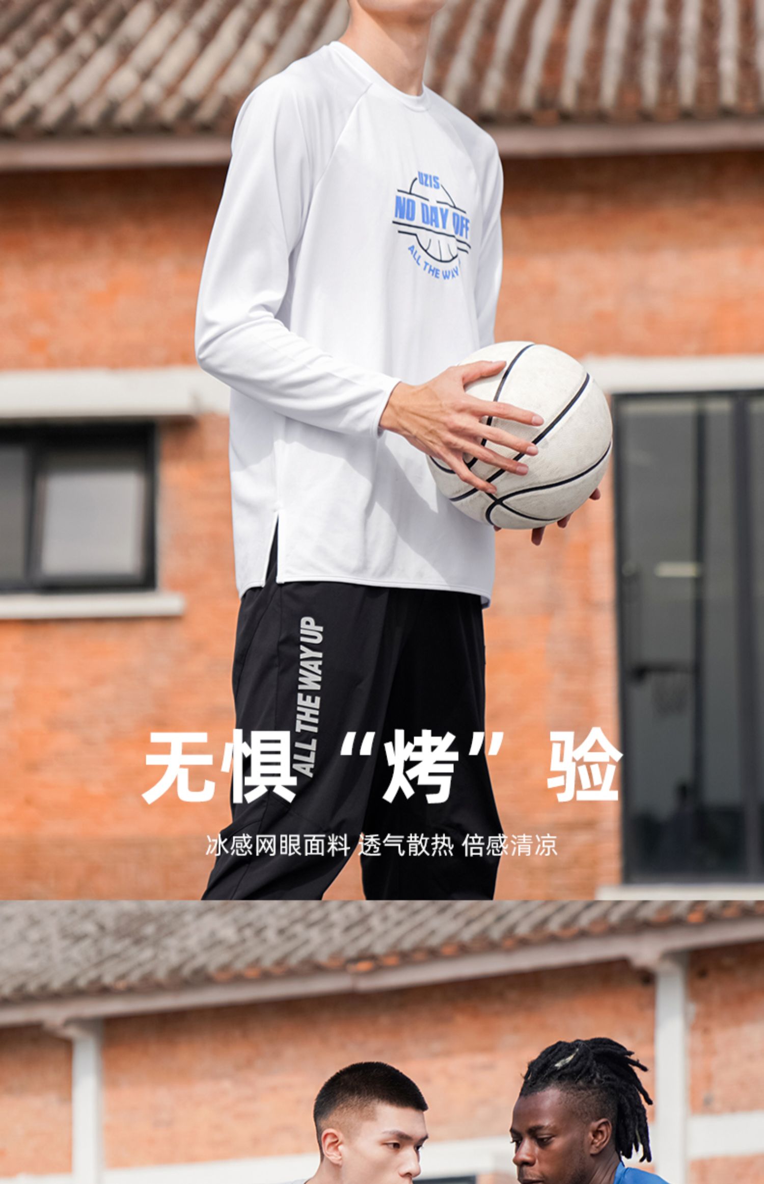 无休 UZIS速干长袖男夏季透气网眼宽松冰丝T恤健身篮球上衣[不熄]