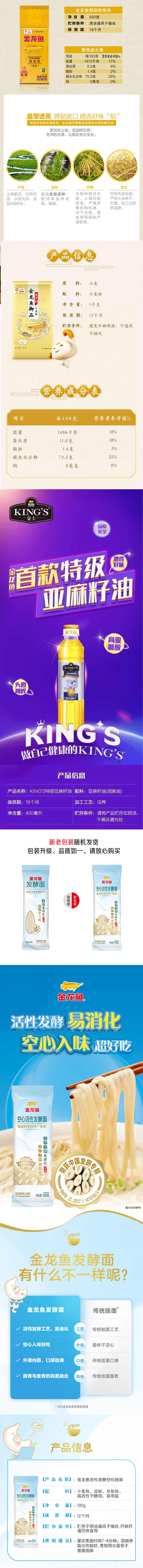 金龙鱼御品珍珠米500G*2金龙鱼御品麦芯粉1KG*1金龙鱼低盐活性发酵挂面100G*3KING'S特级亚麻籽油400ML*1