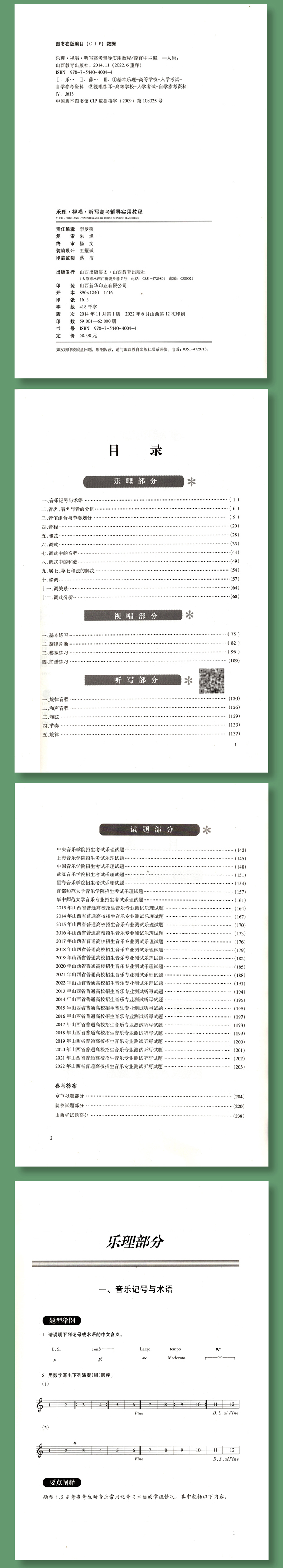 2022 附二维码 乐理视唱听写高考辅导实用教程 艺术专业 艺考 教材 升学/教学/个人娱乐