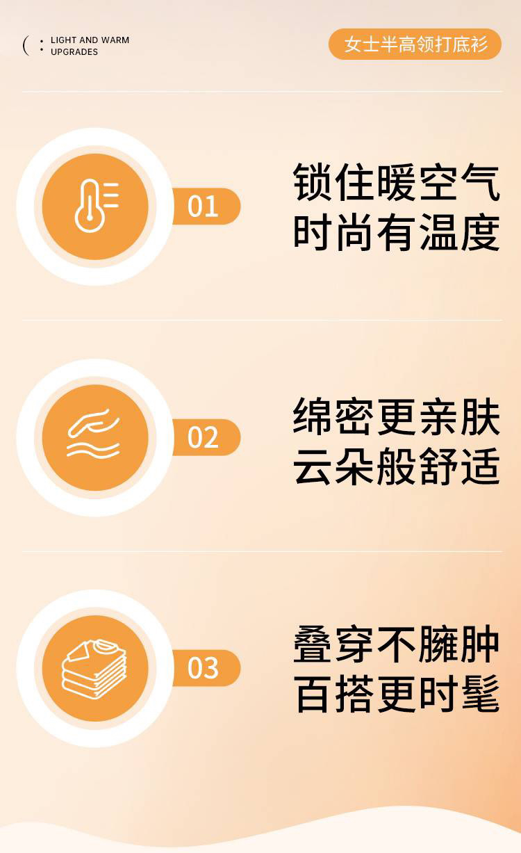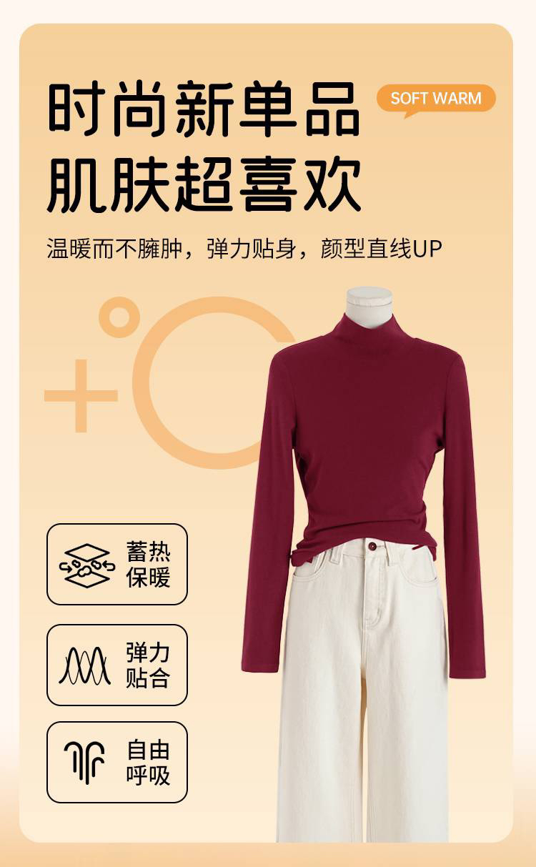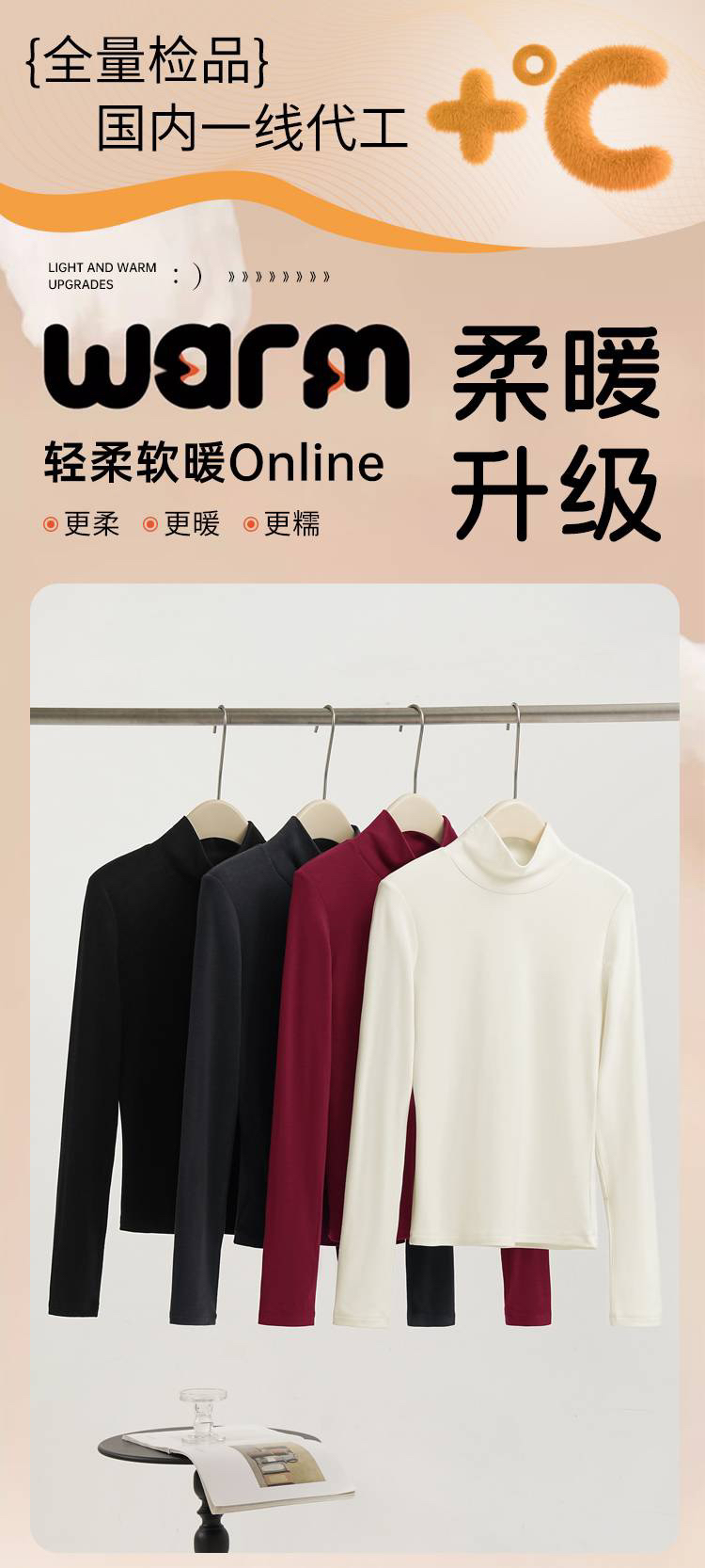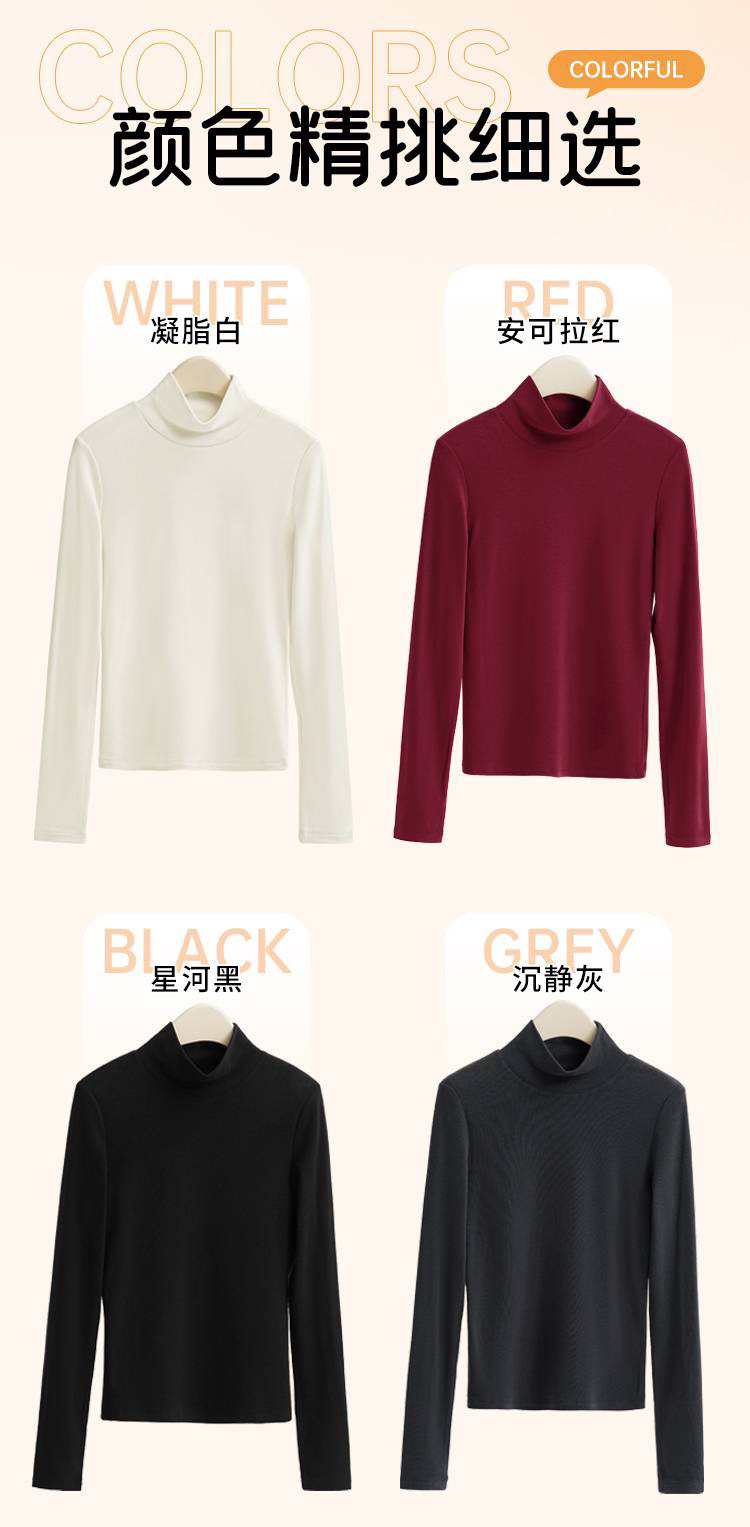 德绒女款6.0版软糯亲肤保暖高弹半高领长袖打底衫