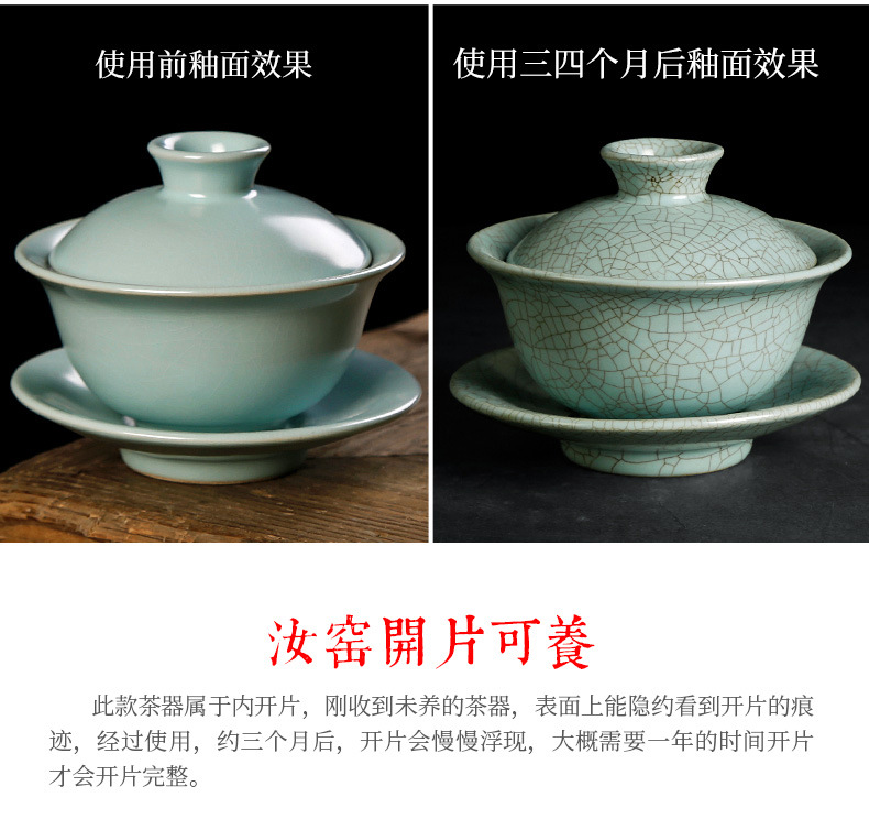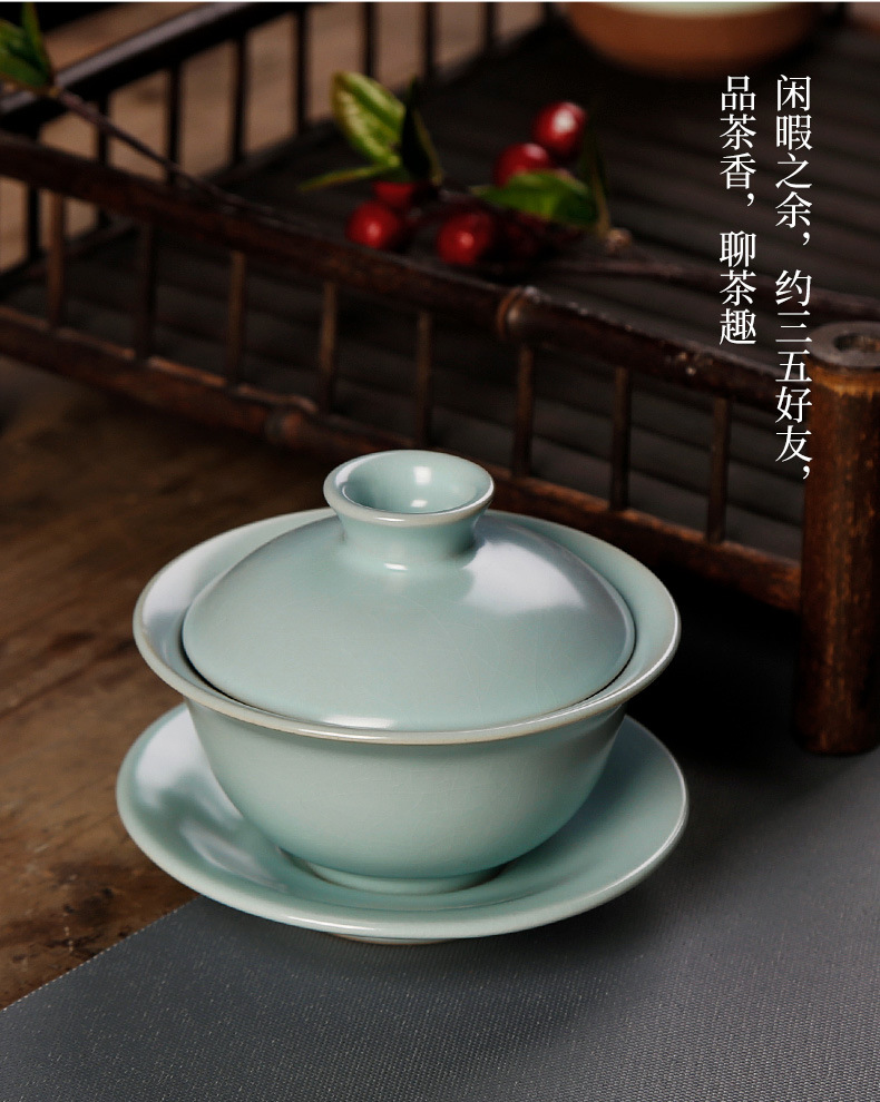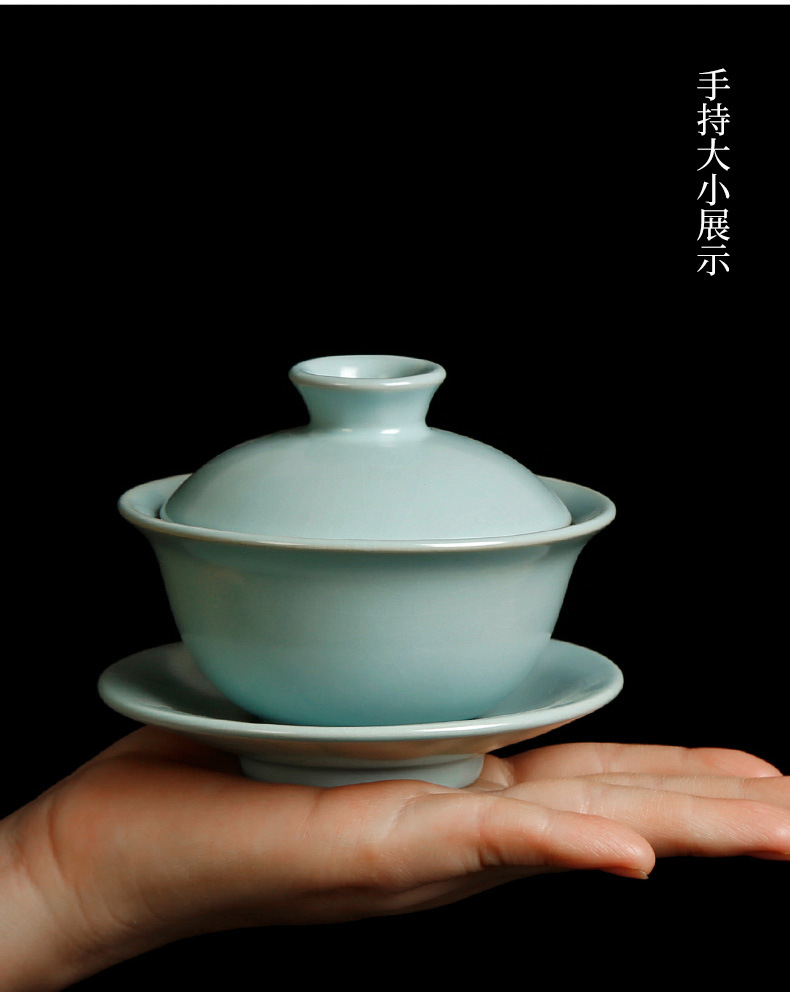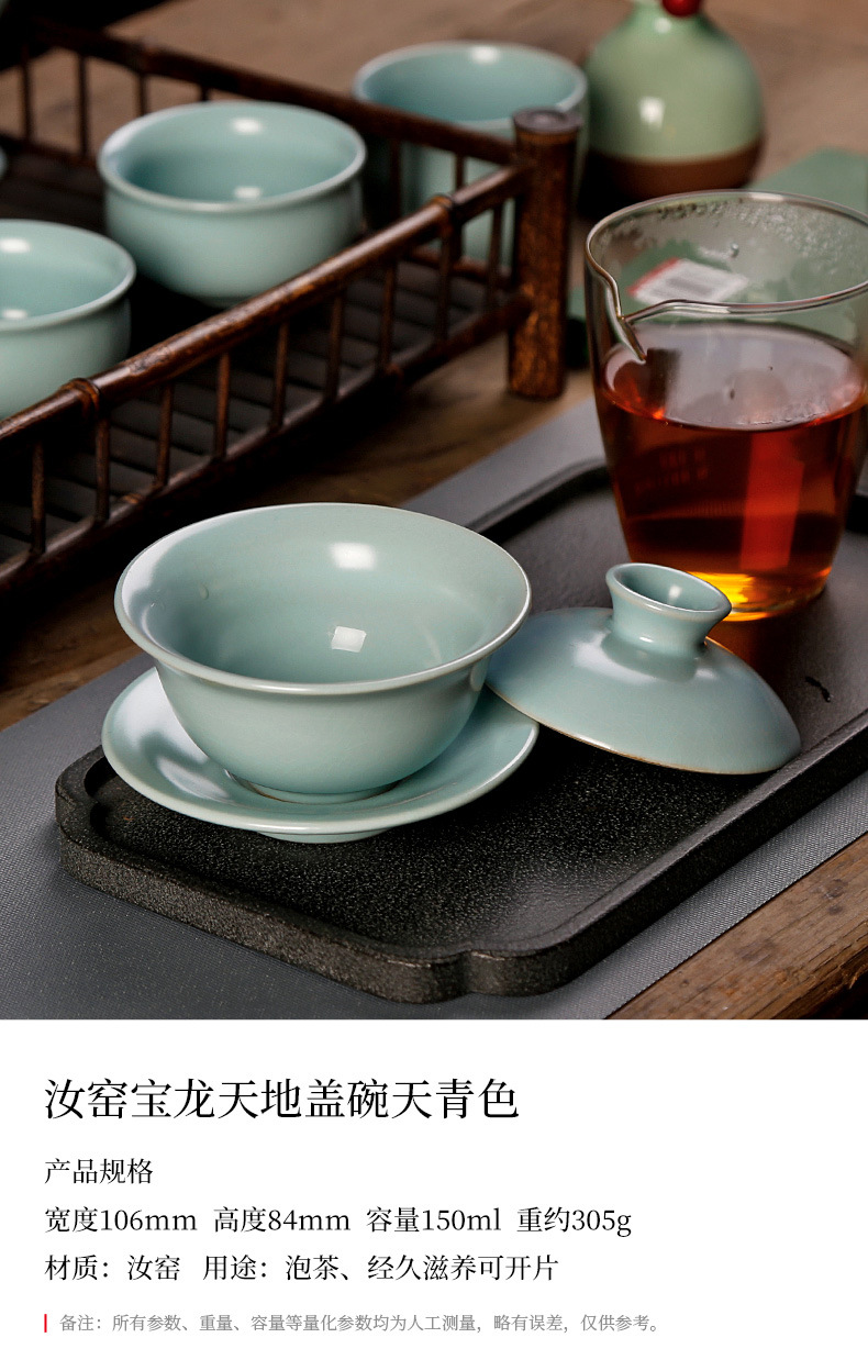 汝窑天地三才盖碗茶杯单个天青色纯手工泡茶碗中式碗盖茶具敬茶碗