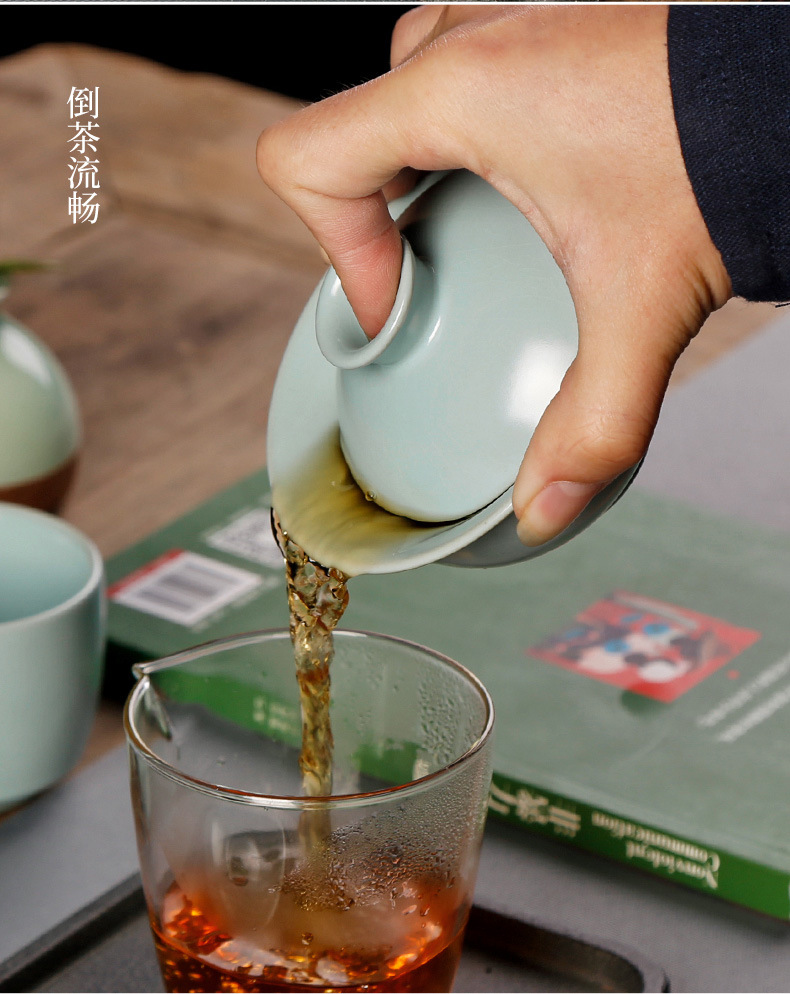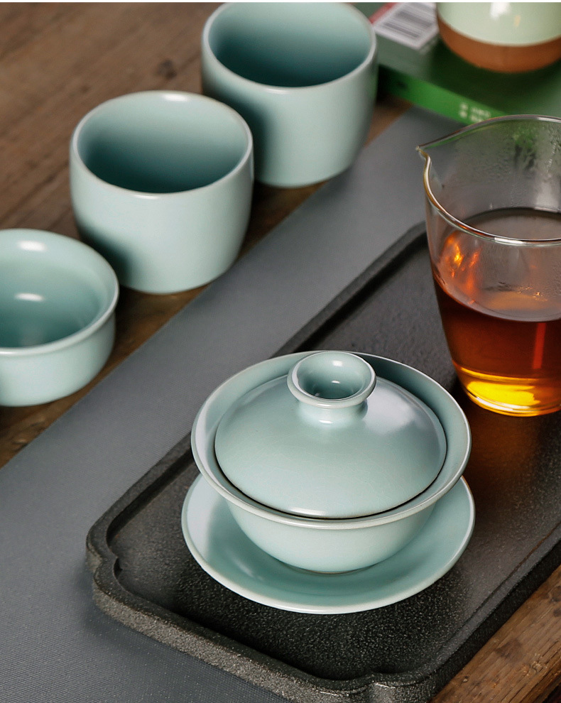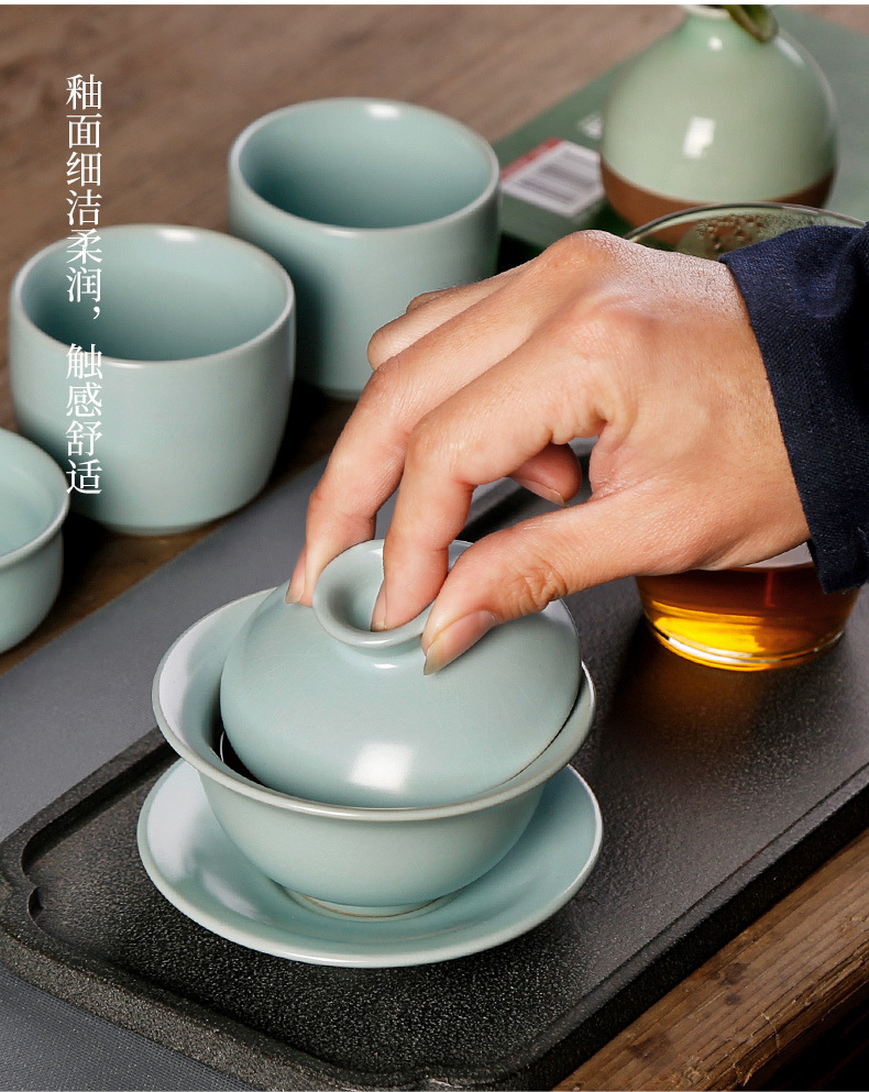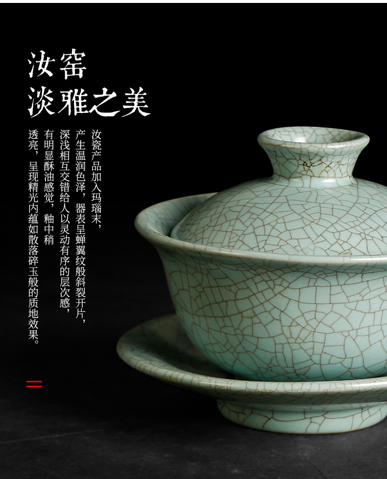 汝窑天地三才盖碗茶杯单个天青色纯手工泡茶碗中式碗盖茶具敬茶碗