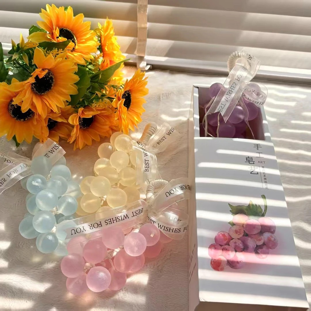[新款 水晶葡萄手工香皂】整串手工香皂 洗澡洗手持久留香 仿真水果形状肥皂