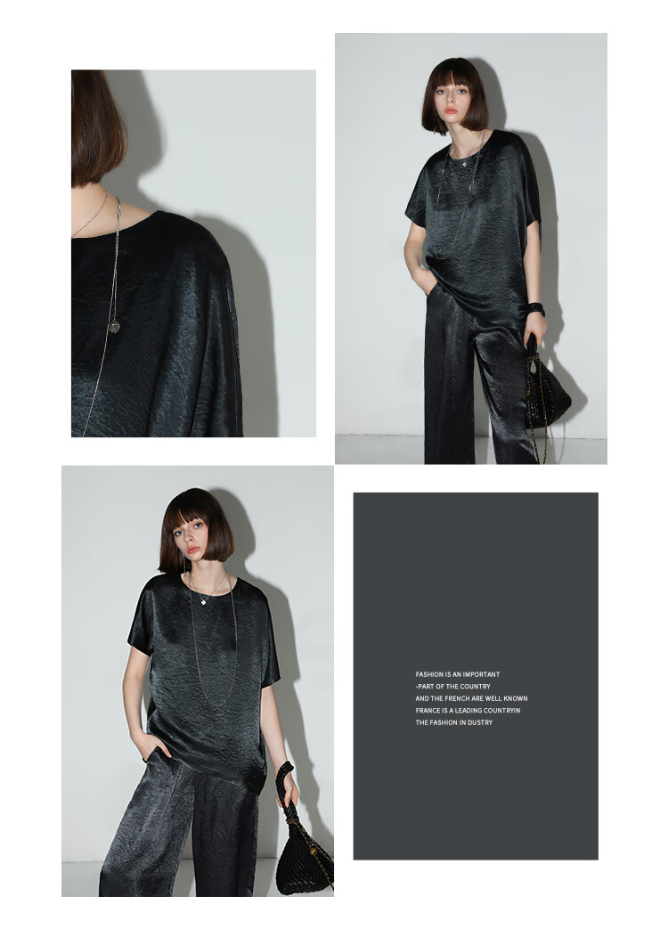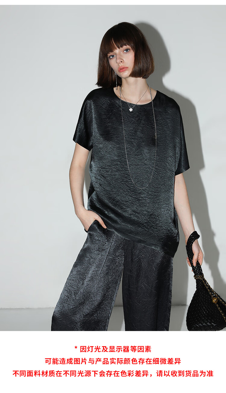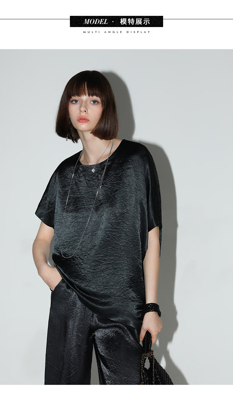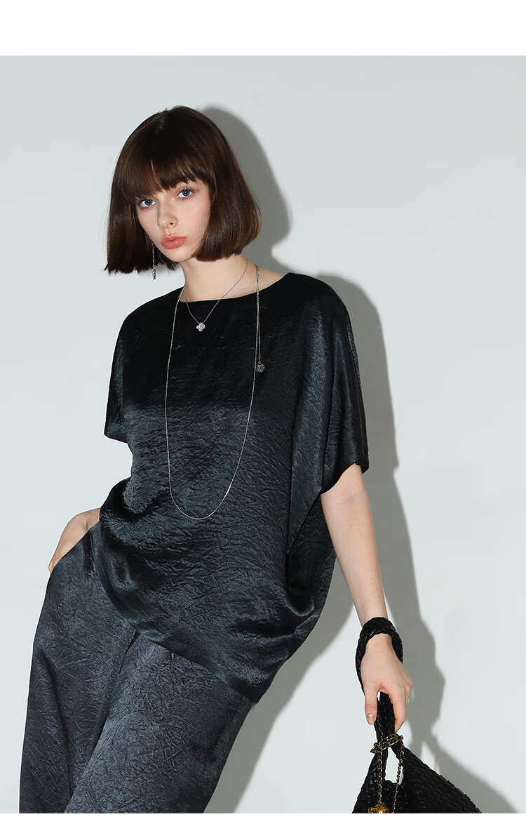 COCOBELLA[100%醋酸]奢感褶皱肌理垂坠凉感斜摆短袖T恤TS7055
