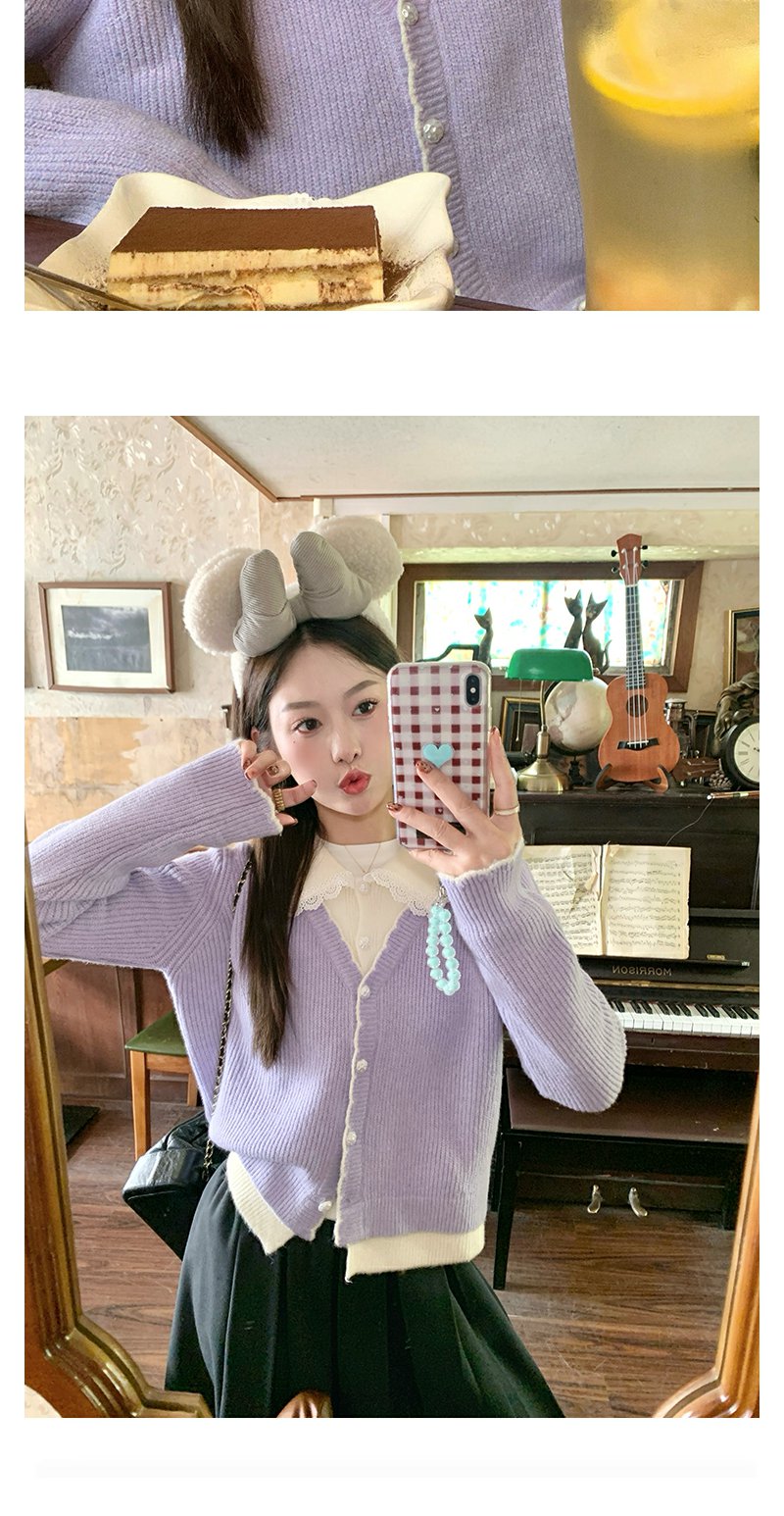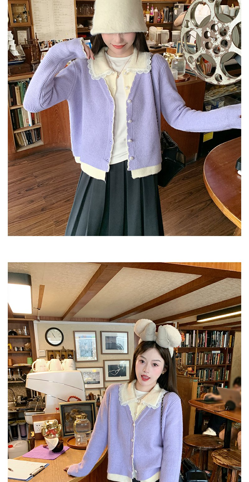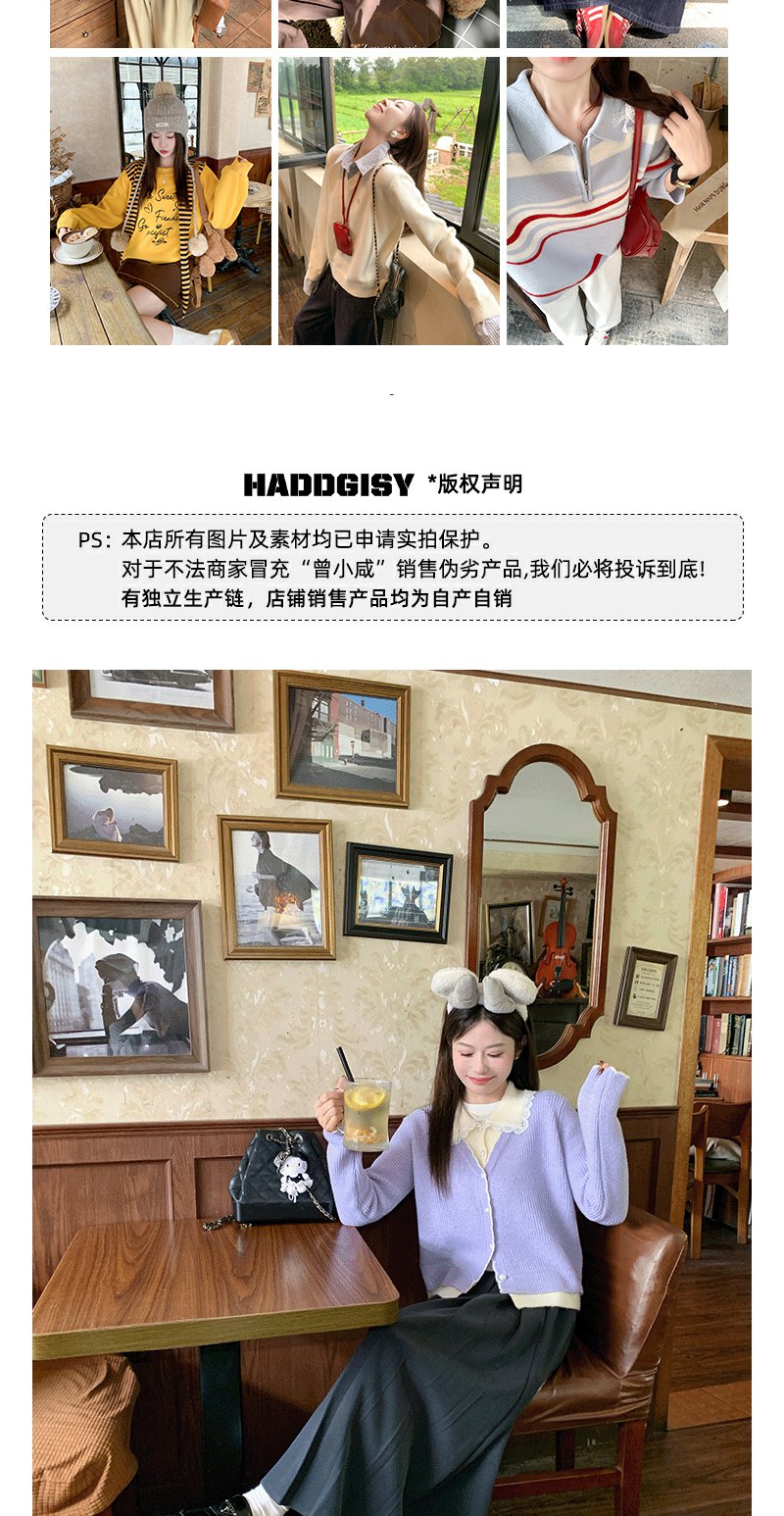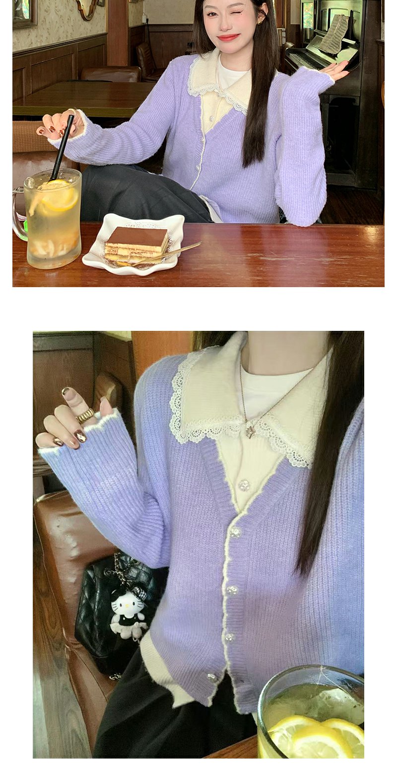 【189元任选2件】现货!紫色拼接杏色翻领毛衣开衫