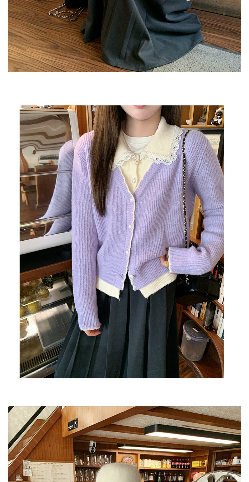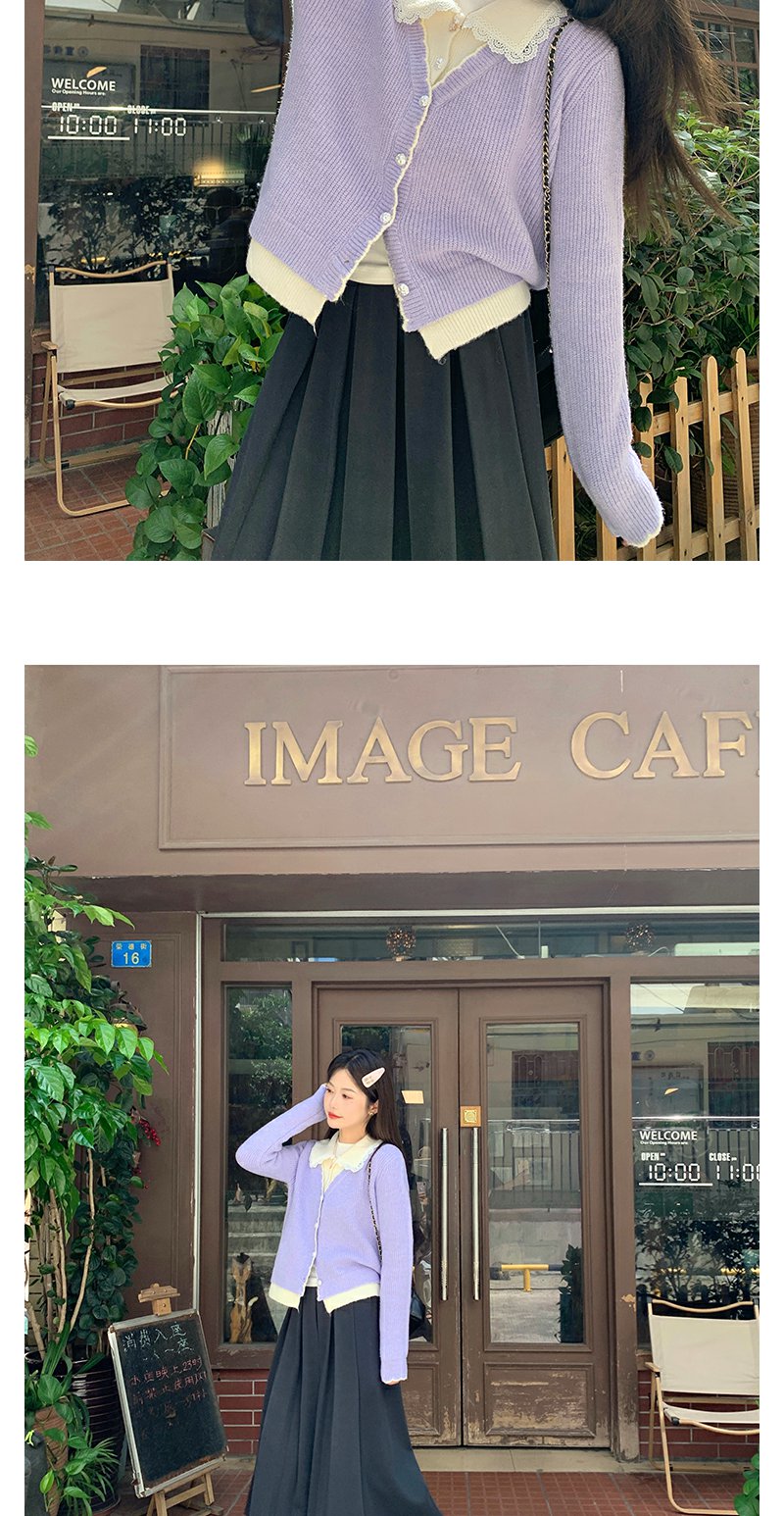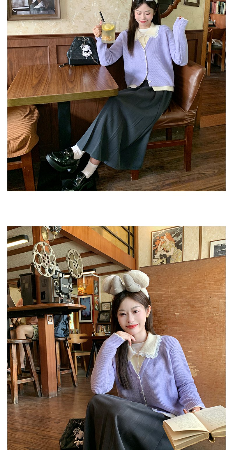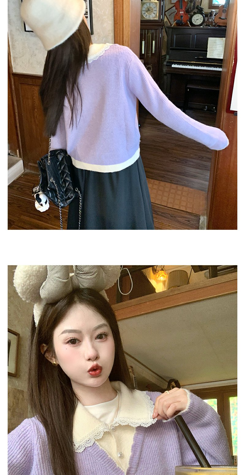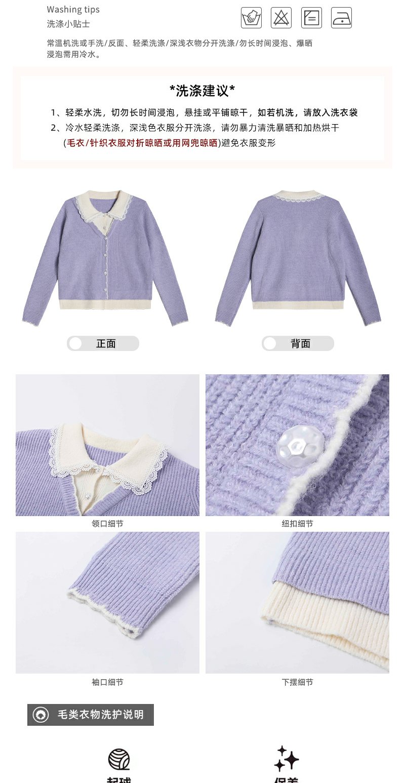 【189元任选2件】现货!紫色拼接杏色翻领毛衣开衫