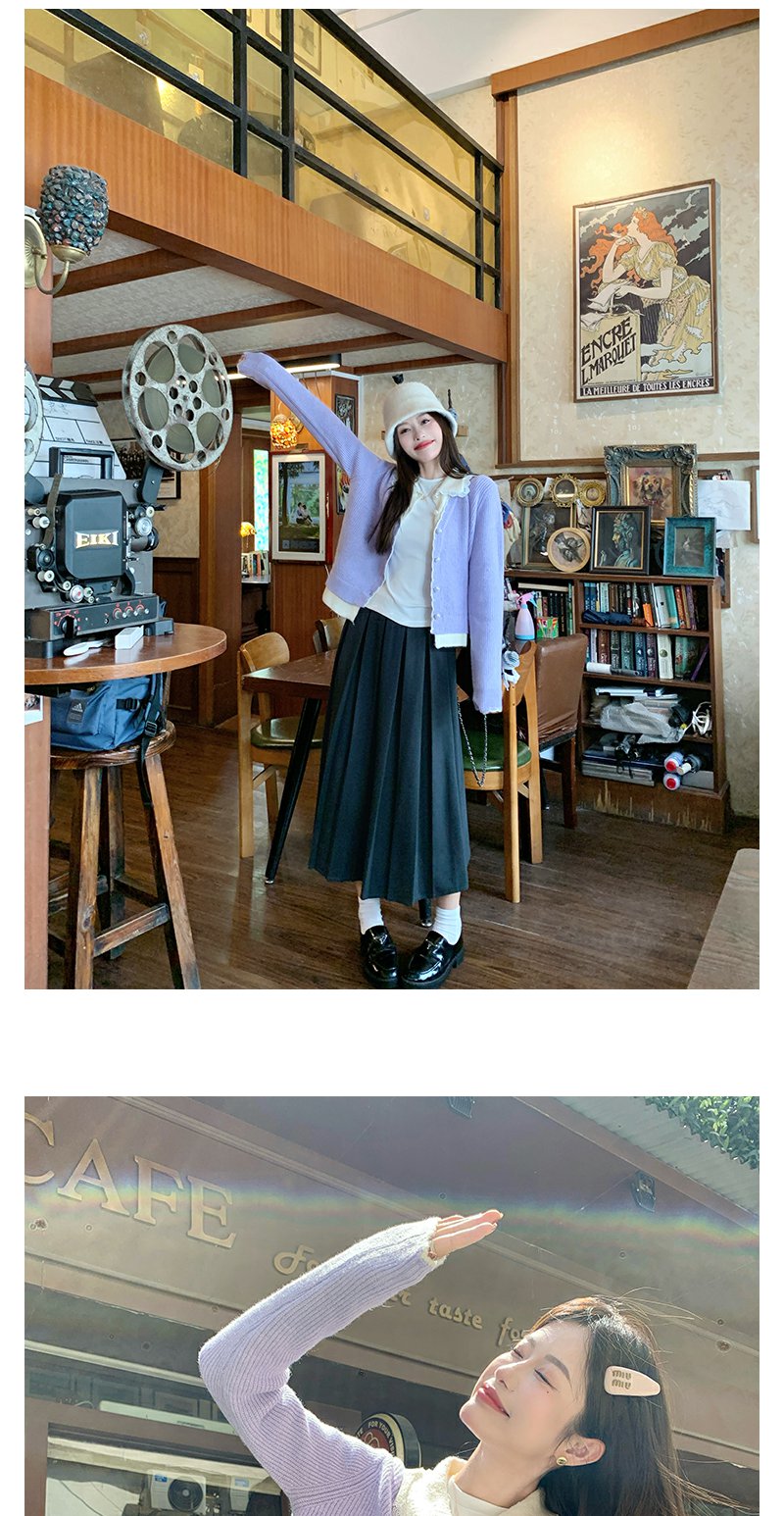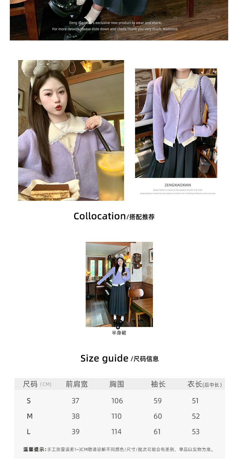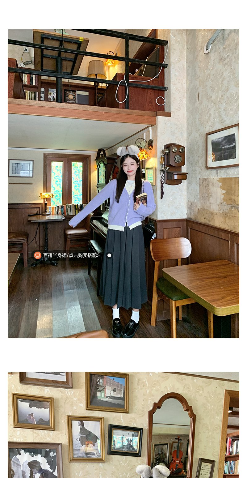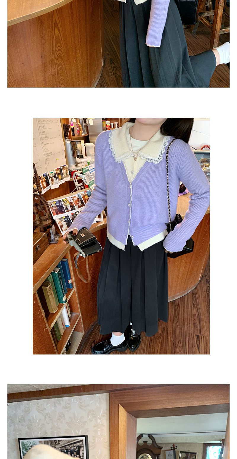 【189元任选2件】现货!紫色拼接杏色翻领毛衣开衫