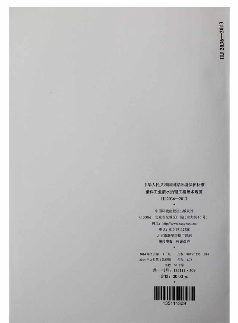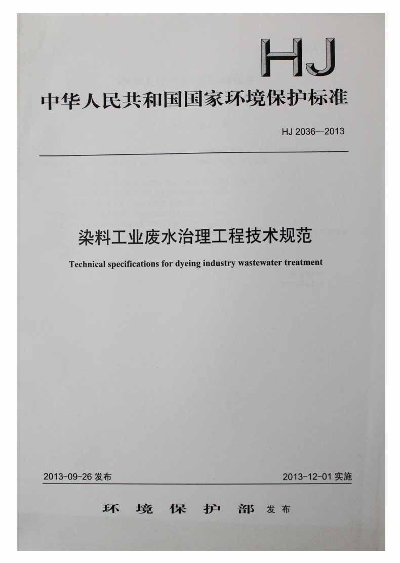 HJ 2036-2013 染料工业废水治理工程技术规范 国家标准GB 环境保护 环境科学 135111309