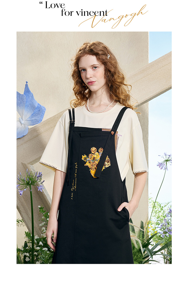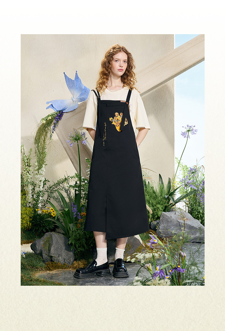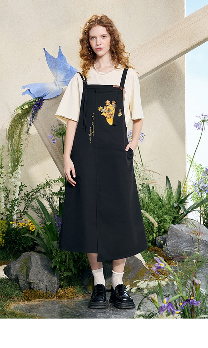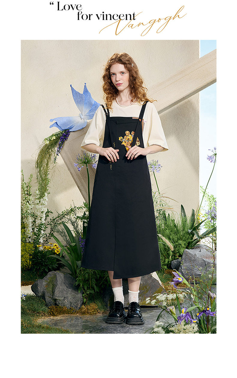 两三事梵高文艺 与葵同行 2025夏季新款复古绣花宽松背带裙连衣裙