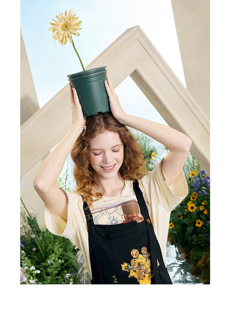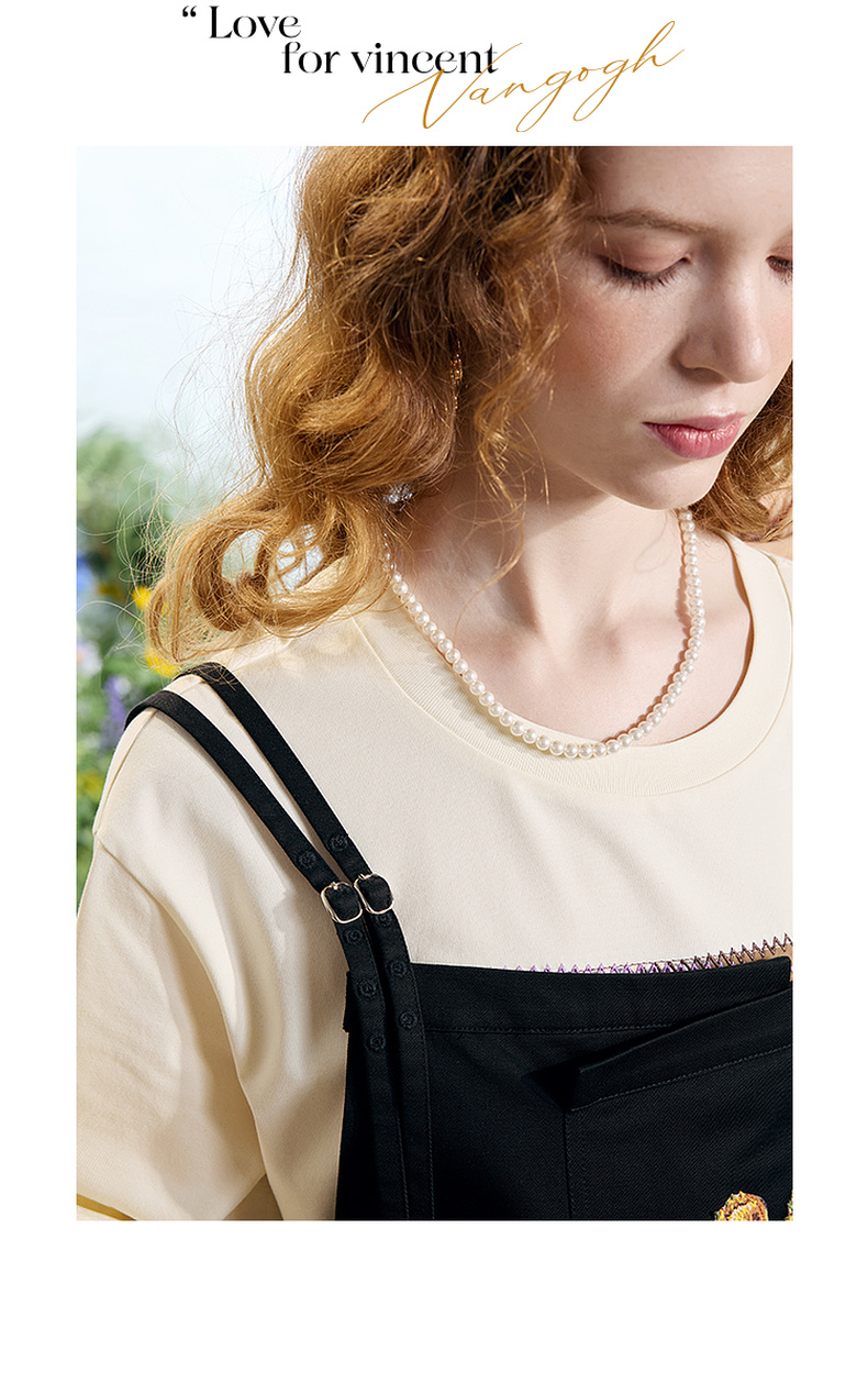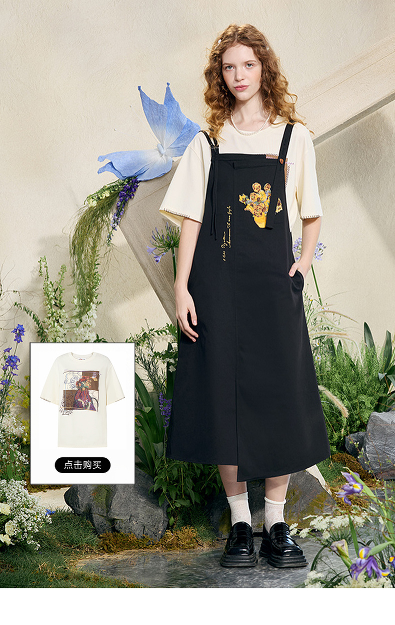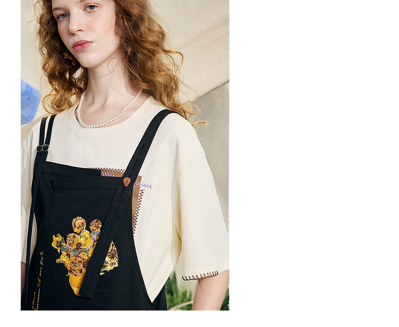 两三事梵高文艺 与葵同行 2025夏季新款复古绣花宽松背带裙连衣裙