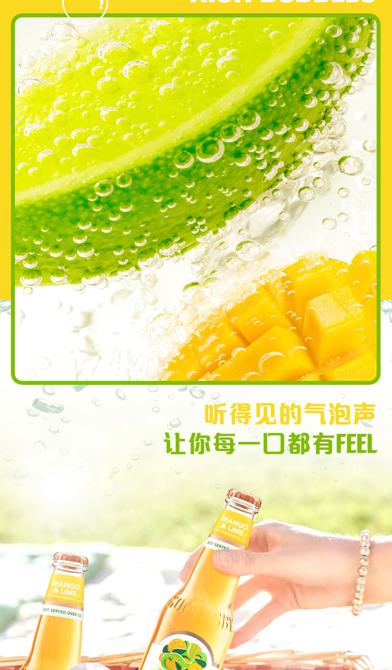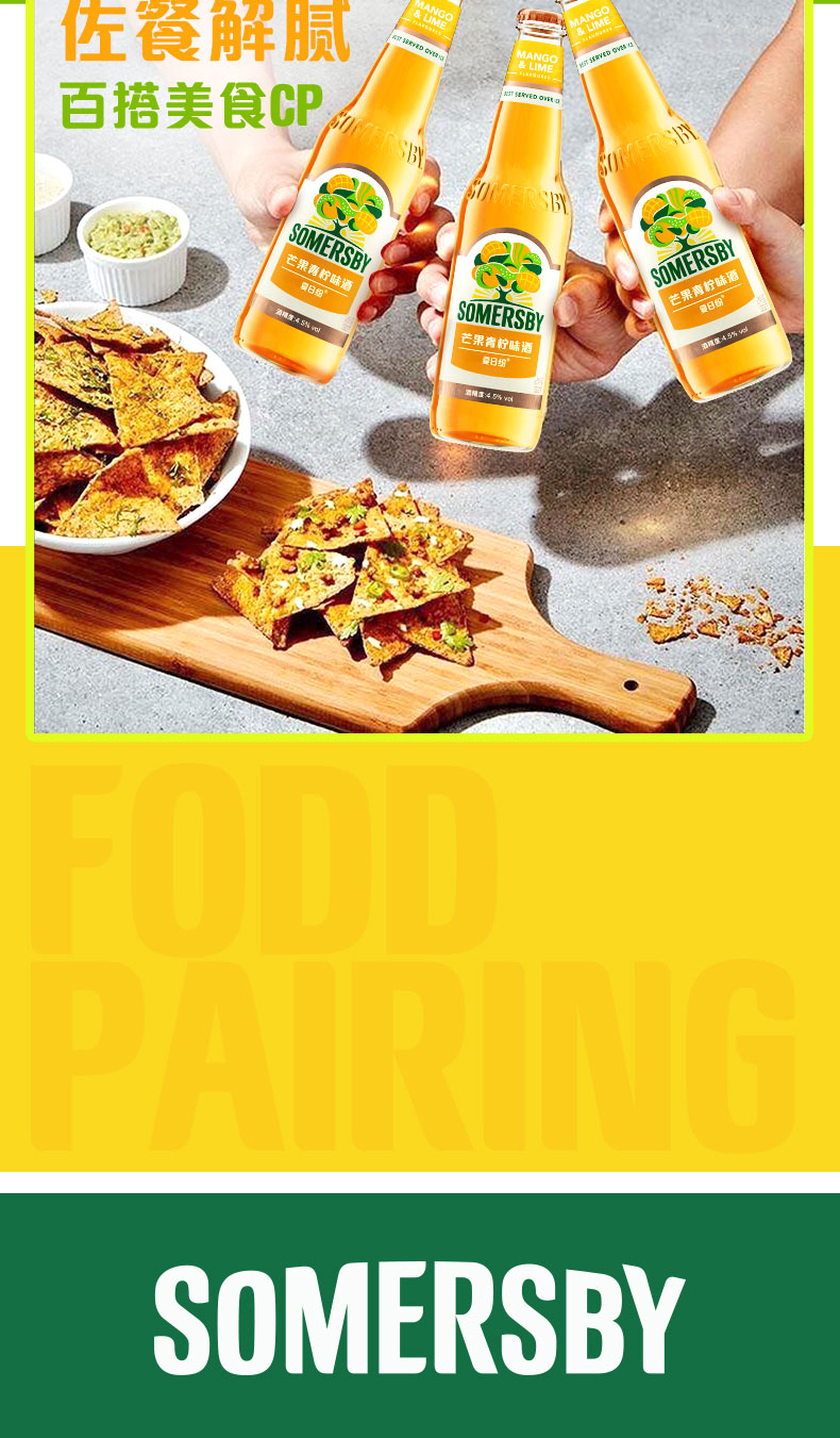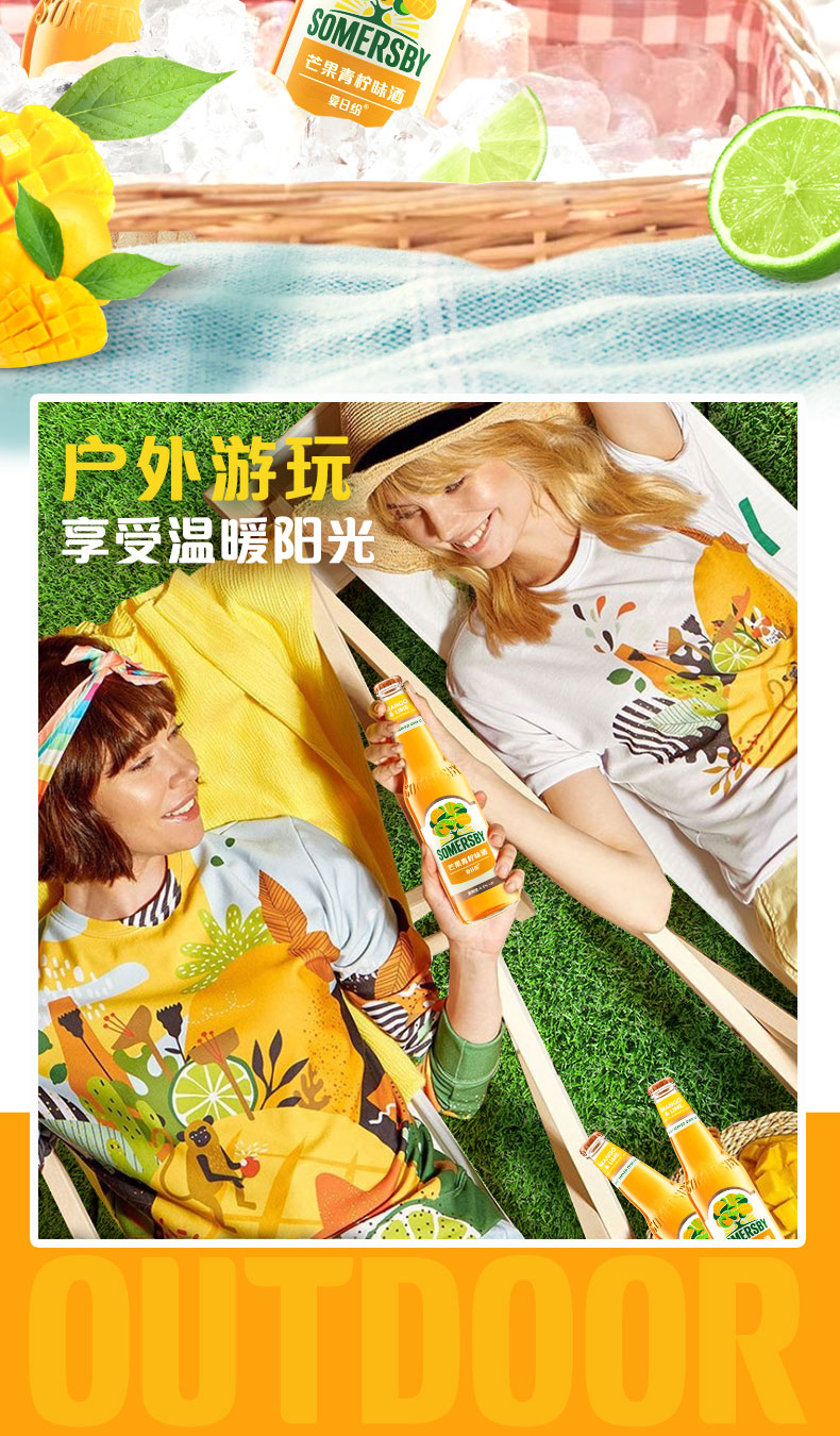 【部分地区预售,现货48h发货】Somersby夏日纷青柠芒果味330ml*24瓶 (青柠芒果味)女士甜酒果啤果味啤酒整箱销售