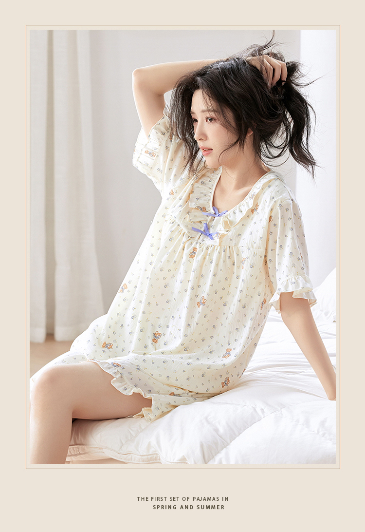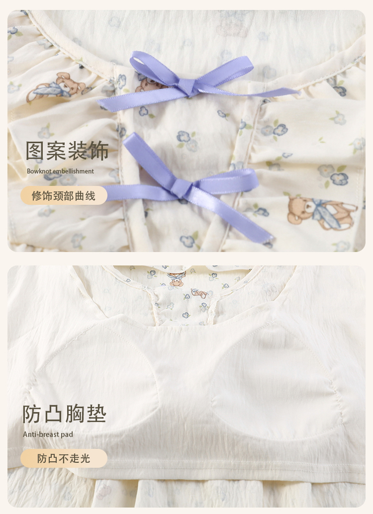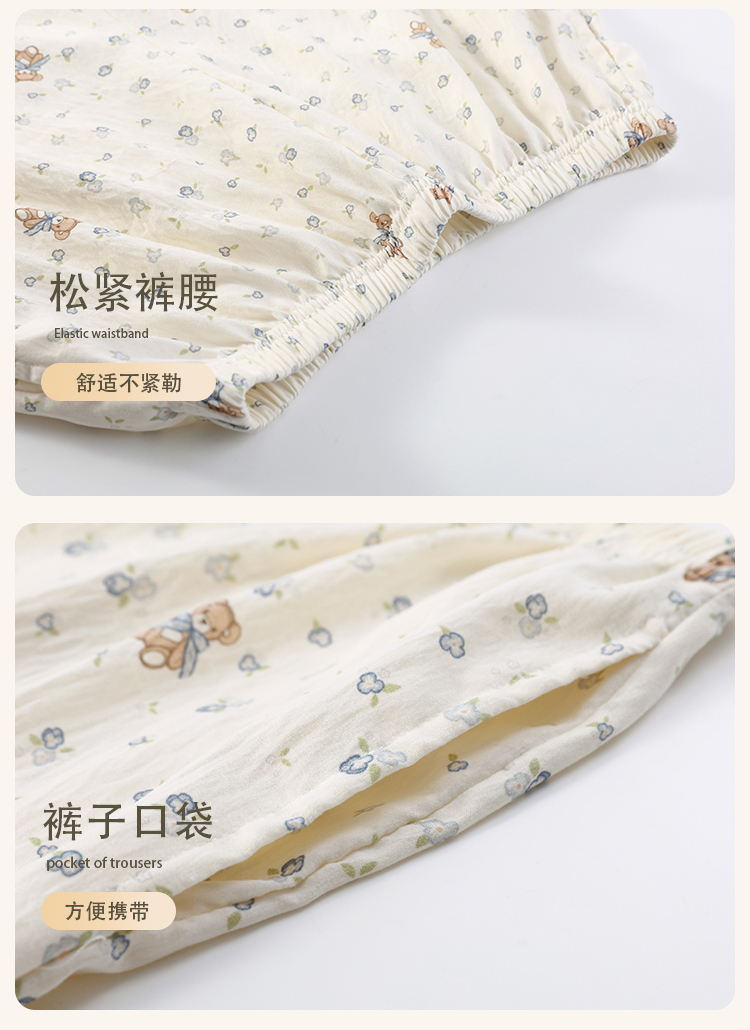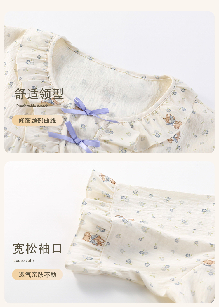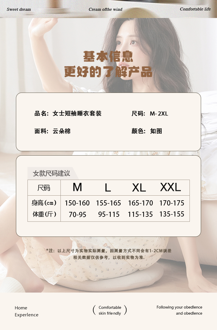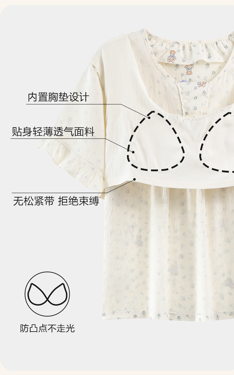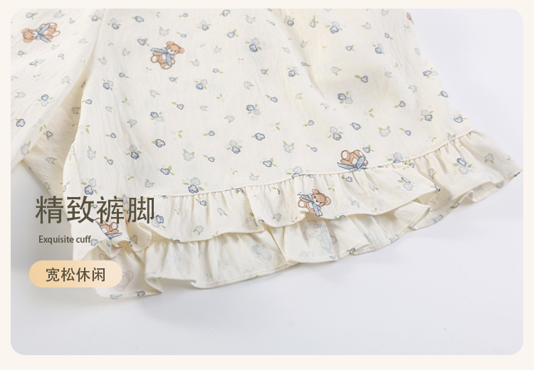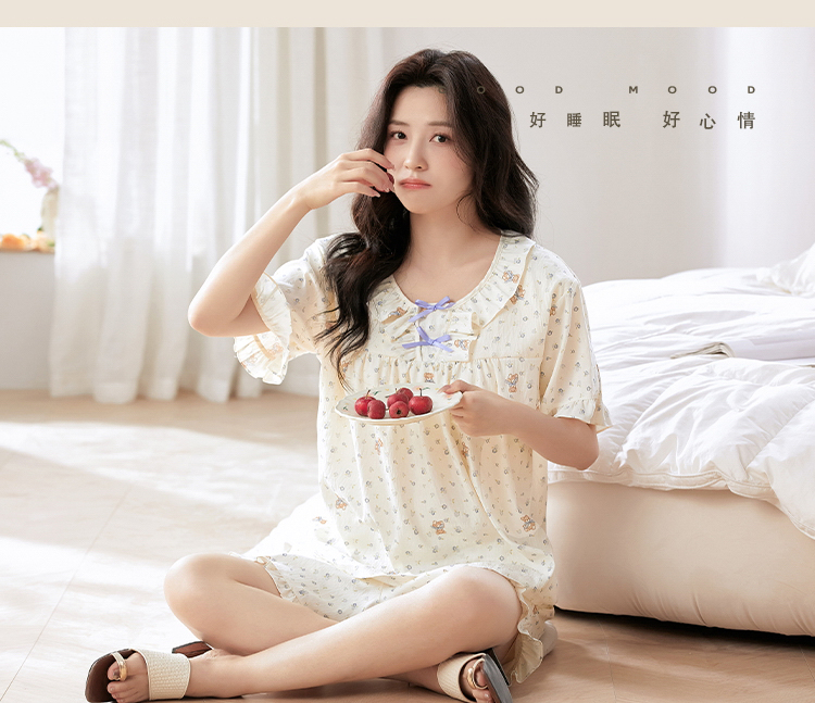 自然醒梵花云朵棉(带胸垫)睡衣女款夏季短袖短裤薄款花边甜美风女士家居服QH