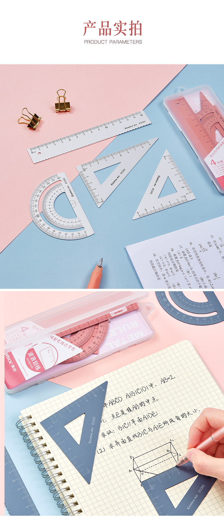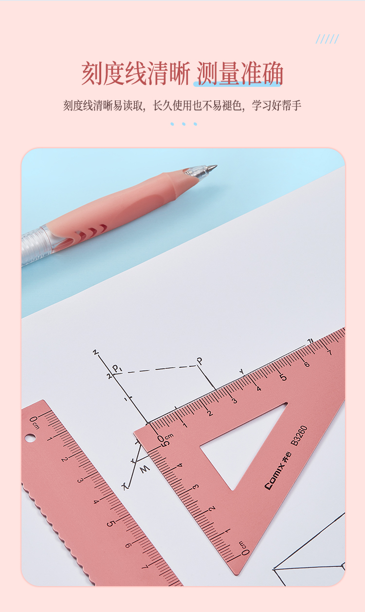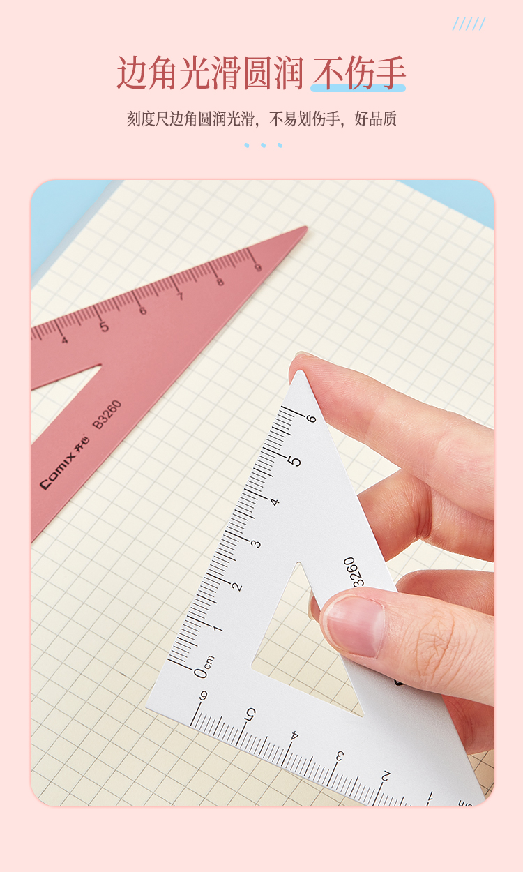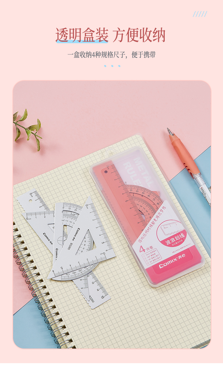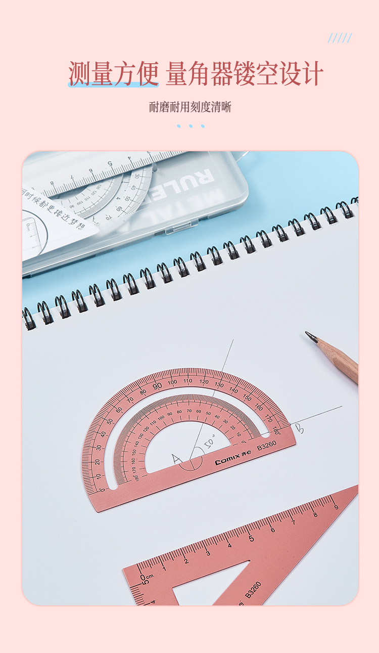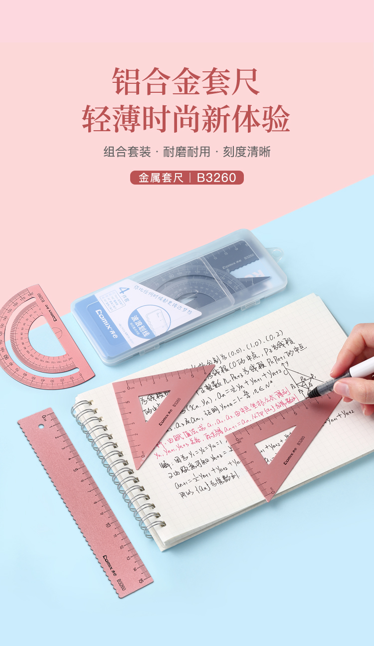 齐心 B3260 金属套尺钛金色1套学生套尺三角尺量角器直尺套装小学生学习用品