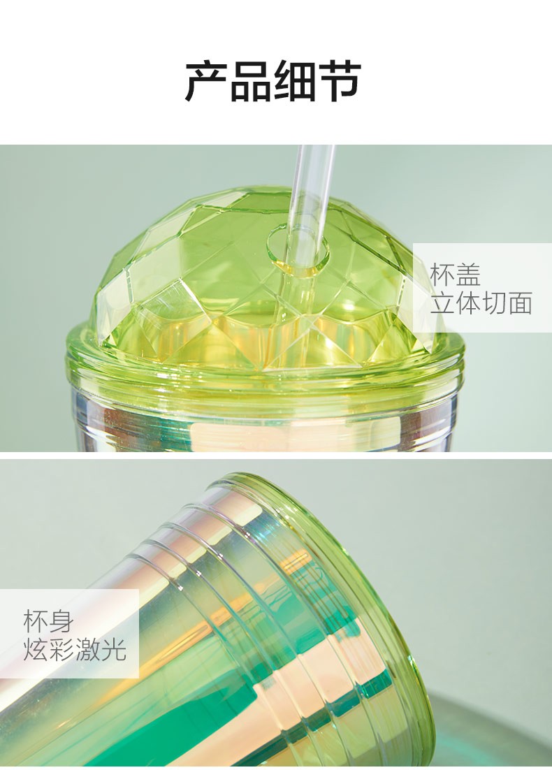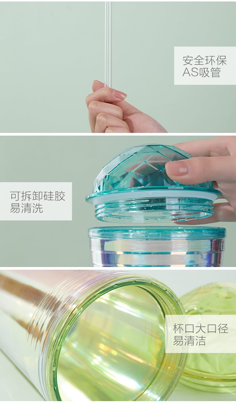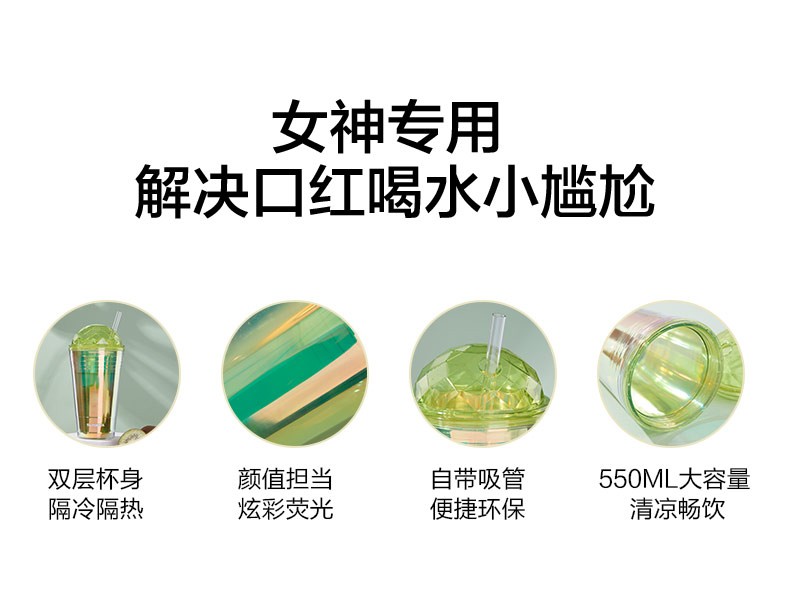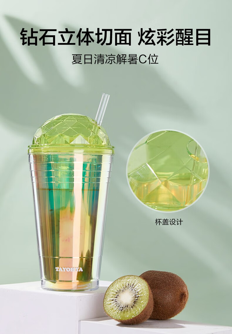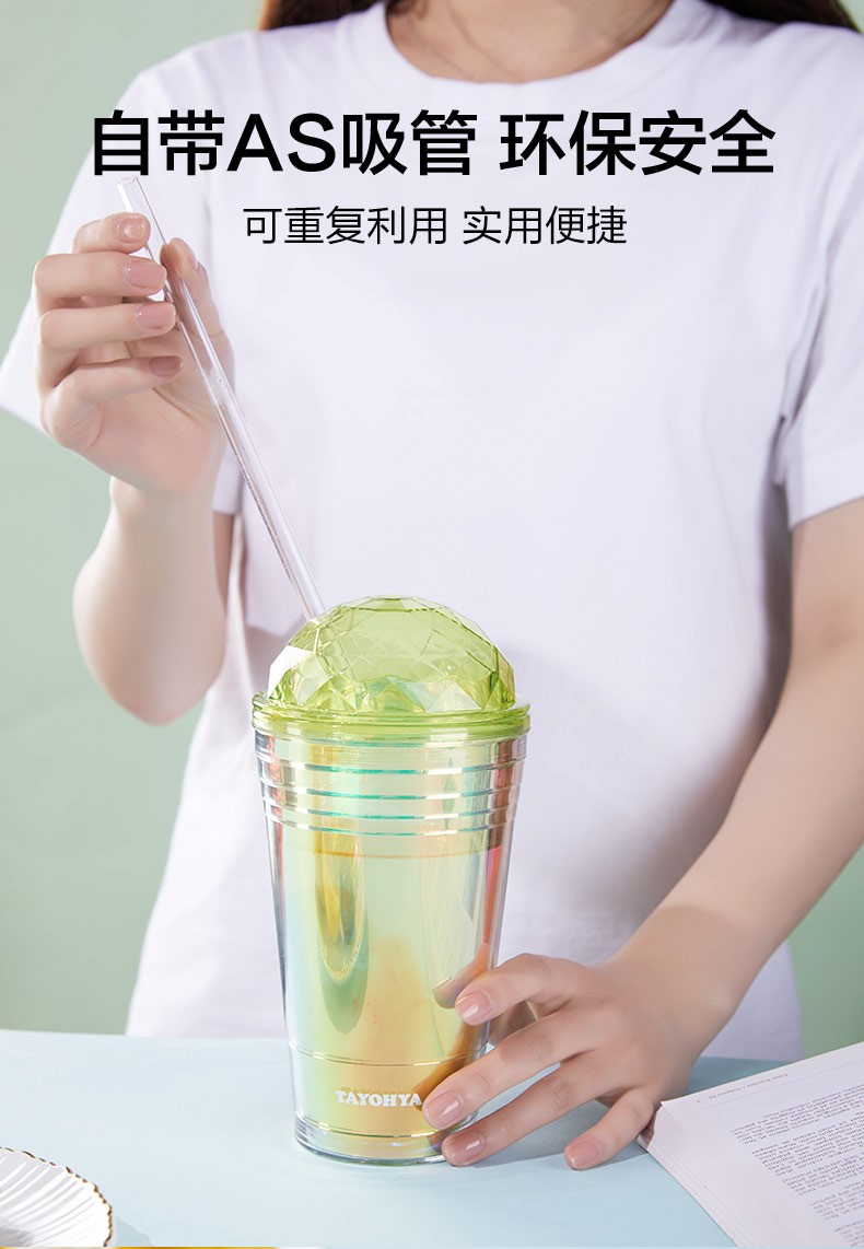 【多样屋专柜】多样屋大容量双层塑料咖啡杯奶茶水杯 炫彩吸管杯-550ml-湖蓝