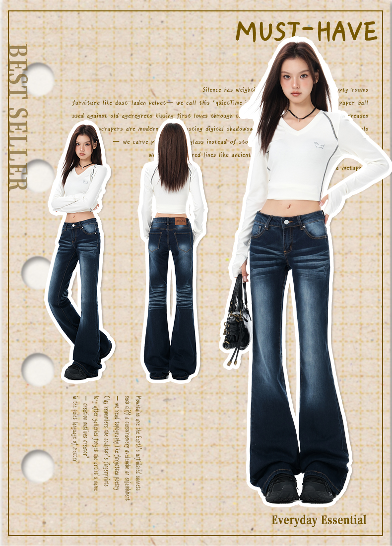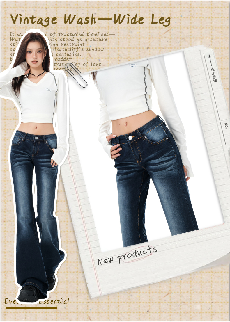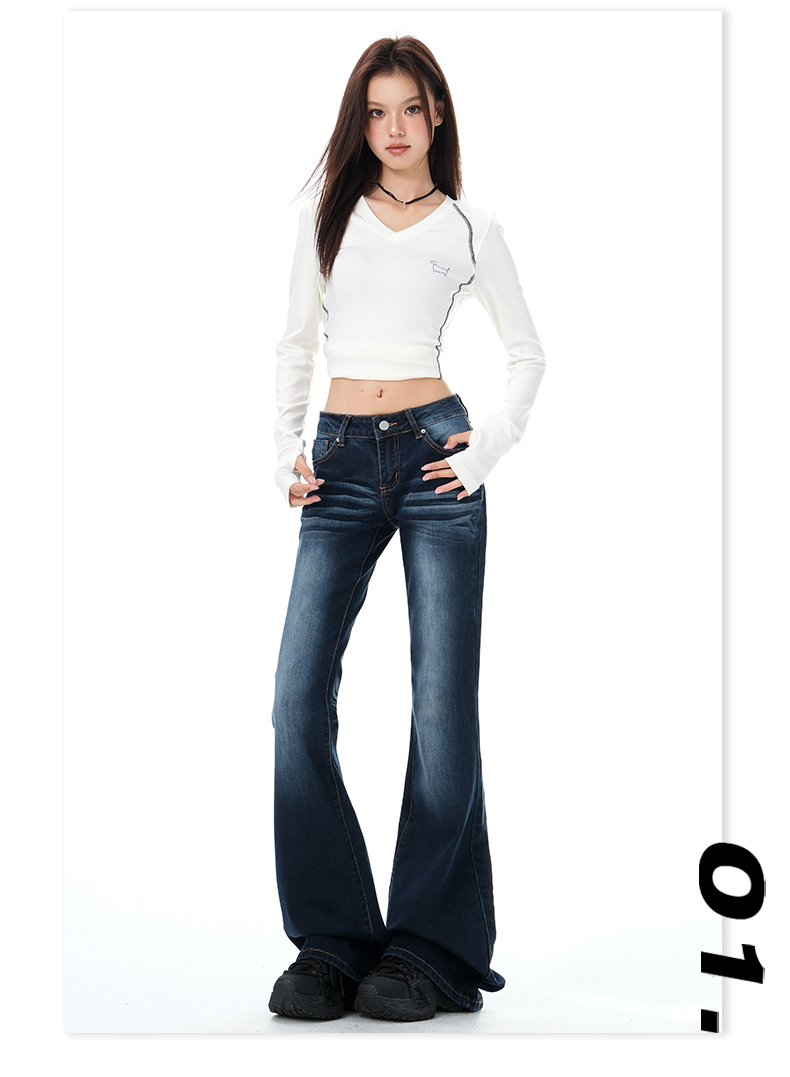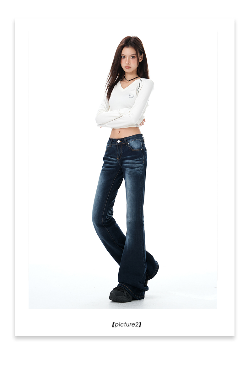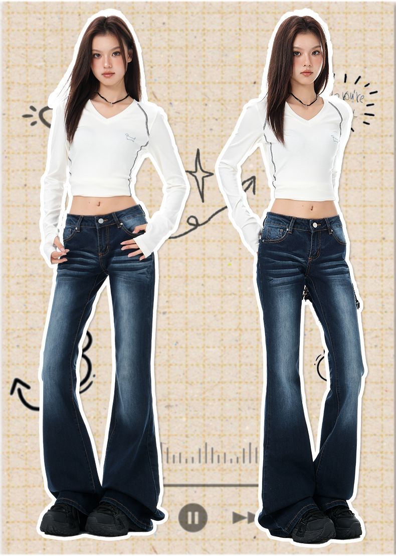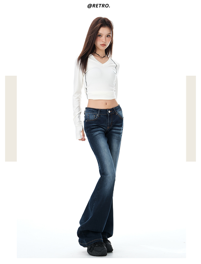 罗蒙女士牛仔裤美式微喇辣妹低腰显瘦百搭弹力马蹄喇叭拖地裤子女