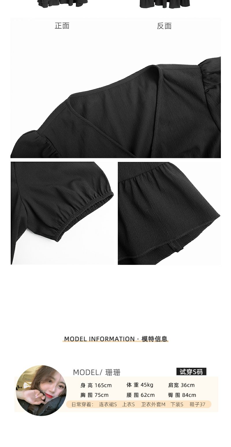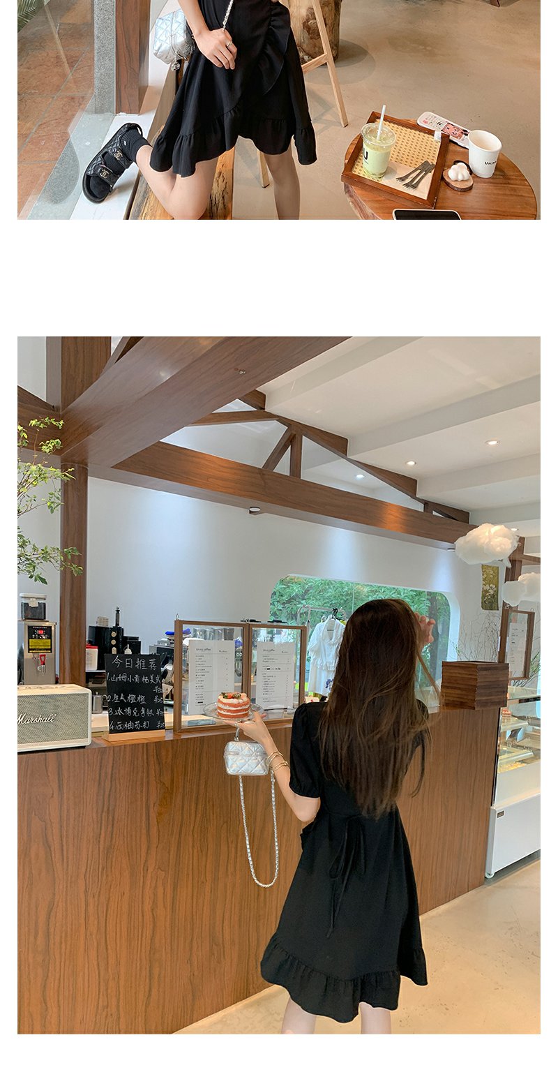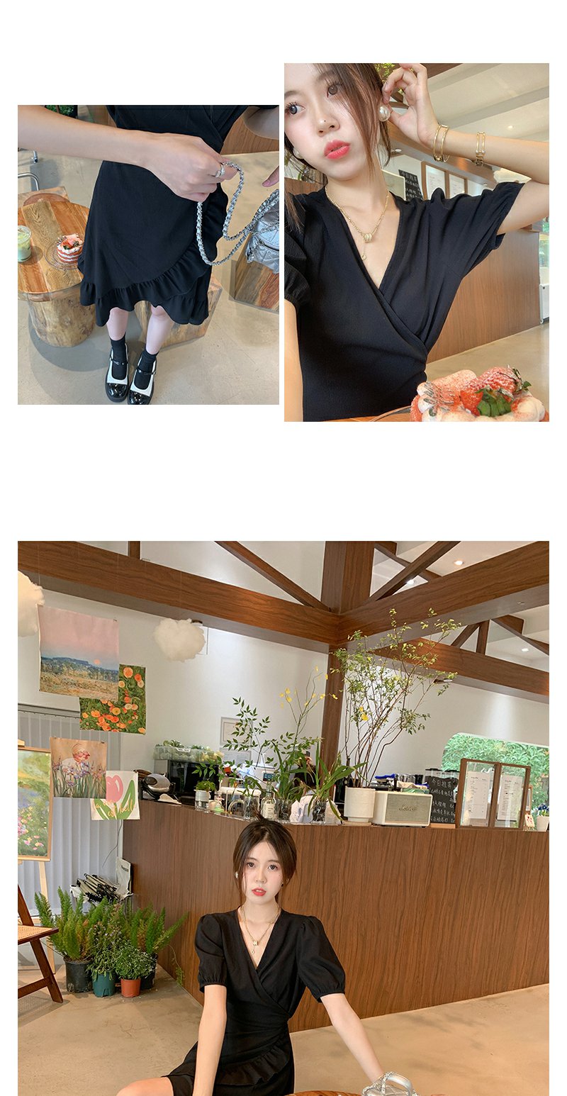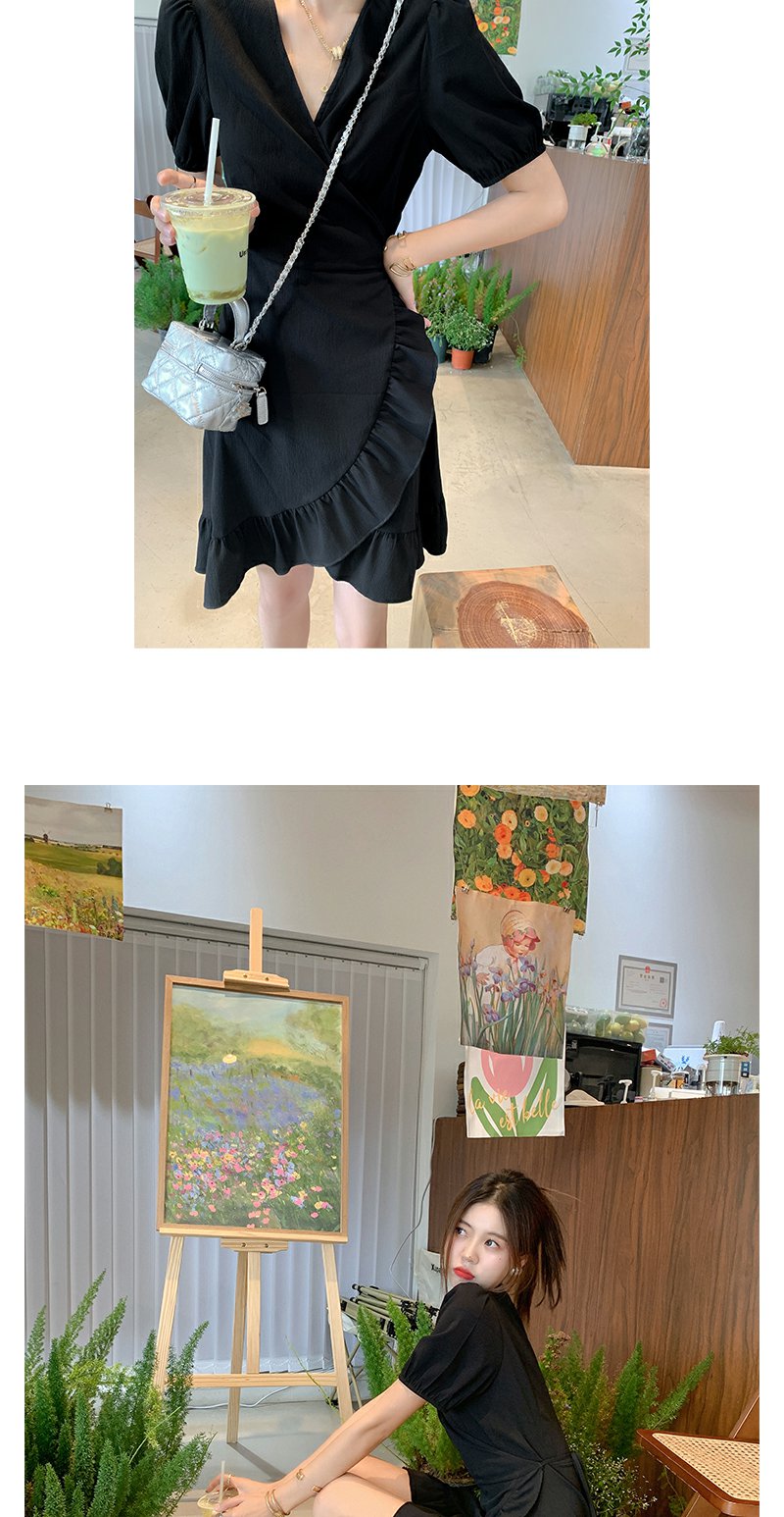 <曾小咸推荐> 连衣裙V领荷叶边中长款气质小黑裙潮