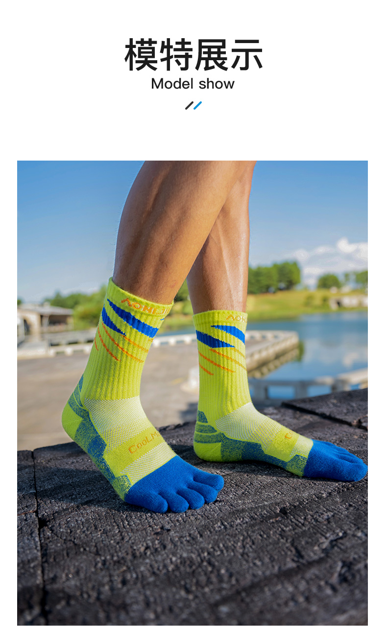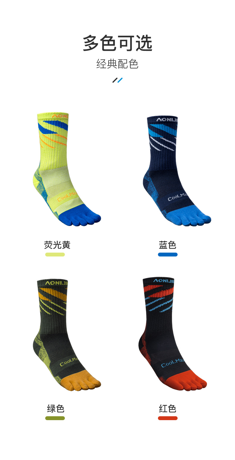 奥尼捷户外运动长筒五指袜速干透气舒适耐磨弹性加压足弓支撑/E4846