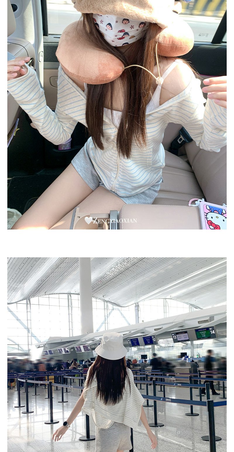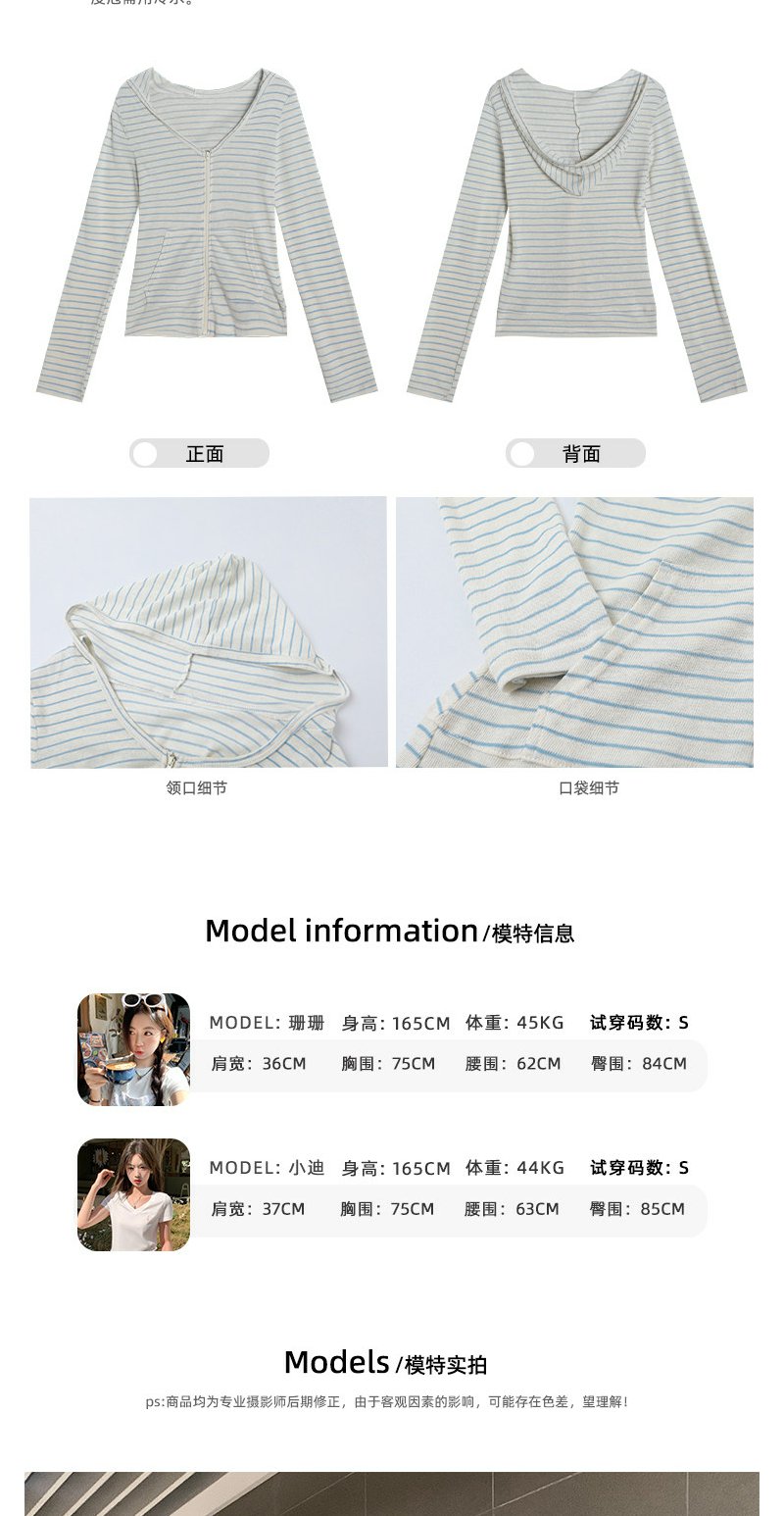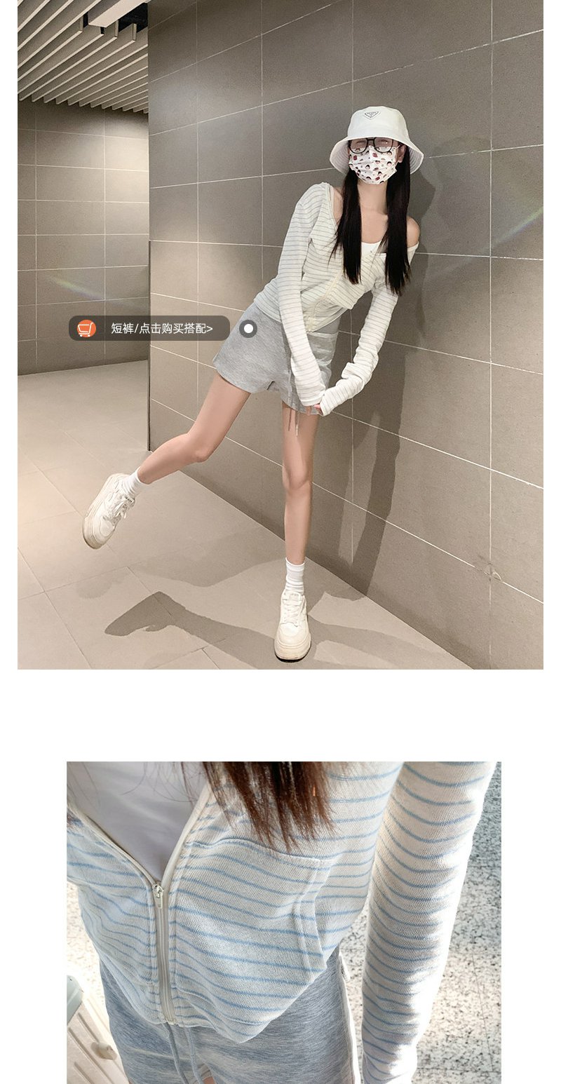 <曾小咸推荐>韩系蓝白条纹拉链长袖t恤上衣