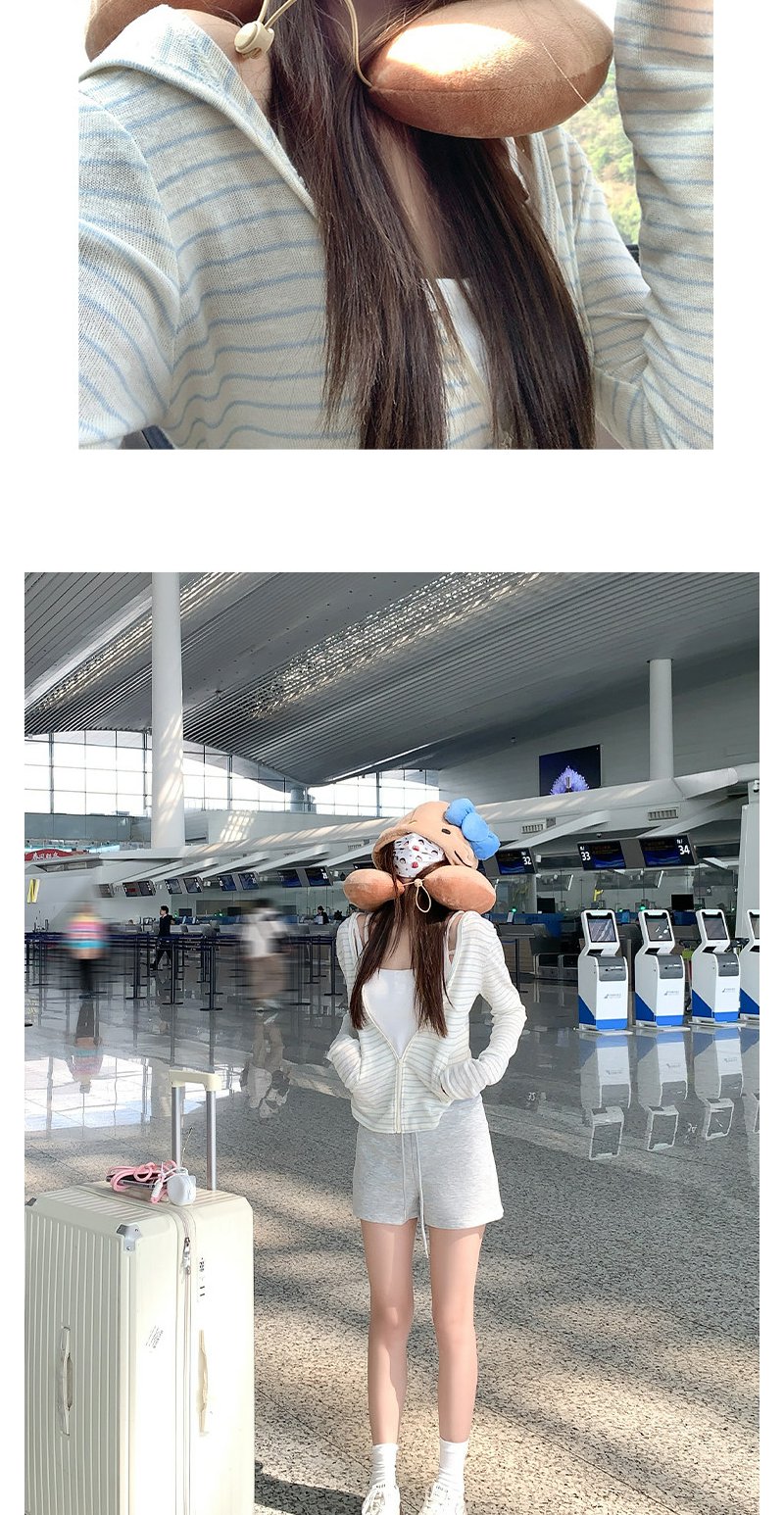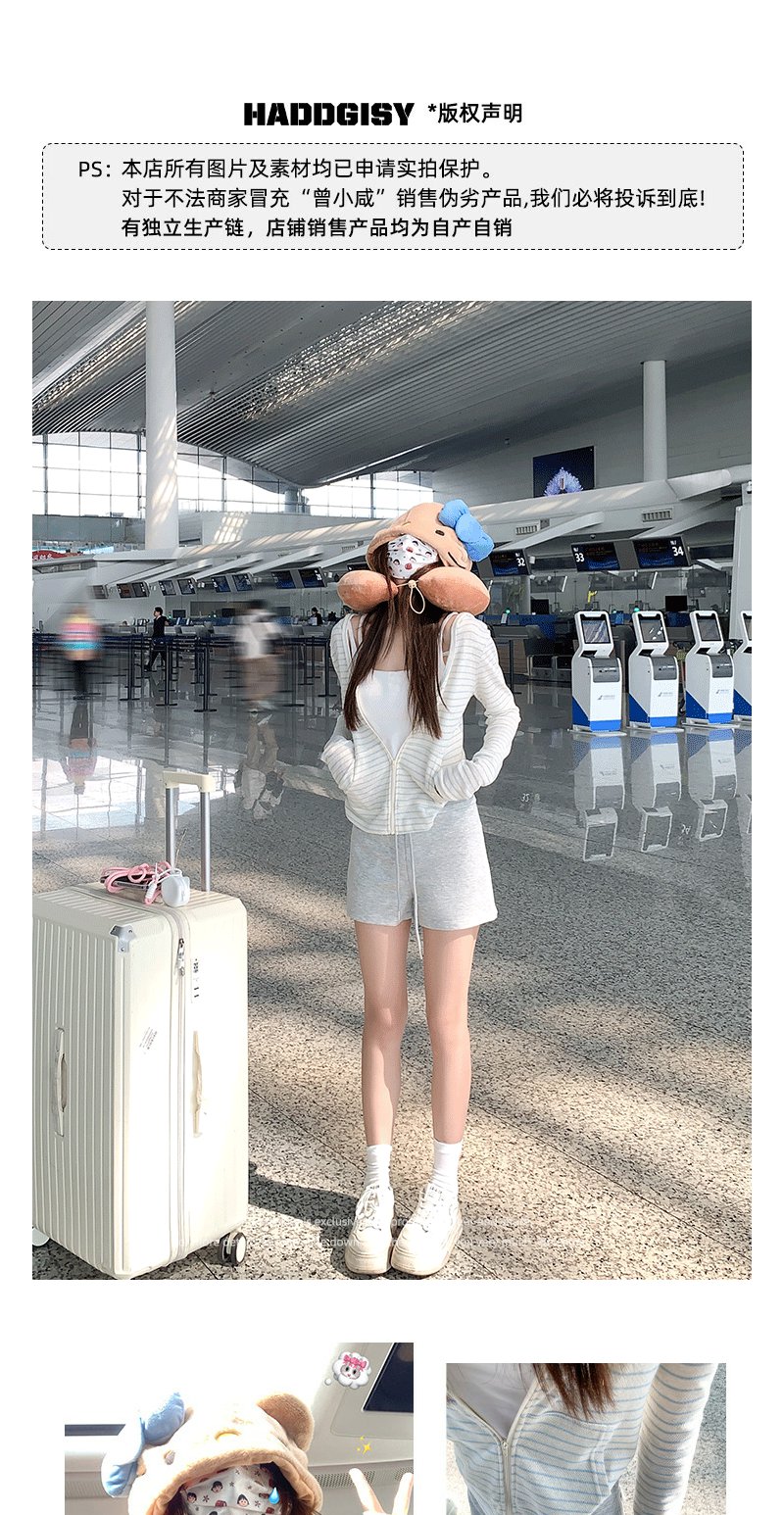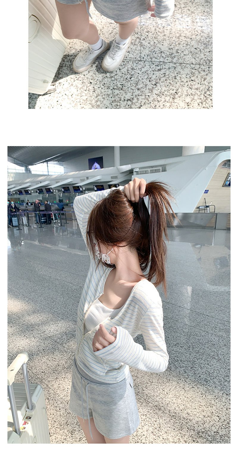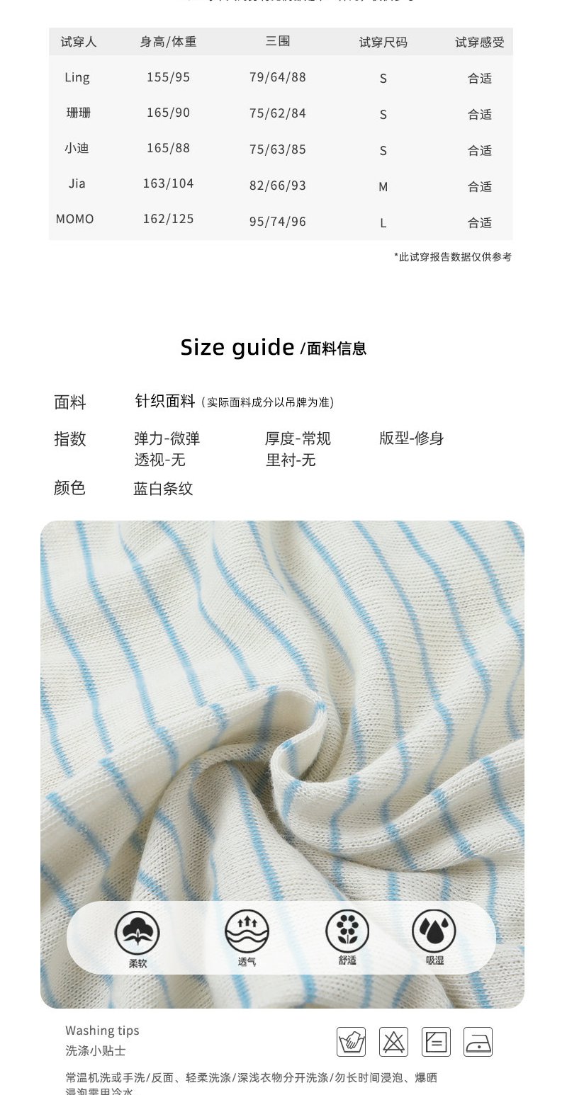 <曾小咸推荐>韩系蓝白条纹拉链长袖t恤上衣