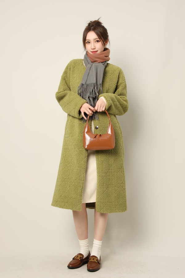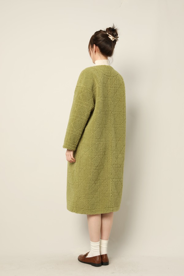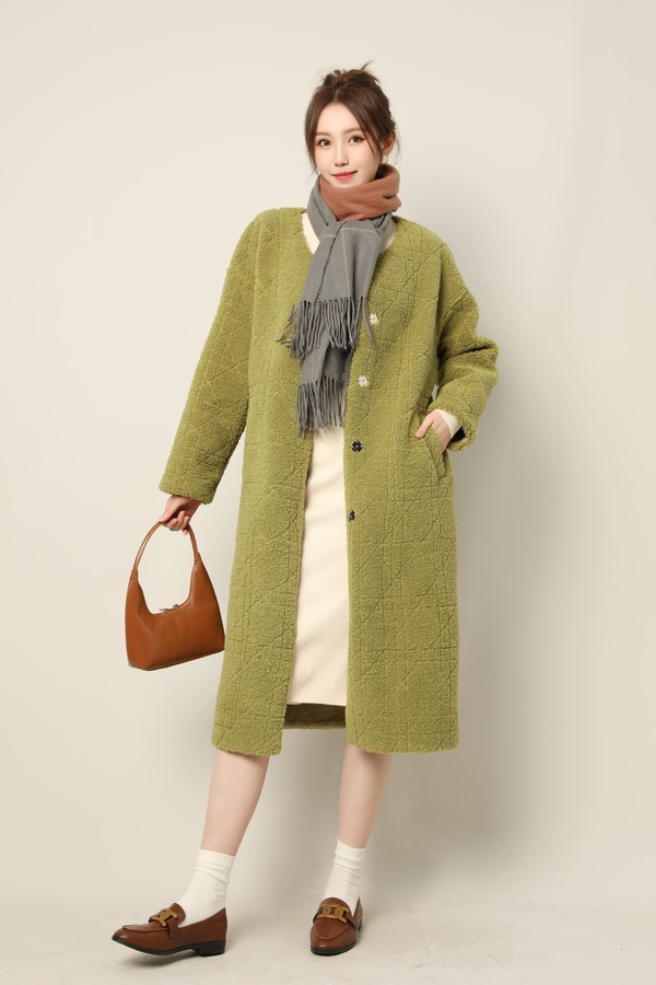 Le Malene 苔藓绿圆领毛绒羊毛大衣外套 17409