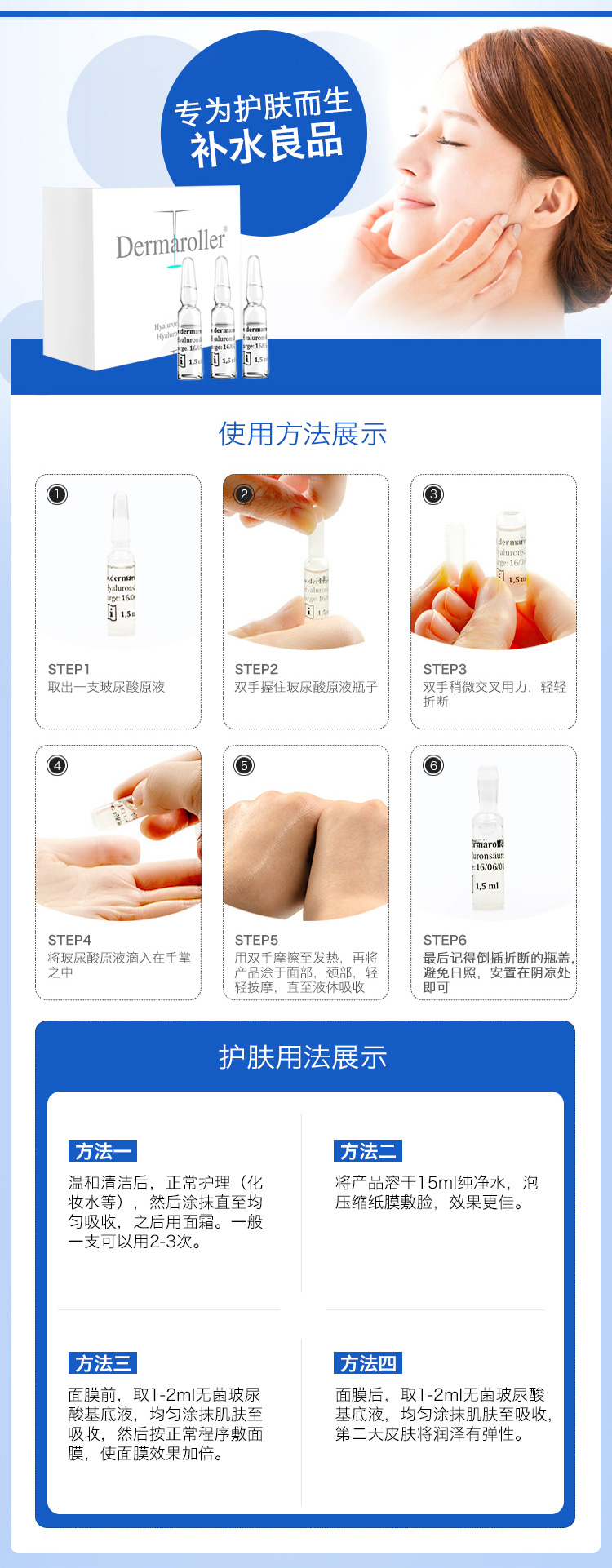 Dermaroller玻尿酸原液30支*1.5ml/盒 强效补水 德国