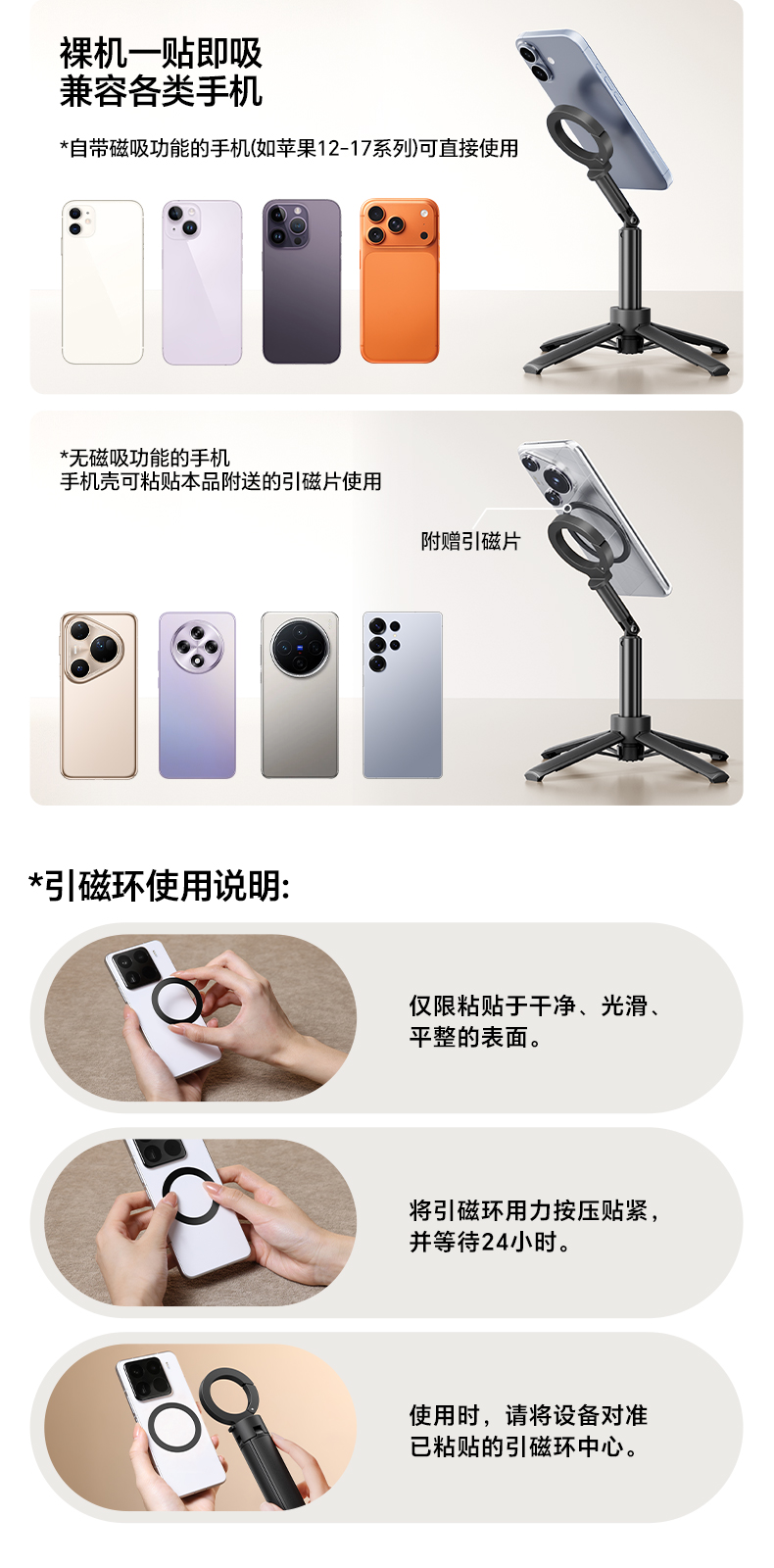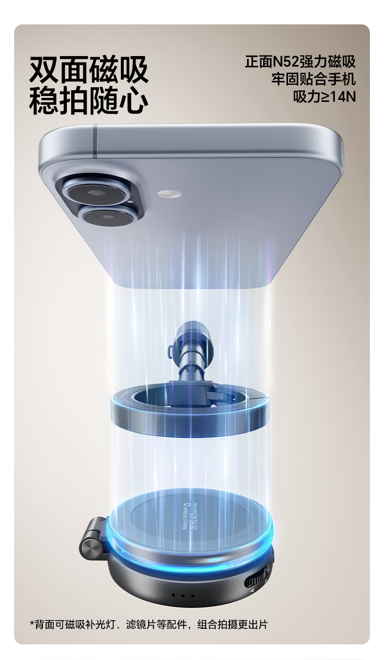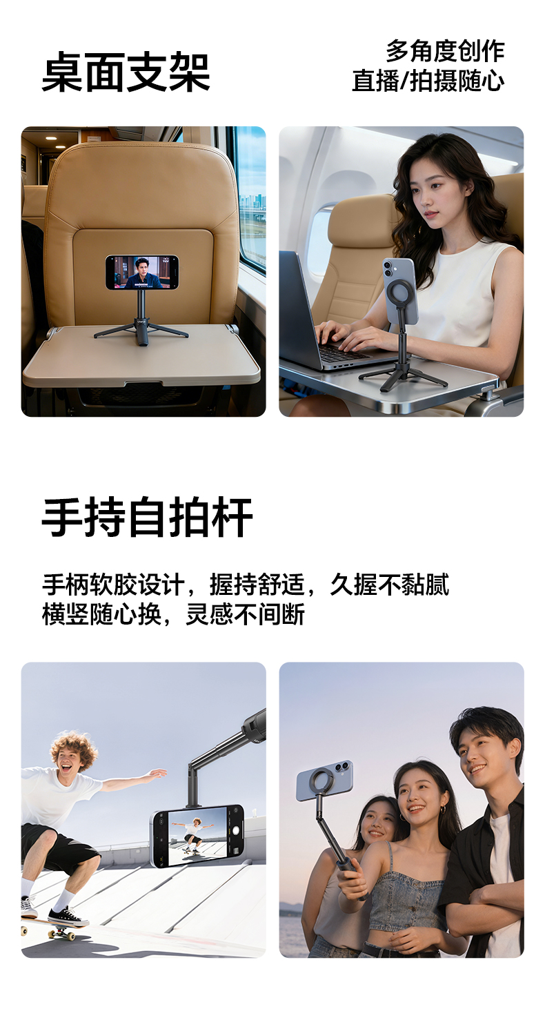 Ulanzi优篮子 MT71迷你磁吸手机自拍杆支架适用苹果17桌面支撑架安卓户外手持vlog拍摄神器旅游便携三脚架