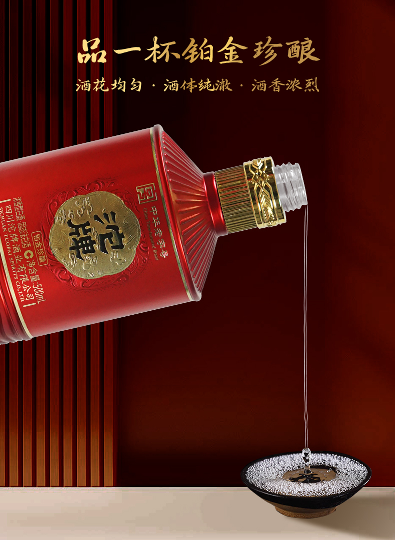 沱牌 铂金珍酿 42度 纯粮食酒 500ml*1瓶(新)