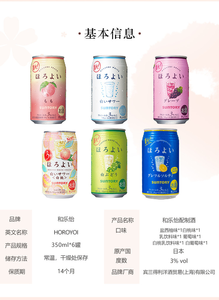 日本 三得利和乐怡HOROYOI预调鸡尾酒 7种口味 350ml