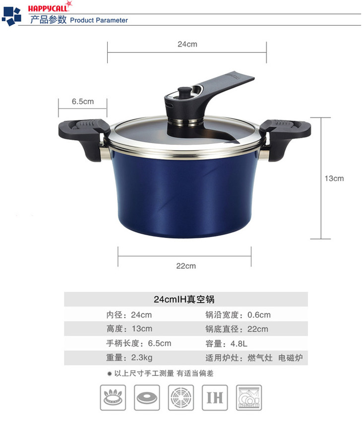 HAPPYCALL韩国厨具进口IH真空锅不粘锅汤锅电磁炉通用炖锅焖烧锅煲汤锅微压力锅微压锅不挑炉灶3003-0085