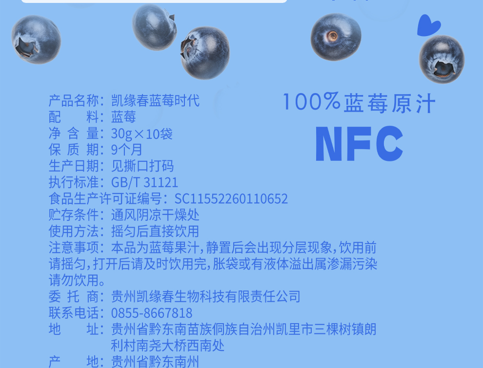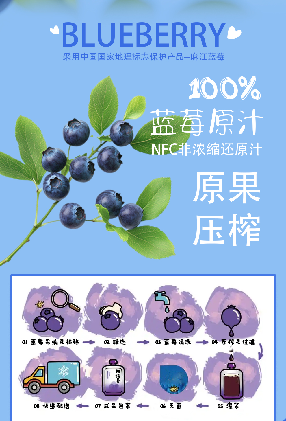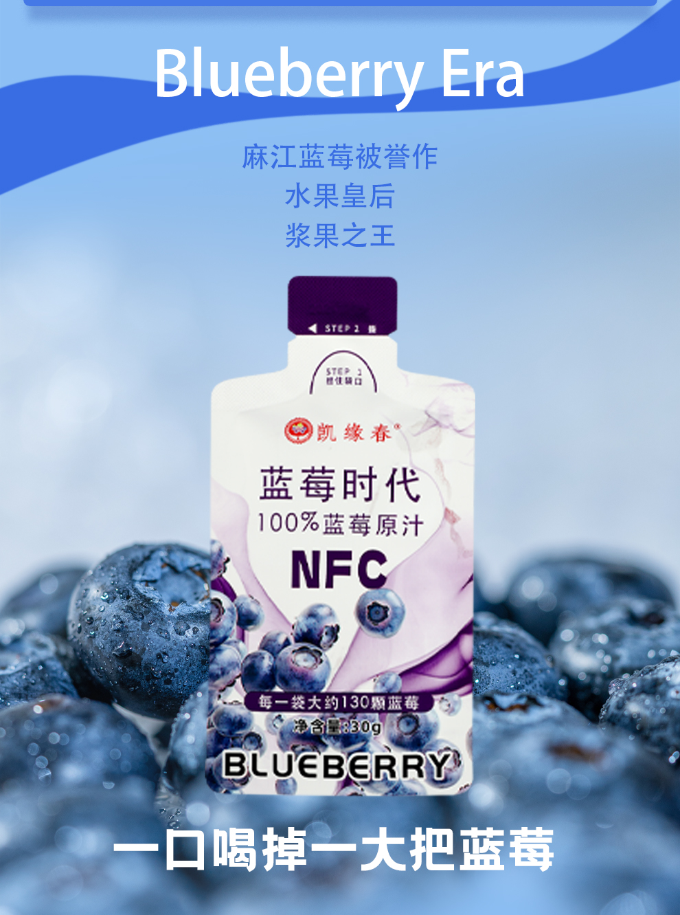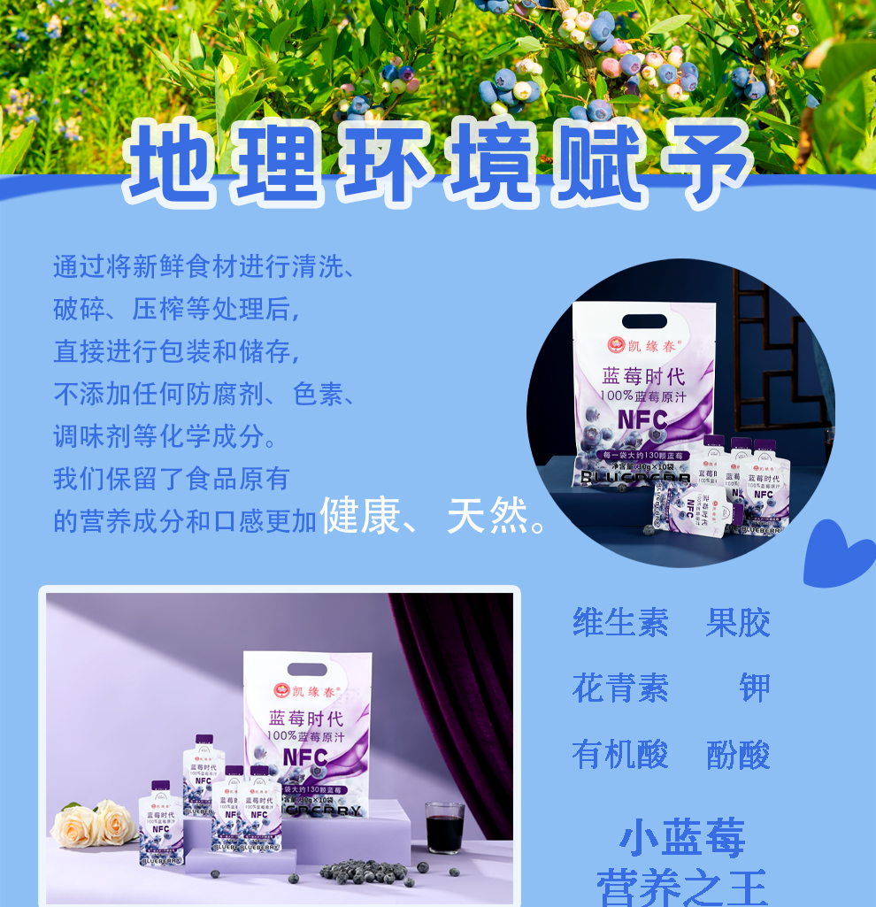 NFC蓝莓时代【100%蓝莓原汁】源自云贵高原北纬26度蓝莓核心产区 · 果香浓郁 · 不加一滴水 · 富含花青素 · 天然0添加