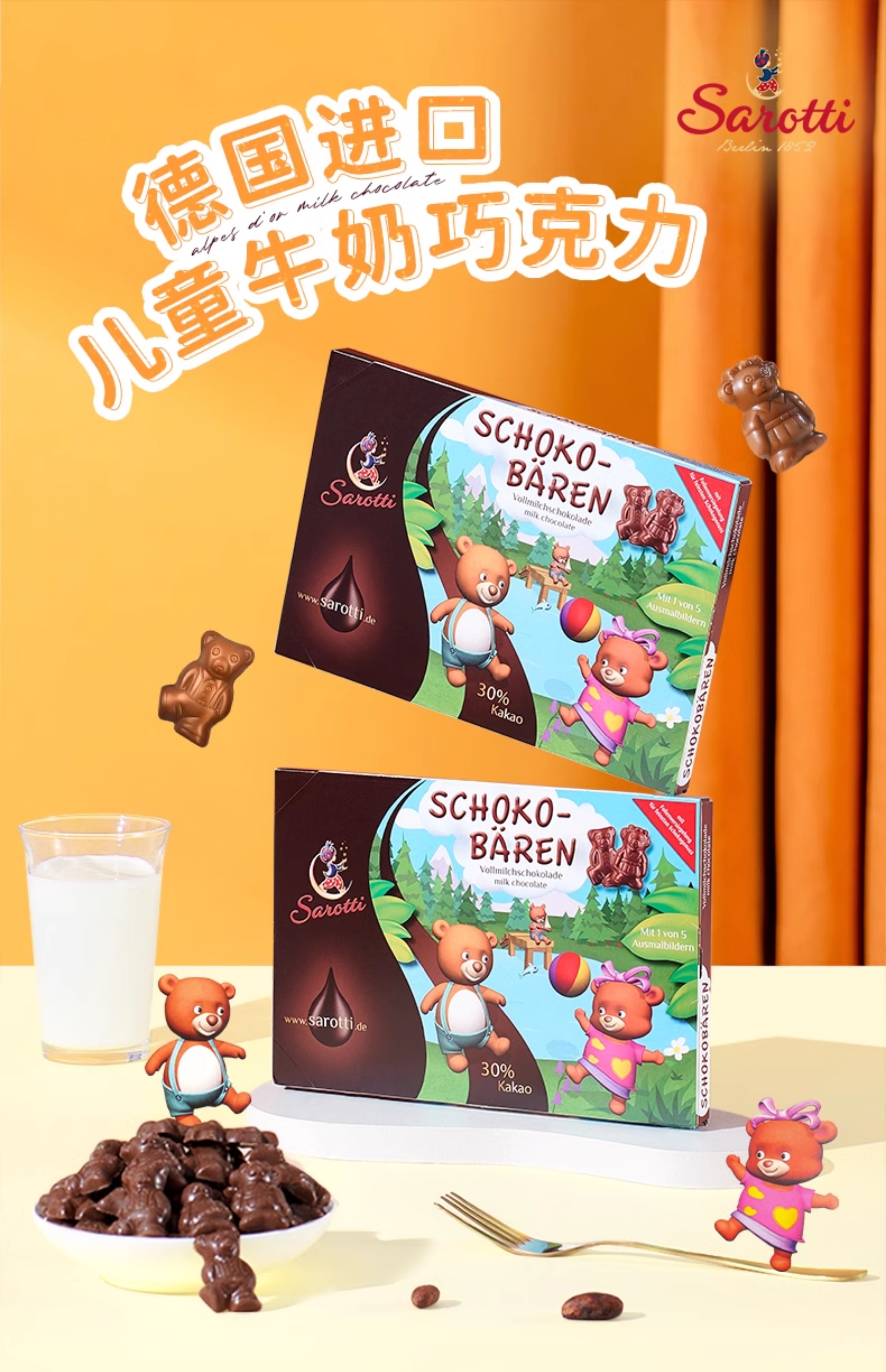 【中欧班列精选】德国进口萨洛缇儿童零食纯可可脂小熊牛奶巧克力盒装100g