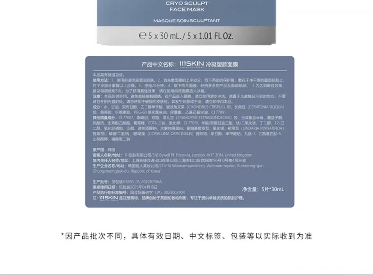 111SKIN冷凝面膜-蓝膜