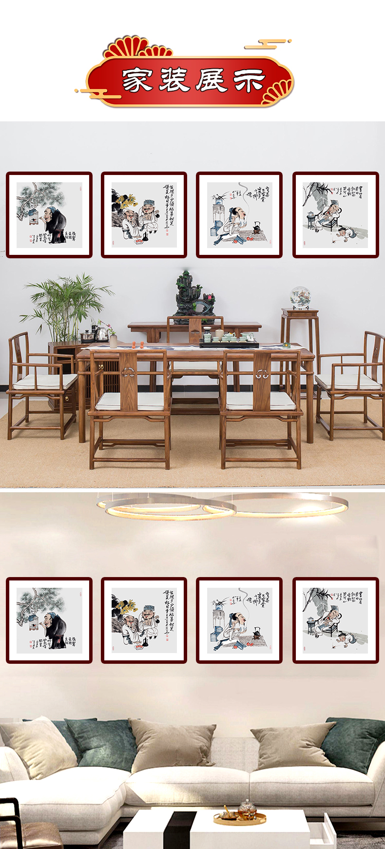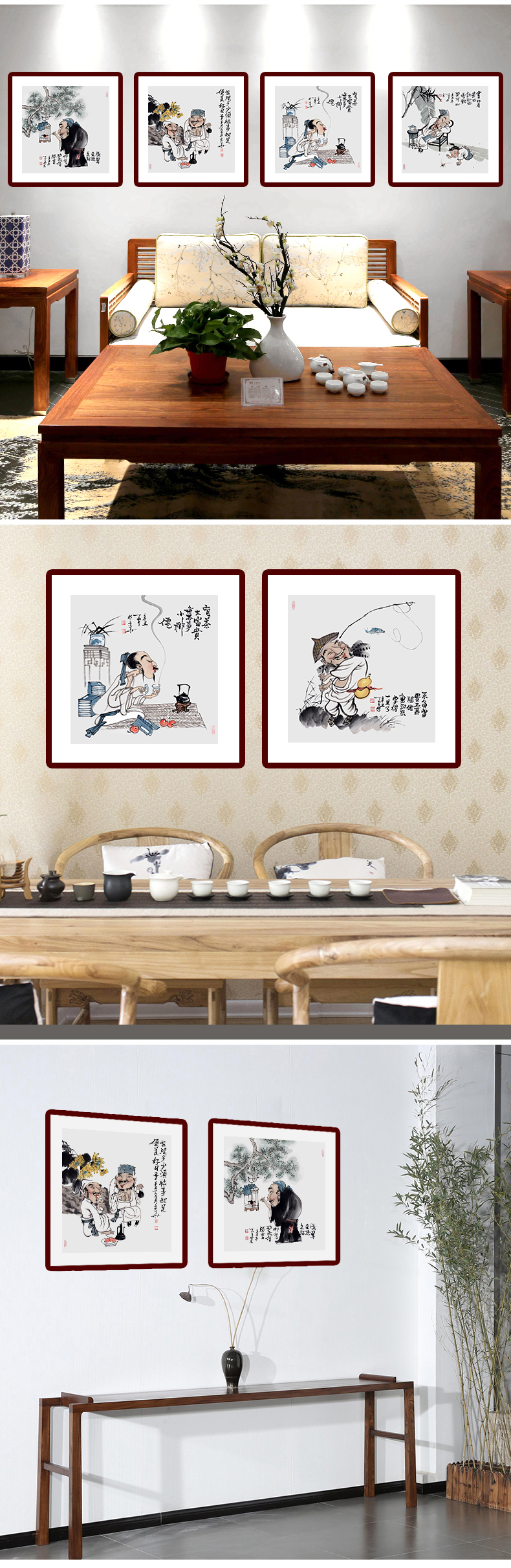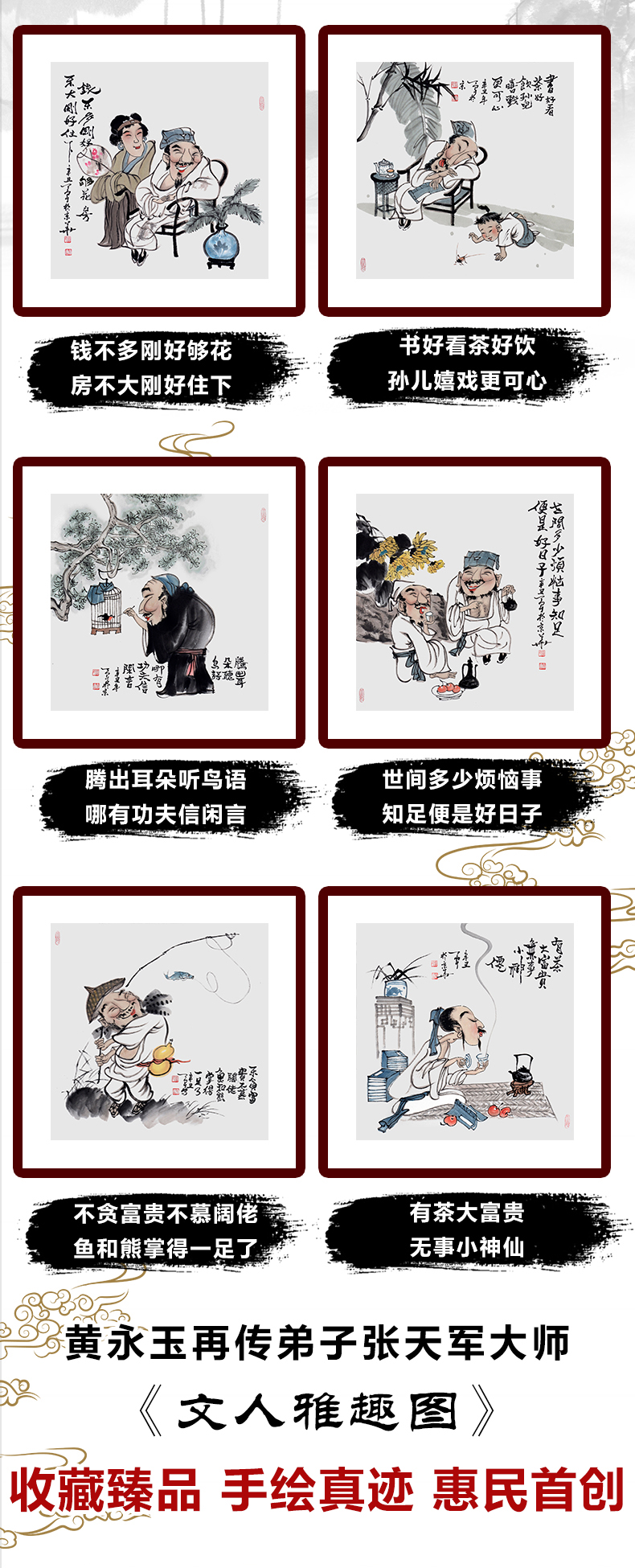 张天军《文人雅趣图》50*50cm*6 人物斗方作品 茶室/客厅挂画