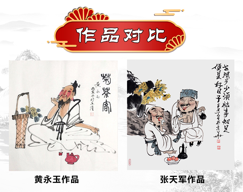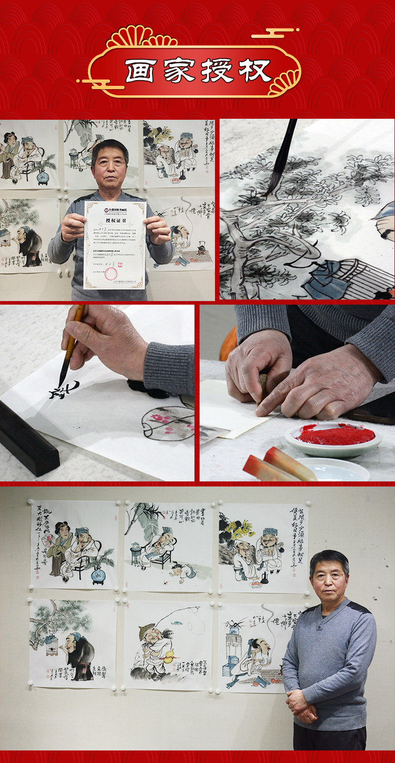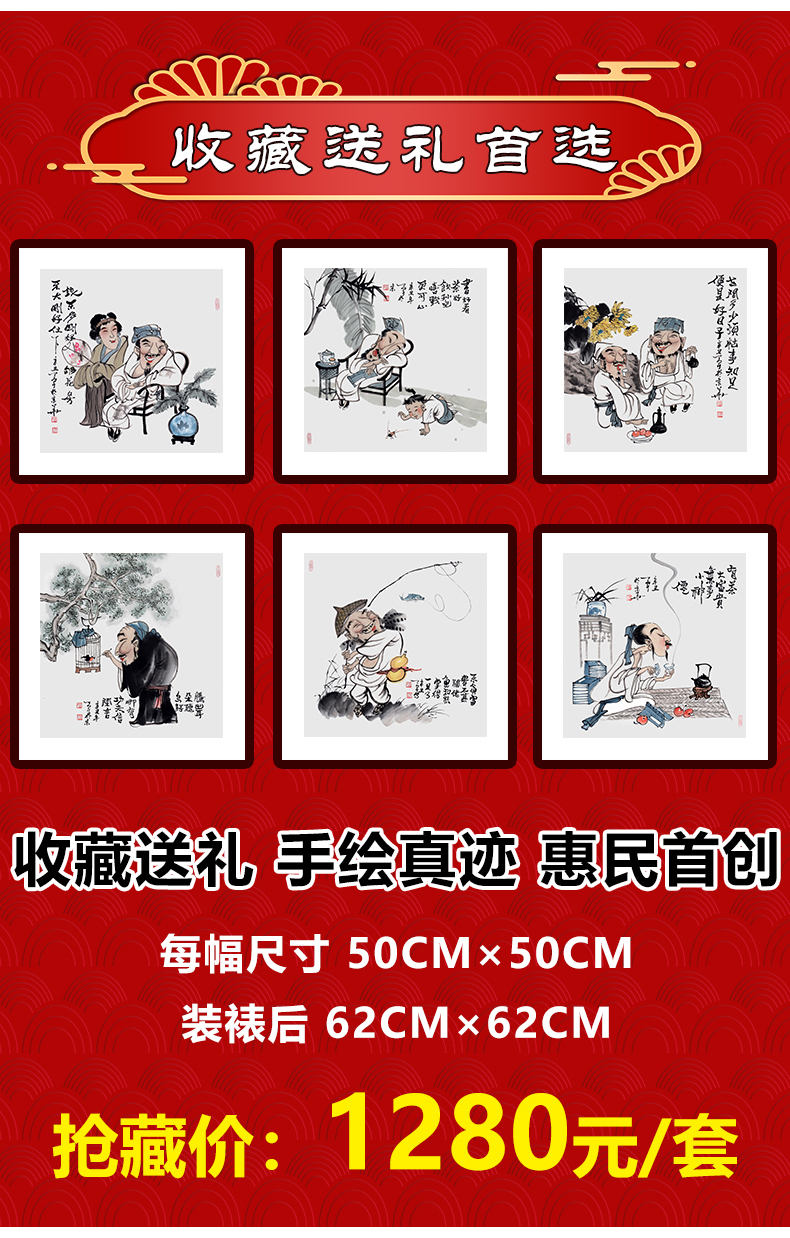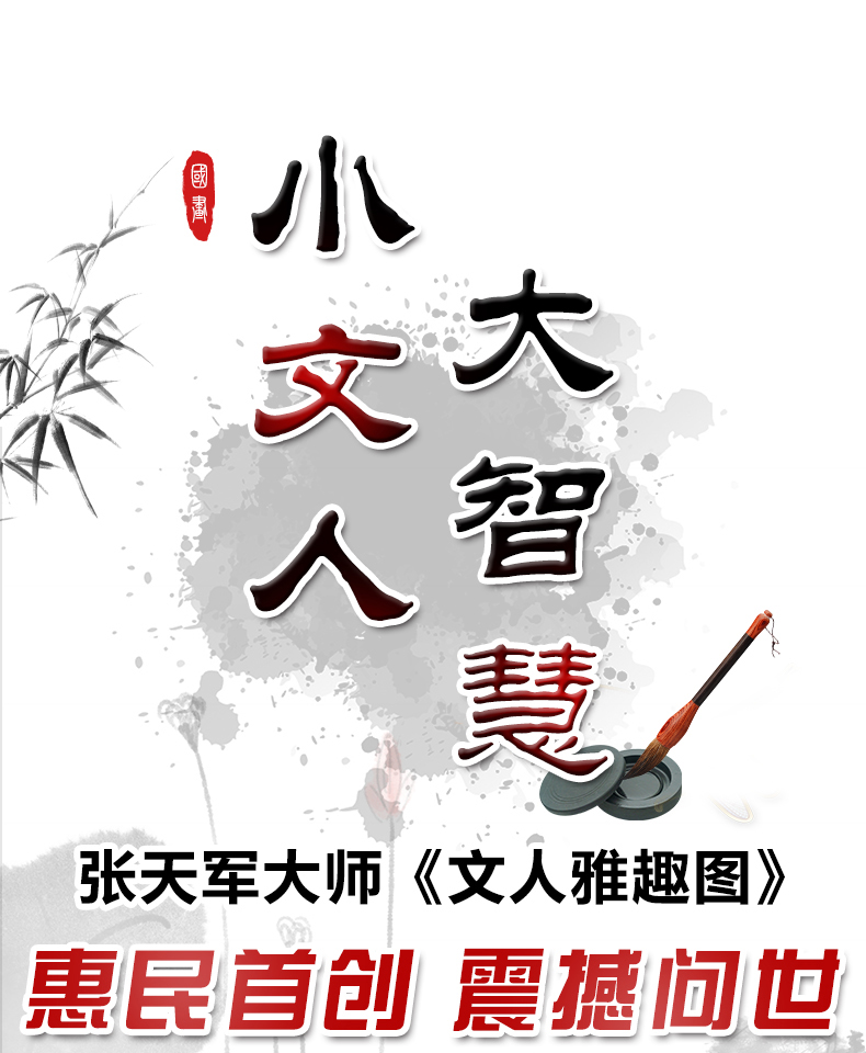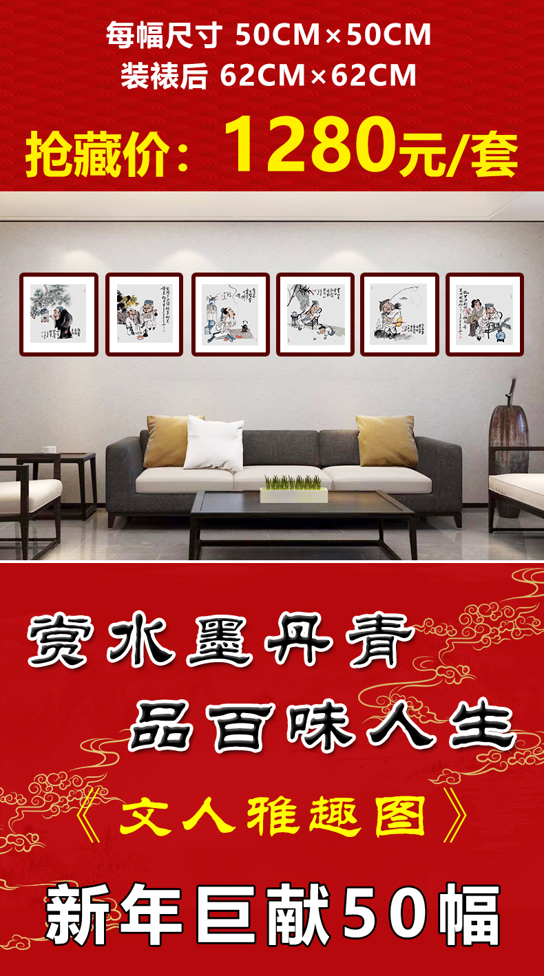 张天军《文人雅趣图》50*50cm*6 人物斗方作品 茶室/客厅挂画