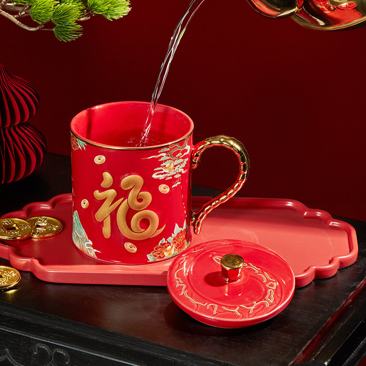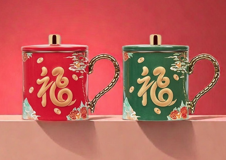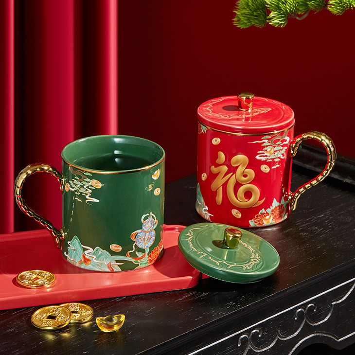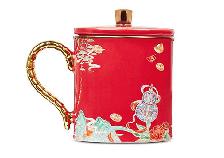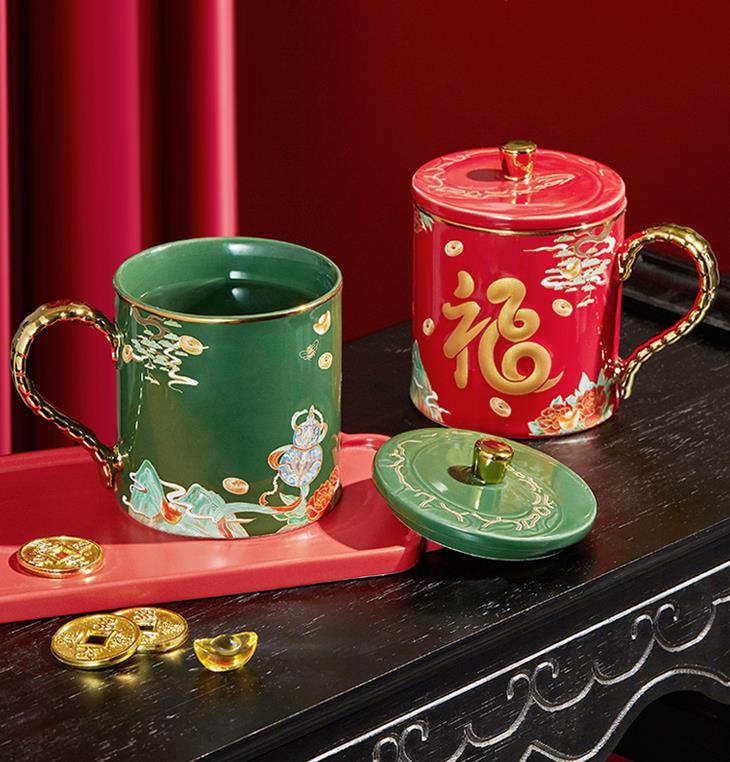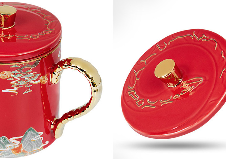这个马克生肖杯,主色调正是采用了两种东方文化的颜色:「宫殿红」「苍山翠」,代表幸福与吉祥。