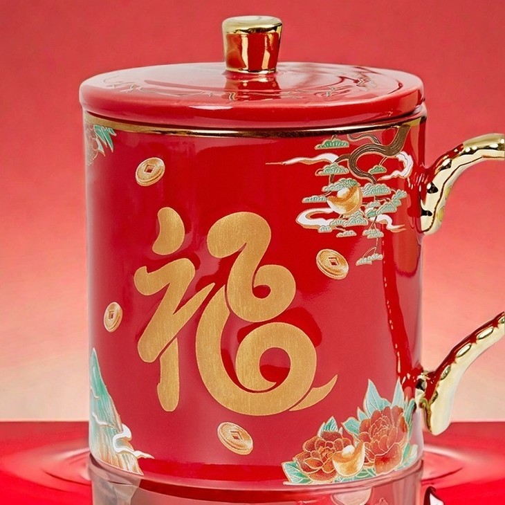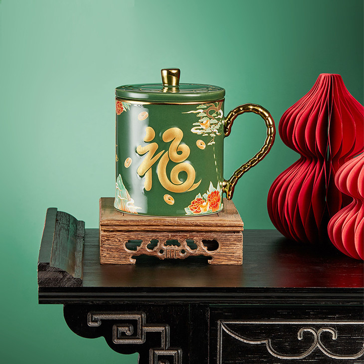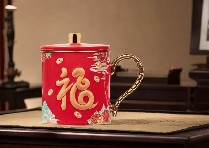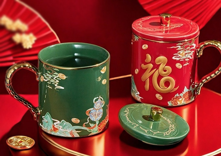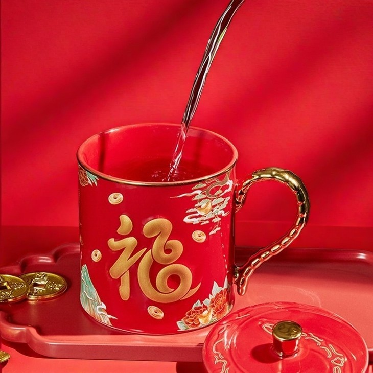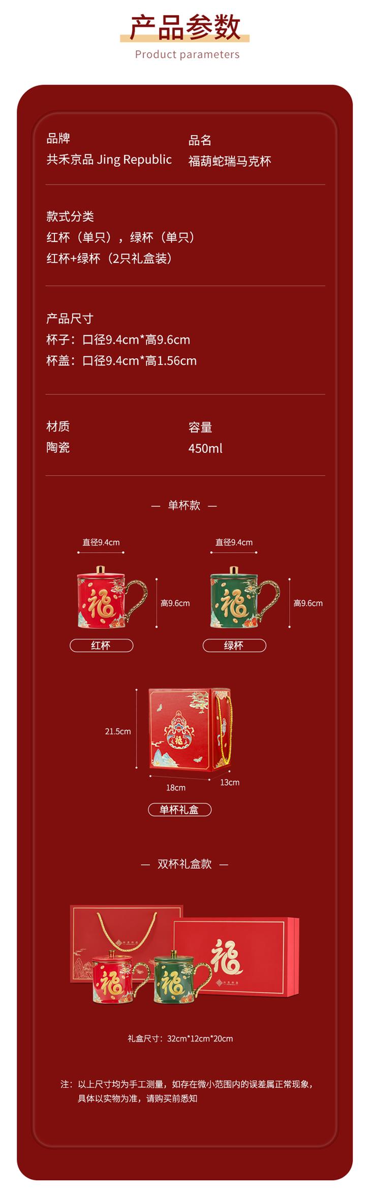 这个马克生肖杯,主色调正是采用了两种东方文化的颜色:「宫殿红」「苍山翠」,代表幸福与吉祥。