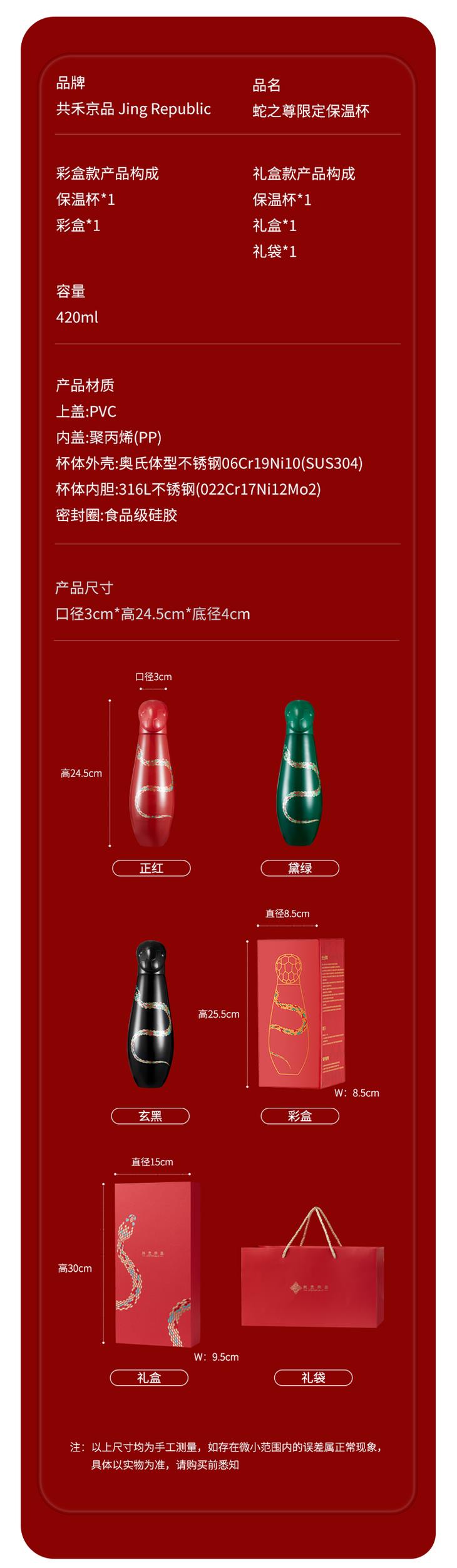 正红·黛绿·玄黑,三种不同颜色可供选择,以国色为名,为蛇年饮水添香。