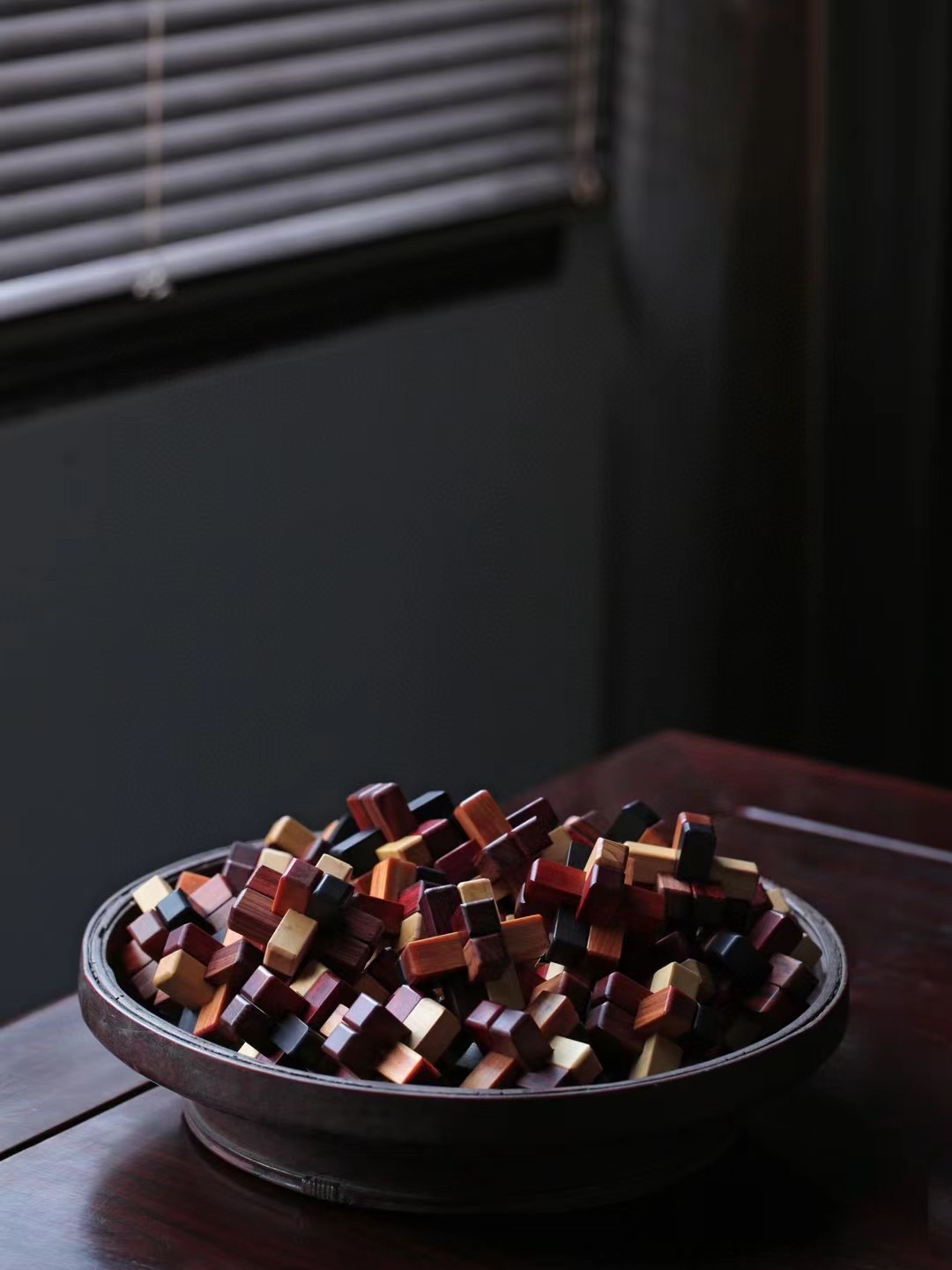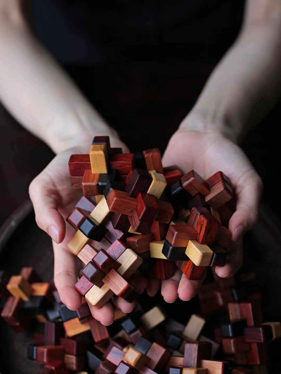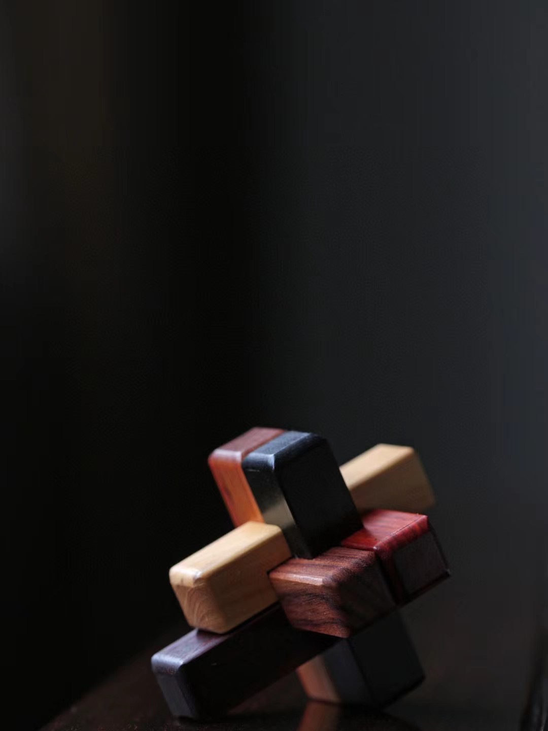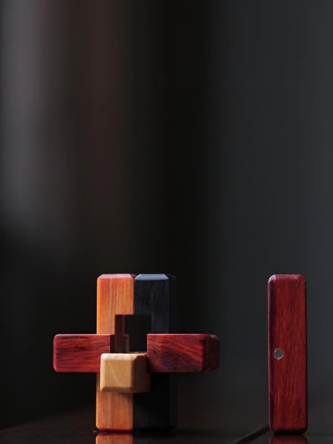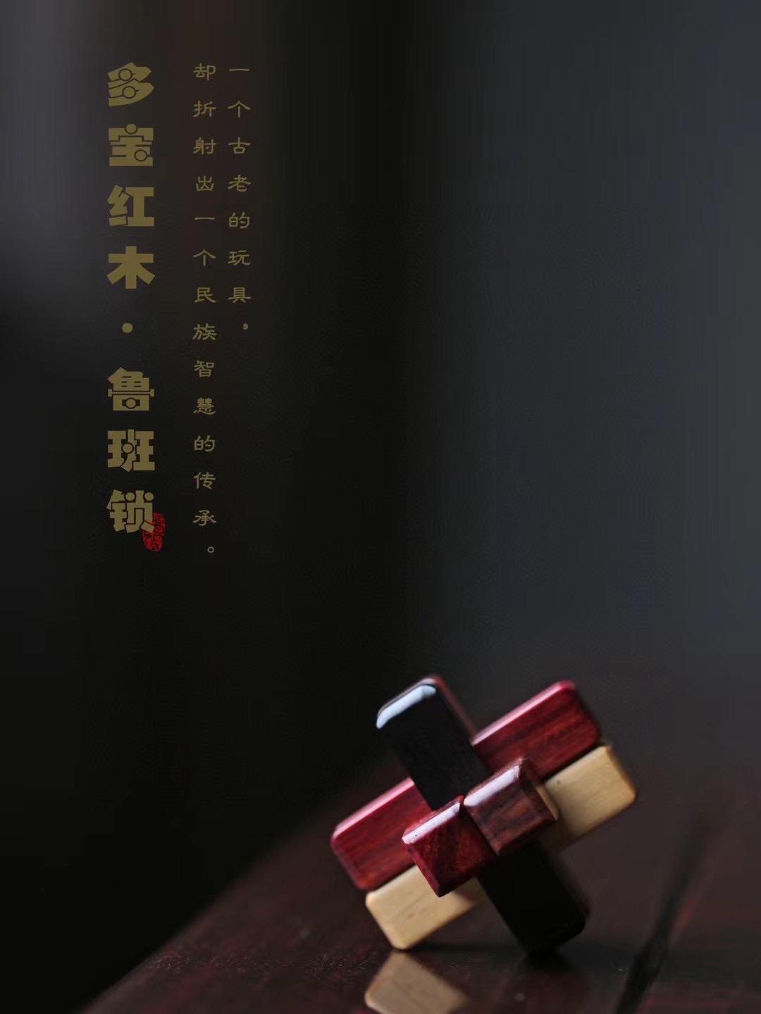 六种红木(小叶紫檀·血龙木·红酸枝·黄杨木·黑檀·红贵宝)制成,凝聚古人智慧,易拆难装。