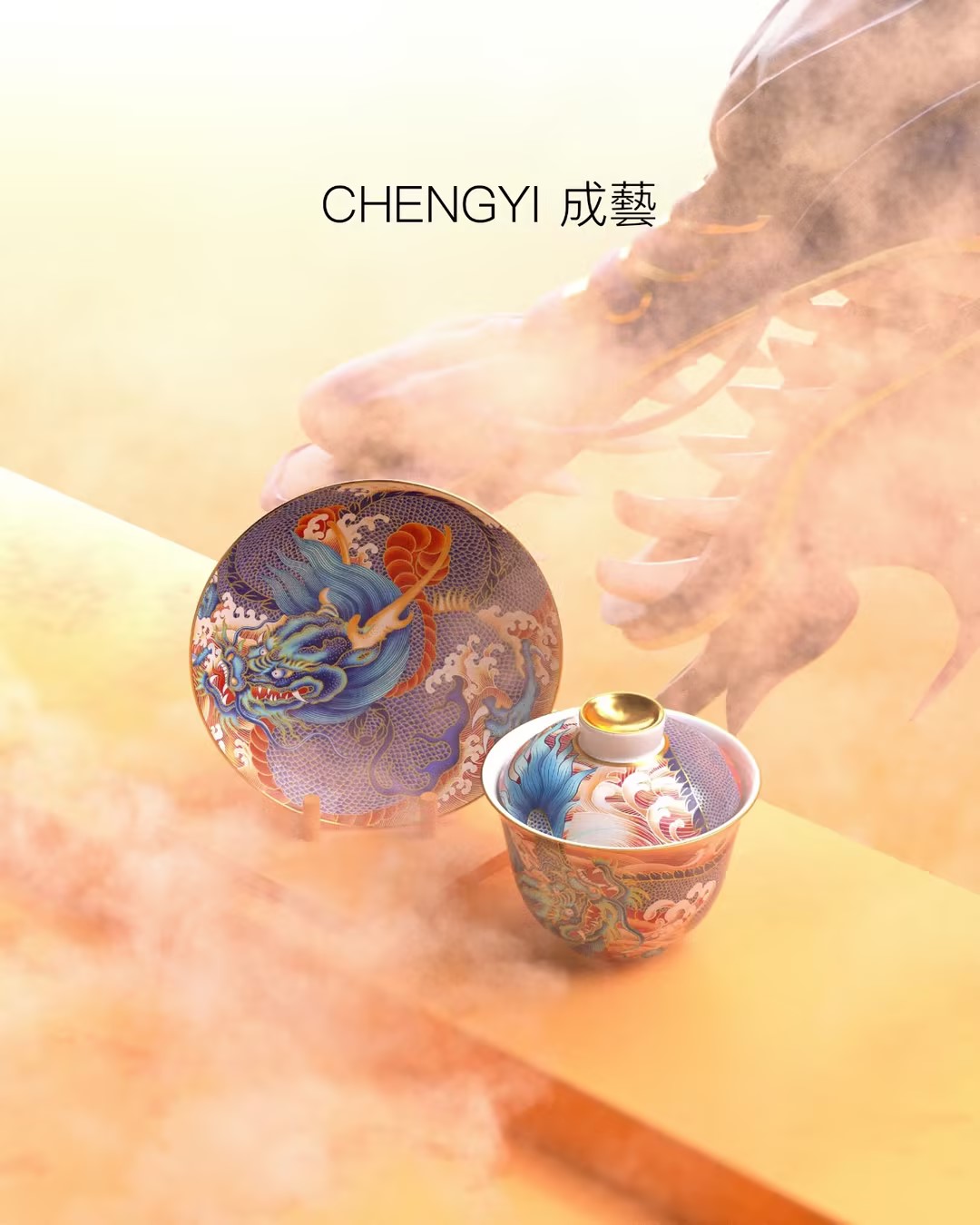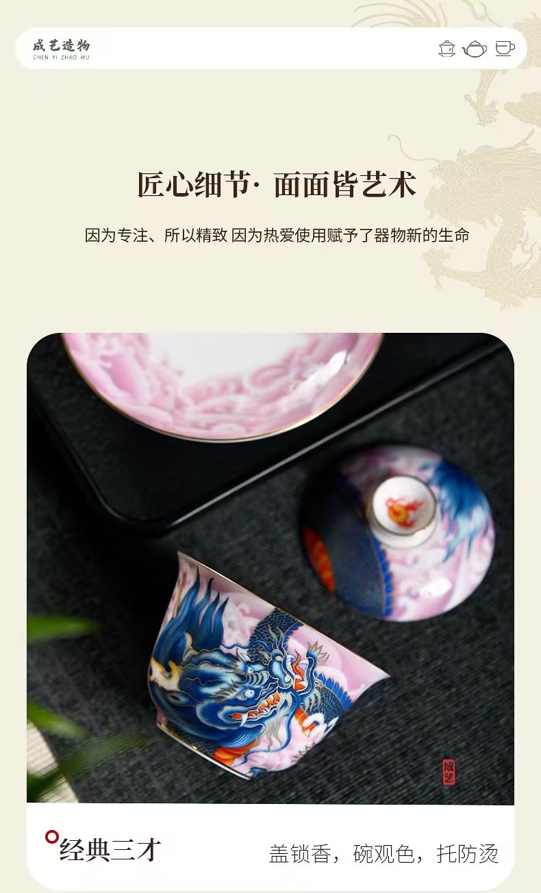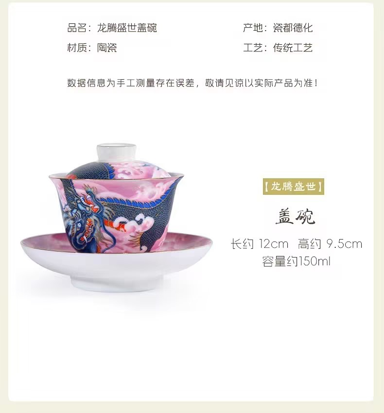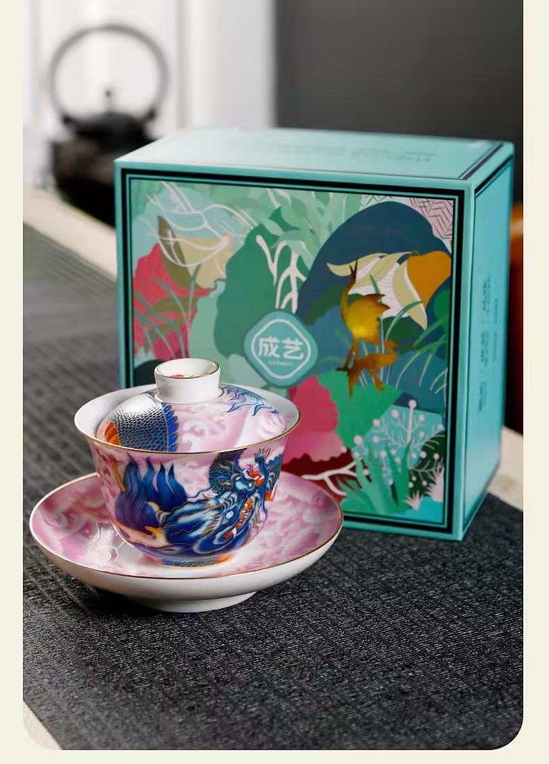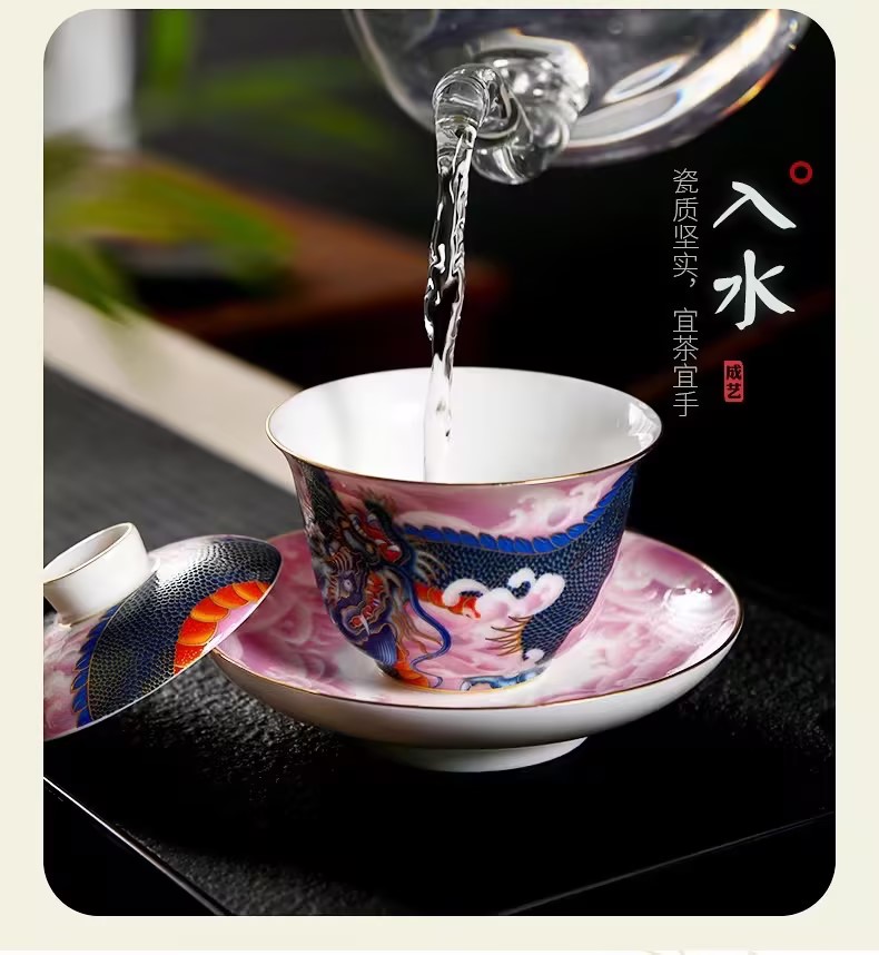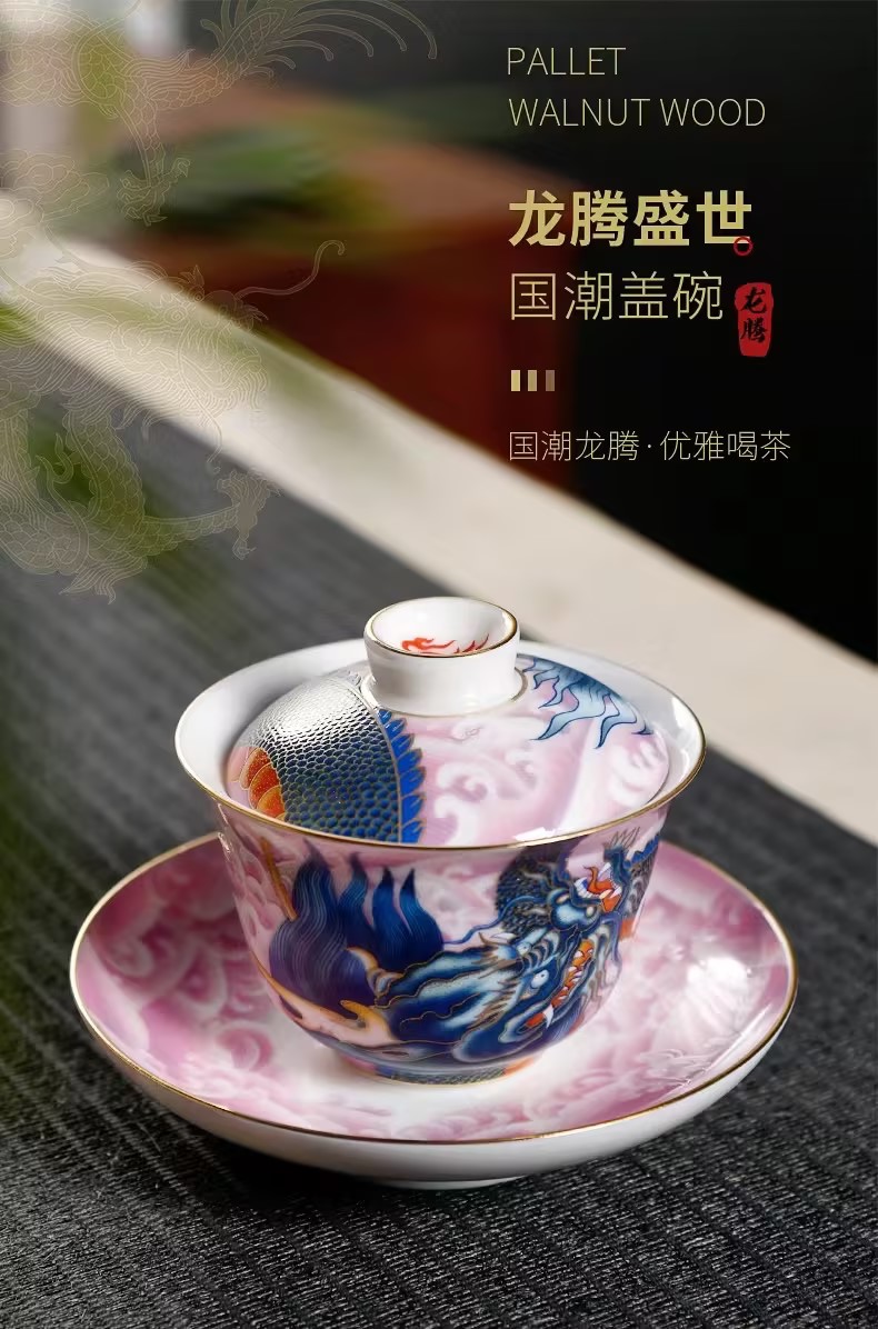 成艺龙腾盛世盖碗隐雕蝶恋马蹄介杯锦瑟元宝介杯