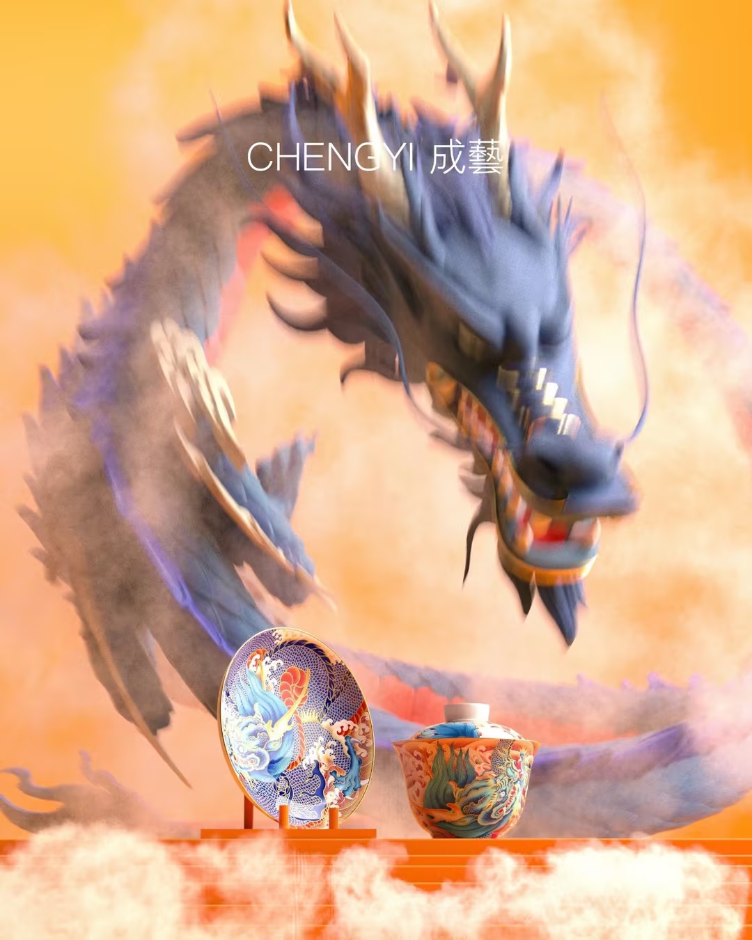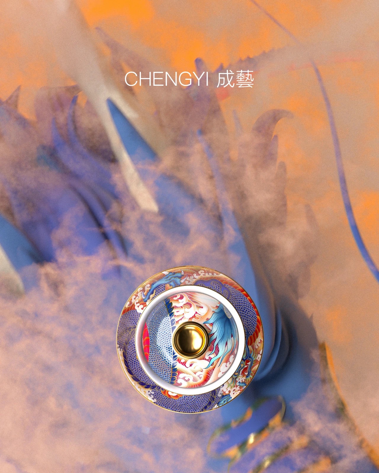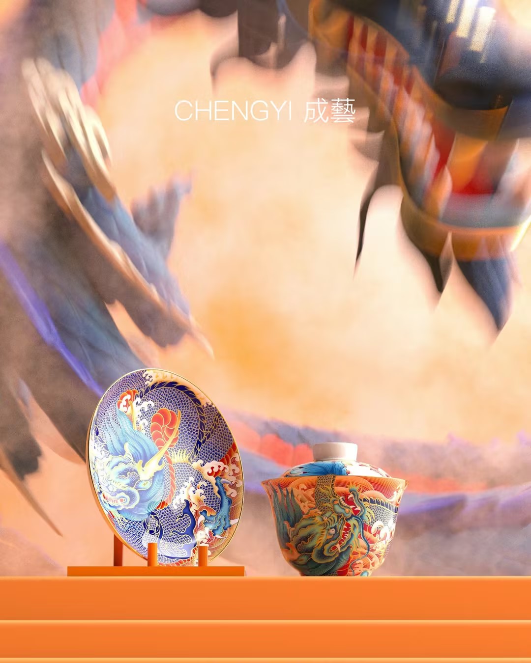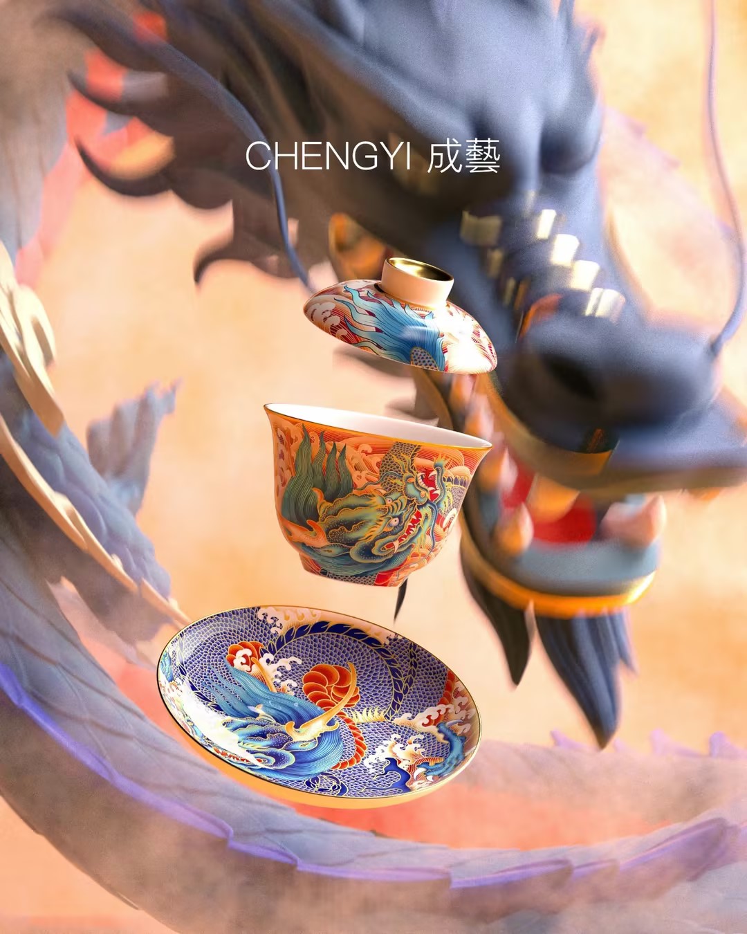 成艺龙腾盛世盖碗隐雕蝶恋马蹄介杯锦瑟元宝介杯