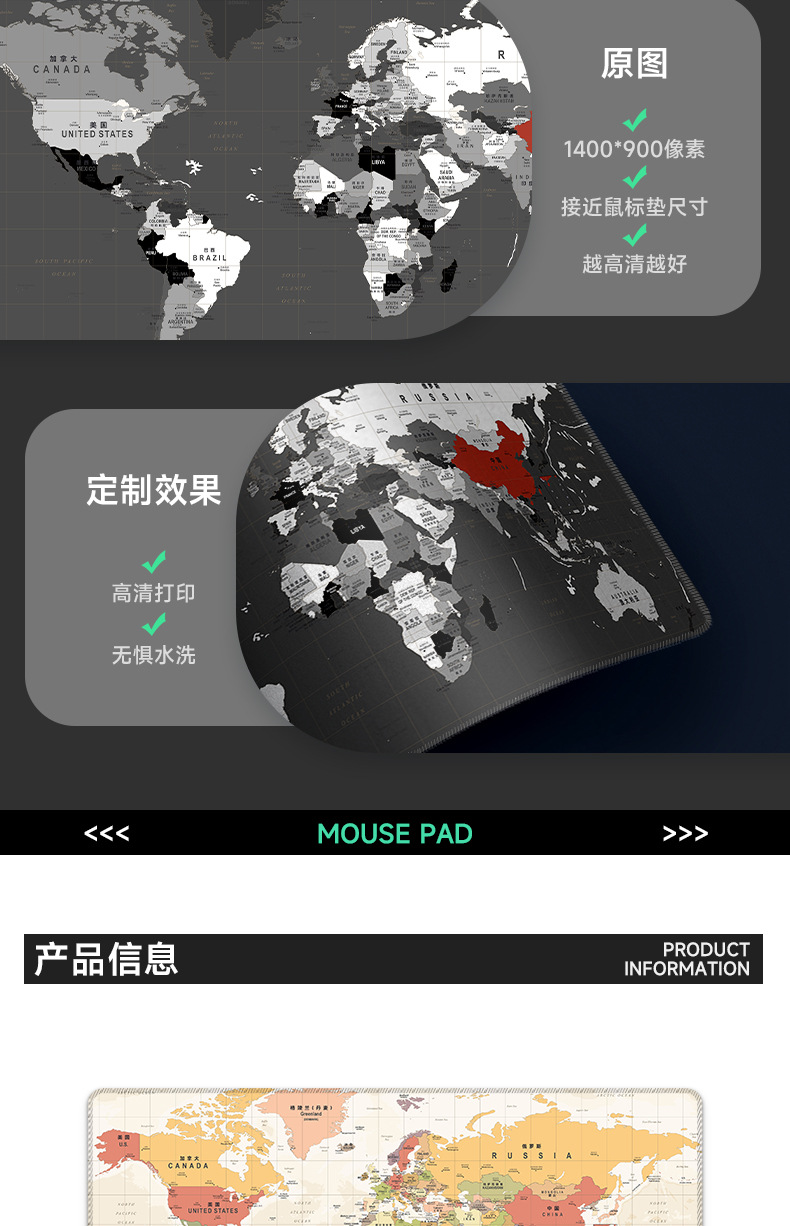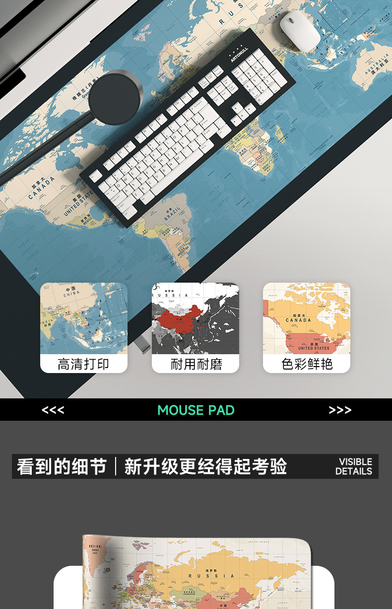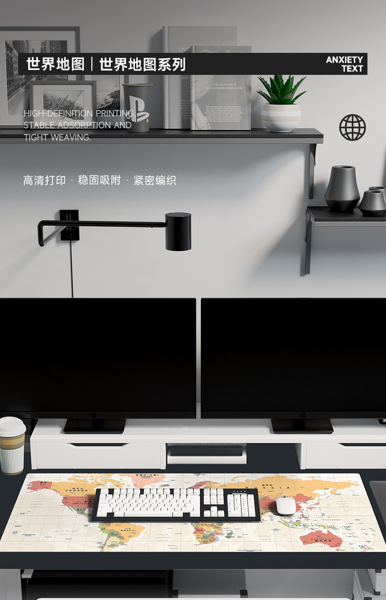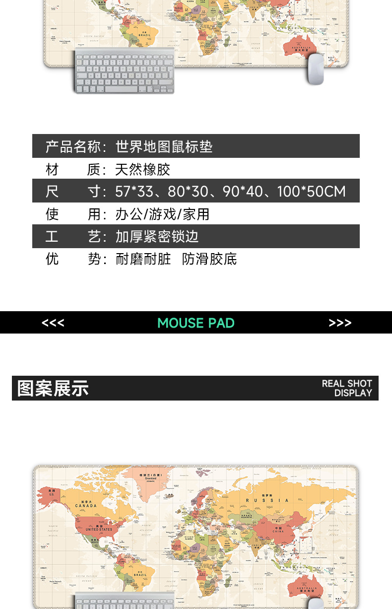 超大号鼠标垫世界地图电脑l办公桌垫加厚锁边书桌垫滑鼠垫