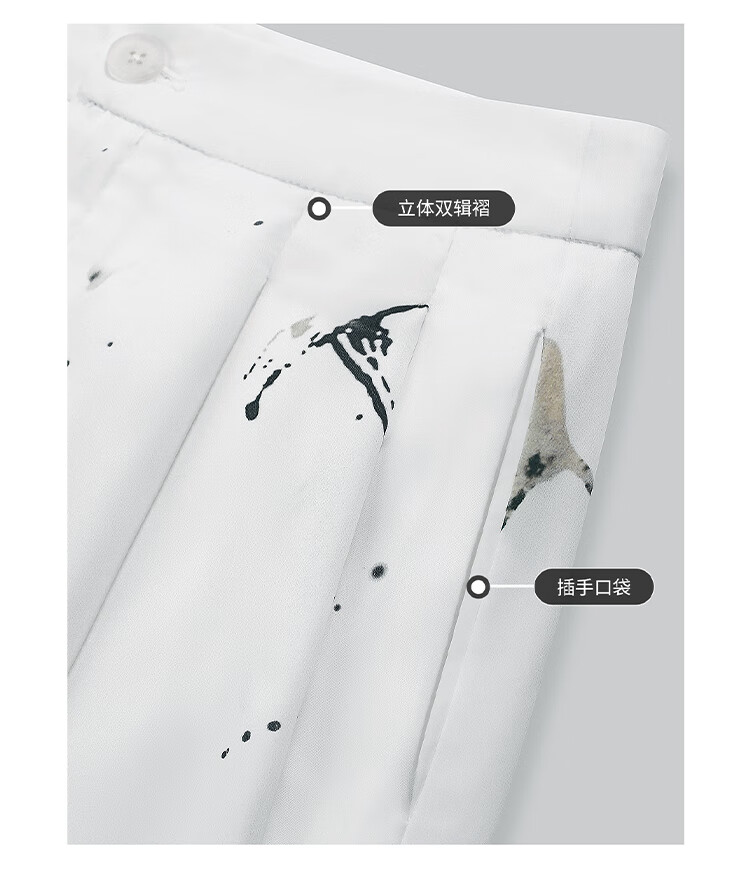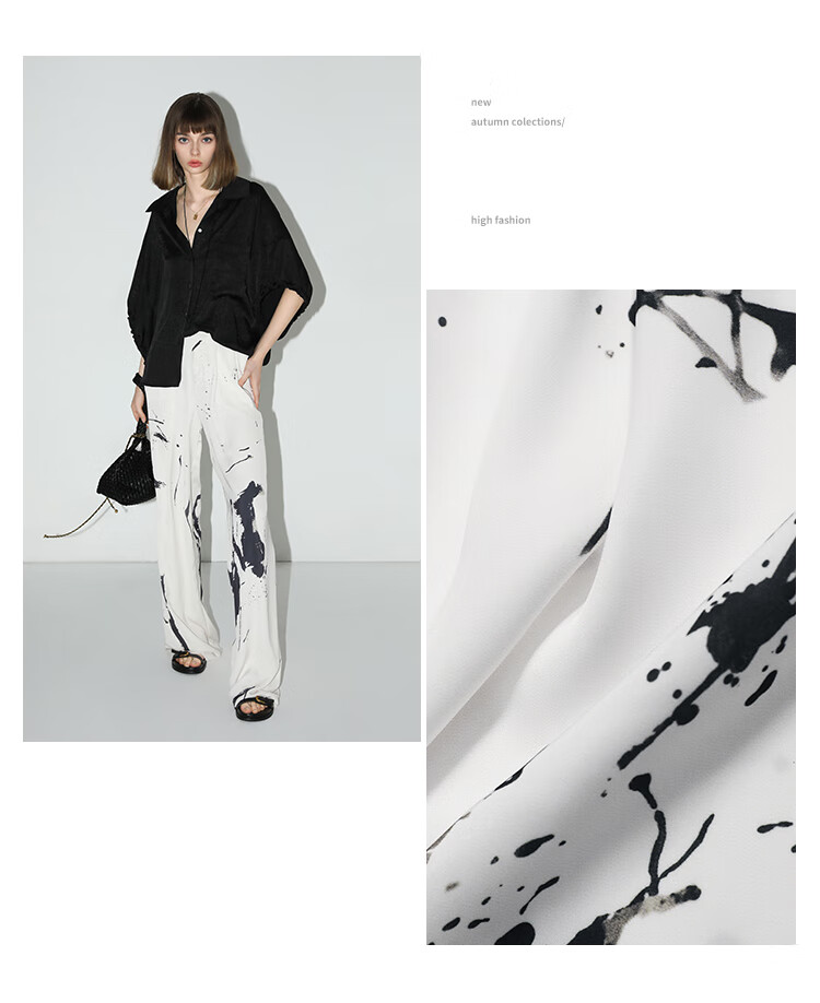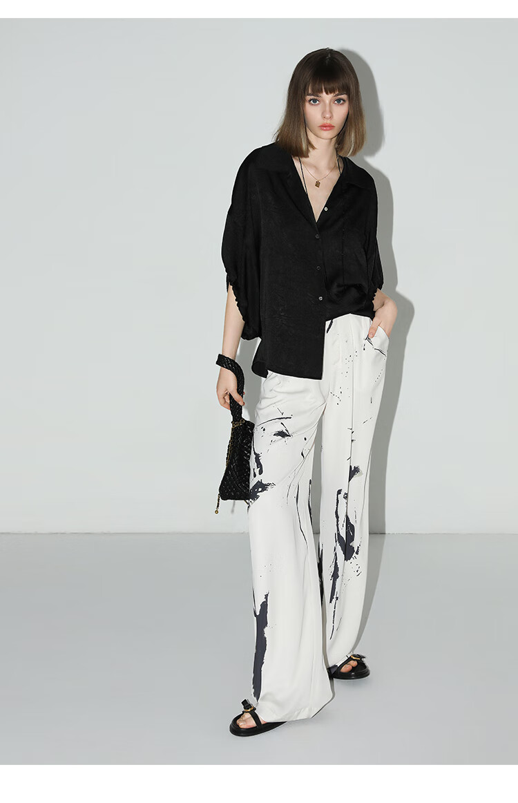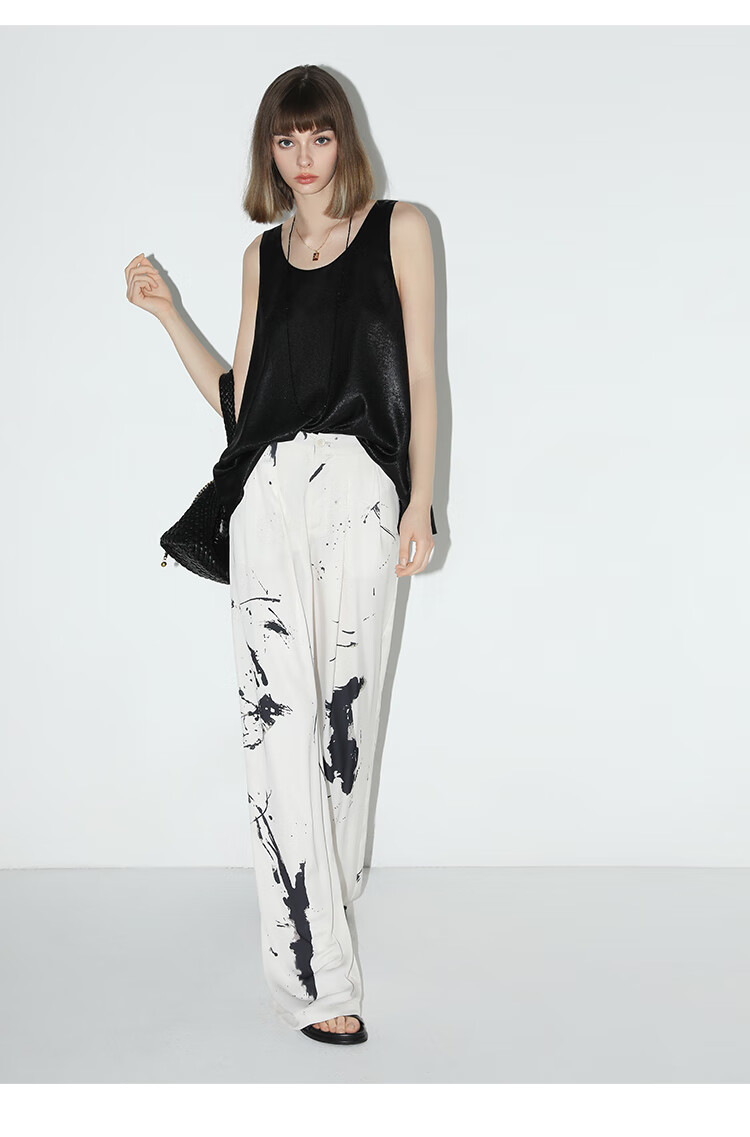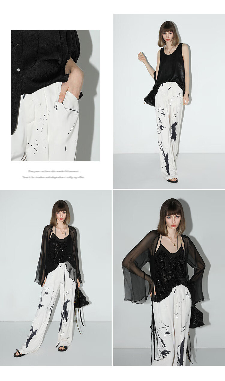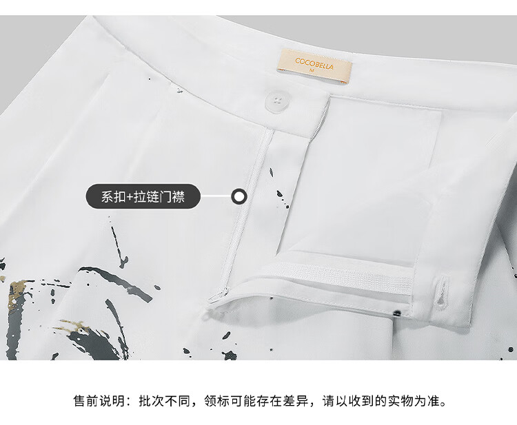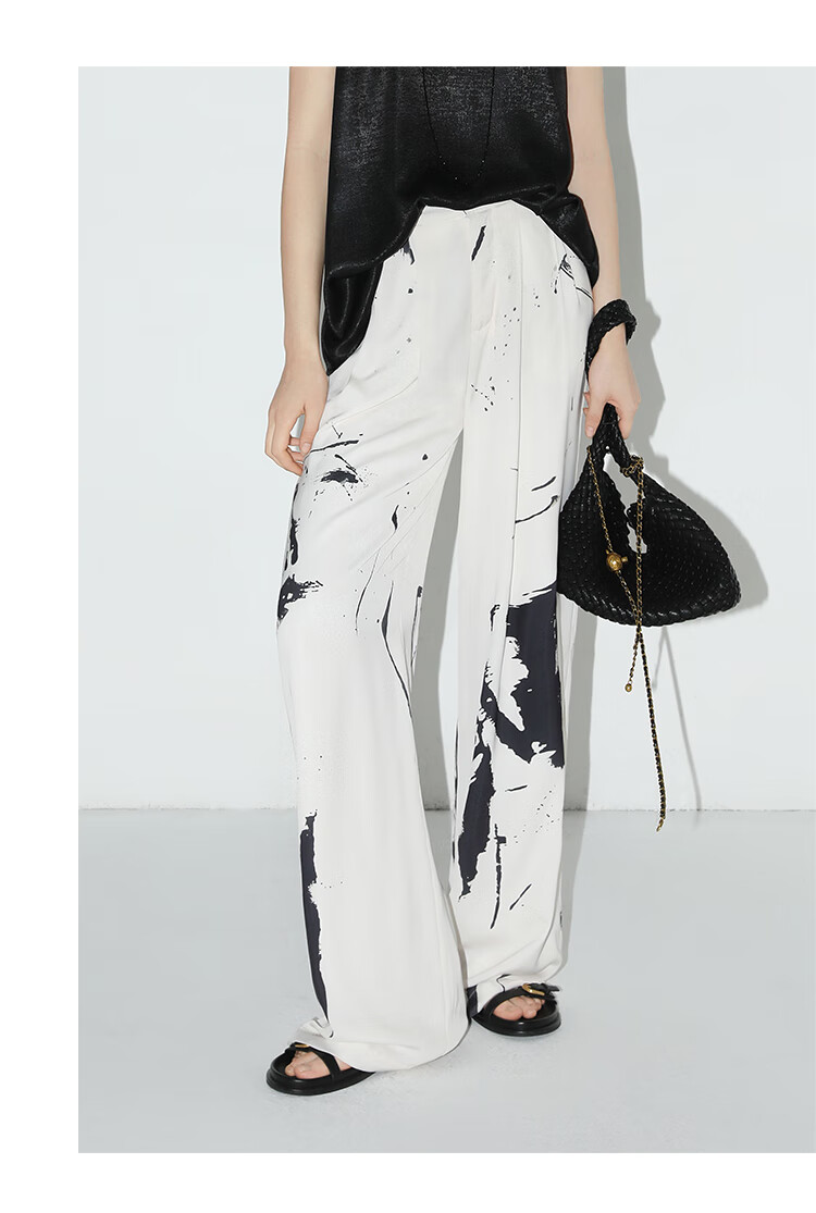 COCOBELLA国风水墨晕染休闲阔腿裤宽松垂坠打褶直筒裤PA3035