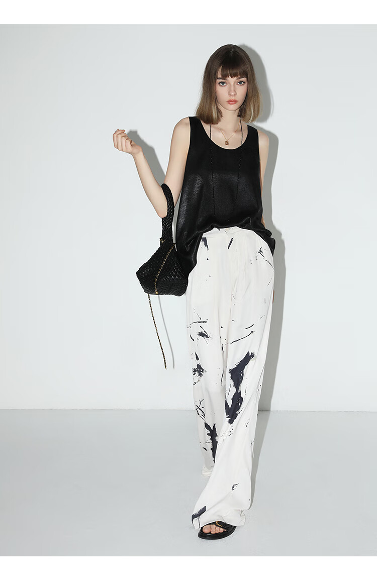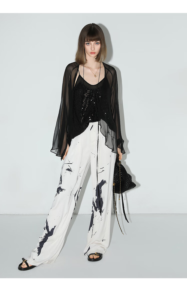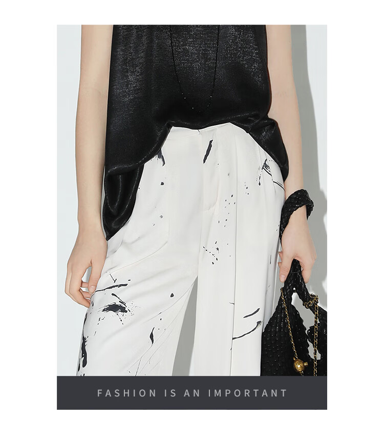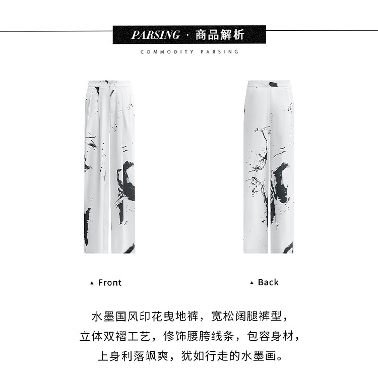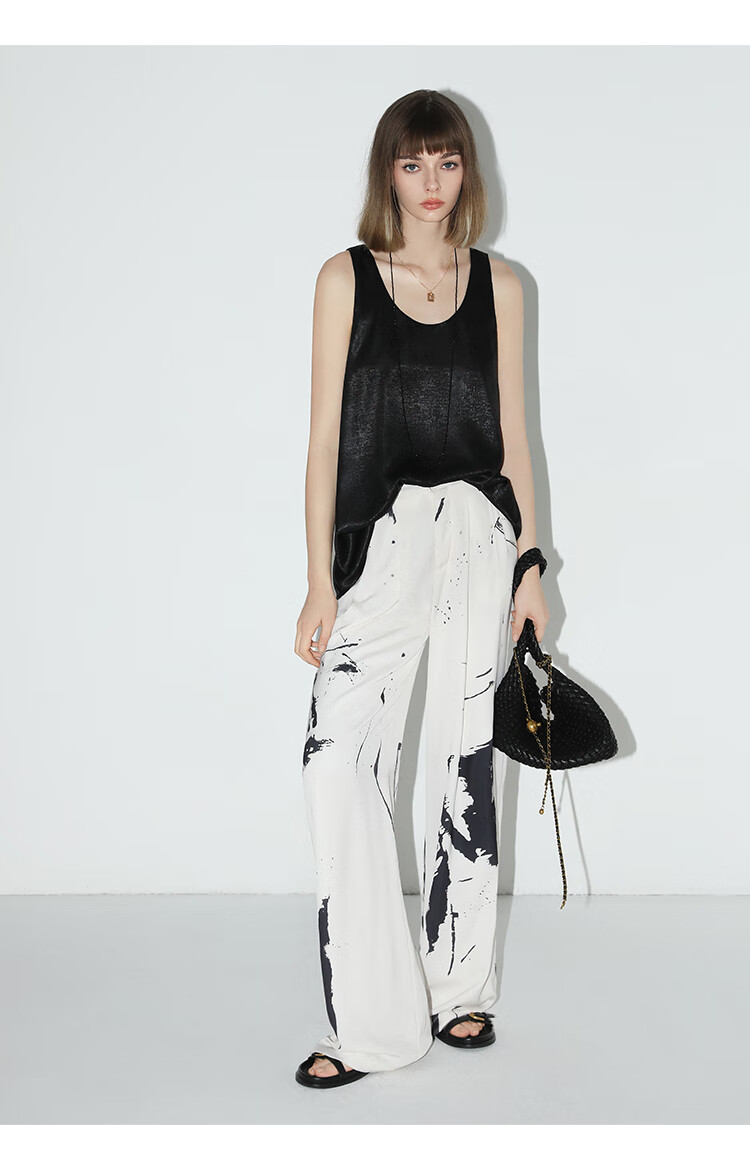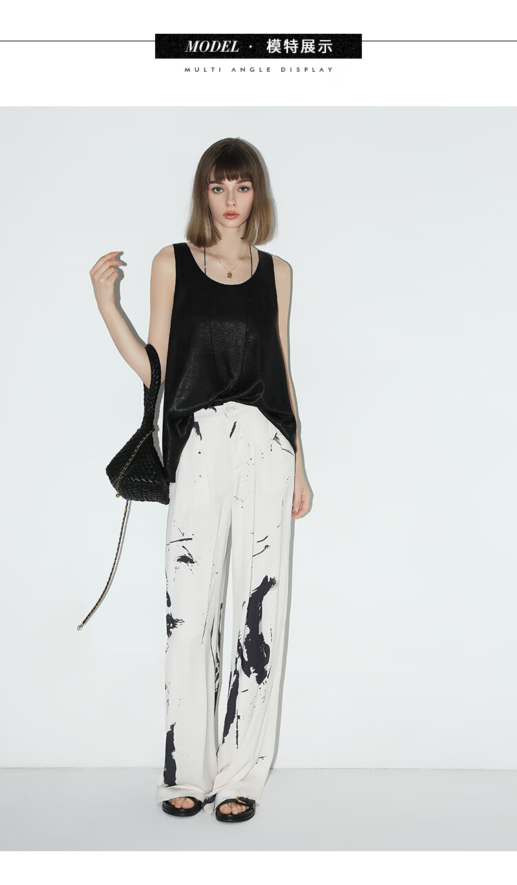 COCOBELLA国风水墨晕染休闲阔腿裤宽松垂坠打褶直筒裤PA3035
