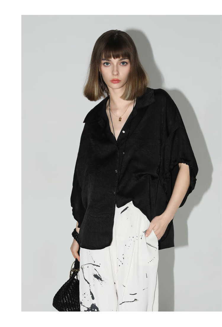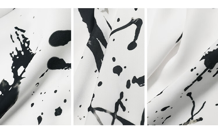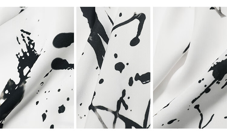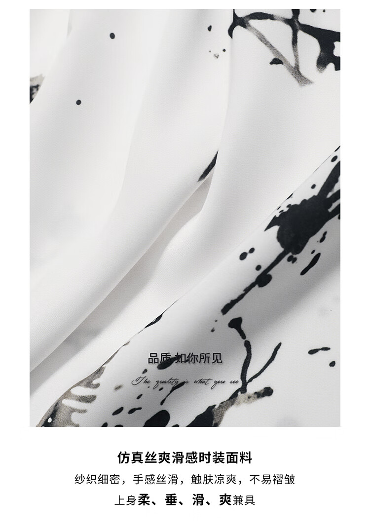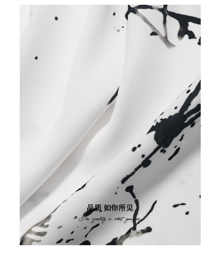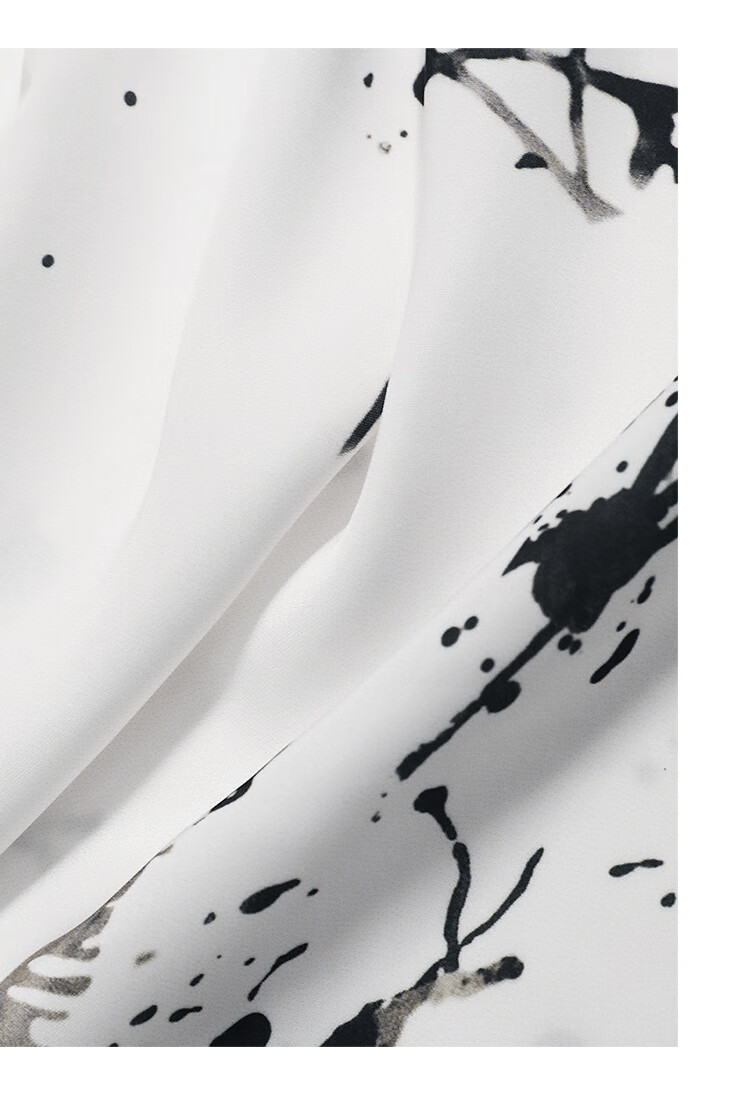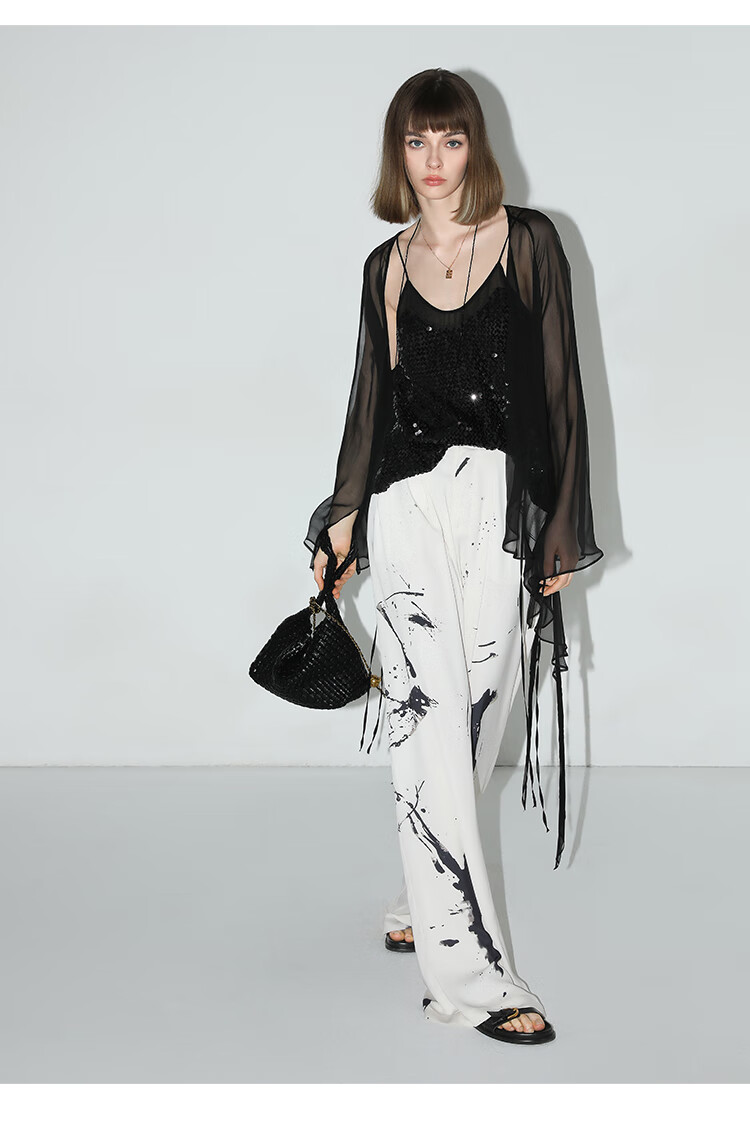 COCOBELLA国风水墨晕染休闲阔腿裤宽松垂坠打褶直筒裤PA3035