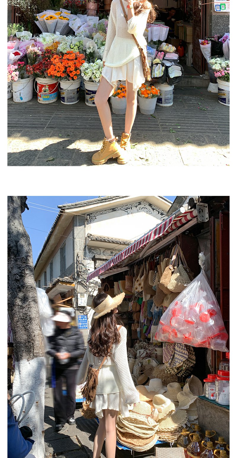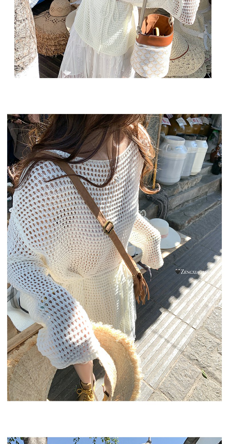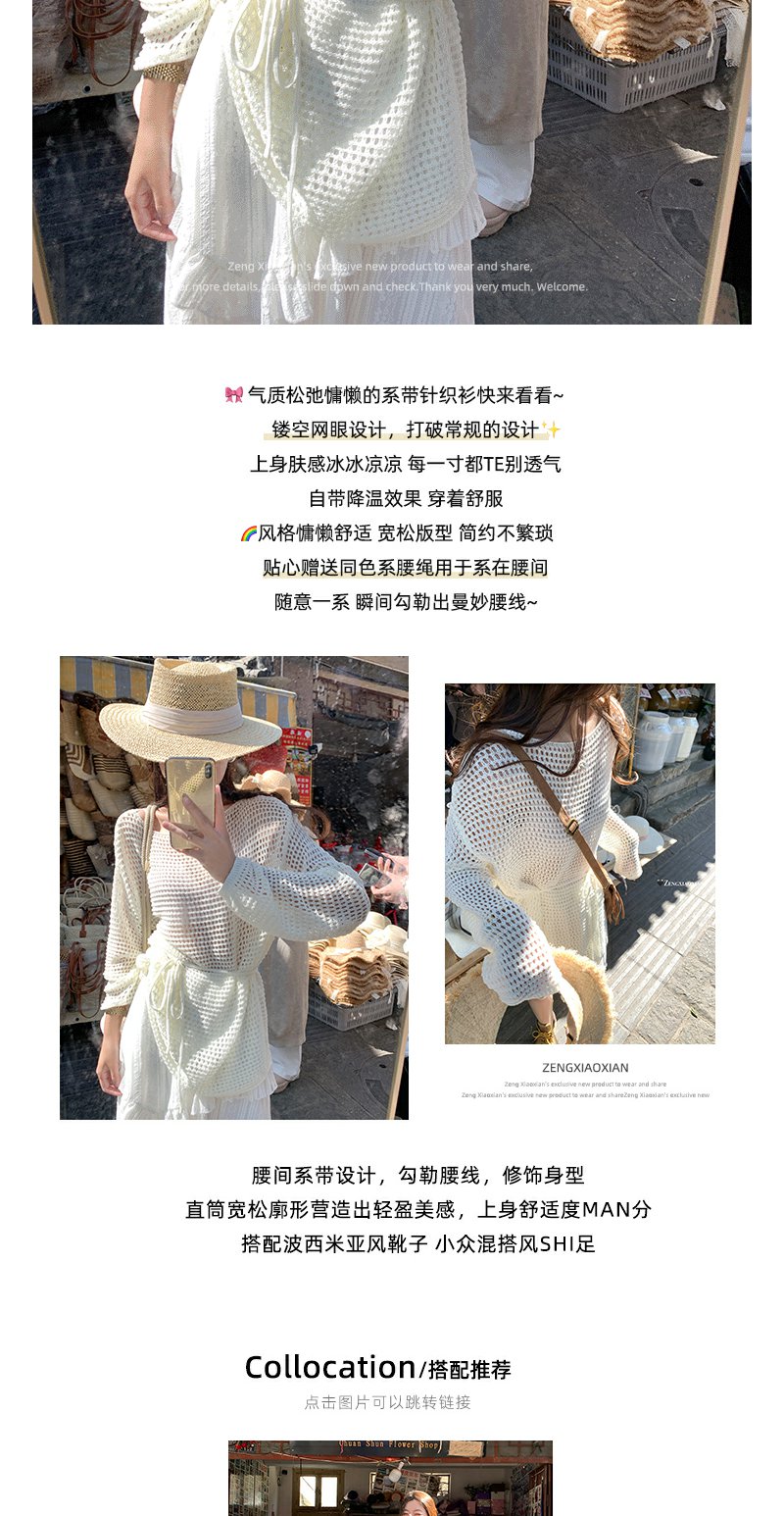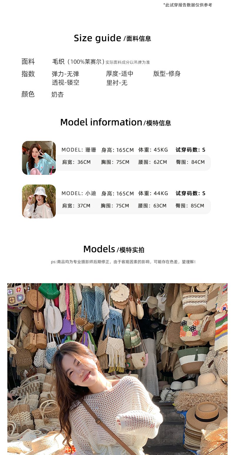 <曾小咸推荐>慵懒宽松套头杏色镂空针织罩衫【预售3-15天发货】