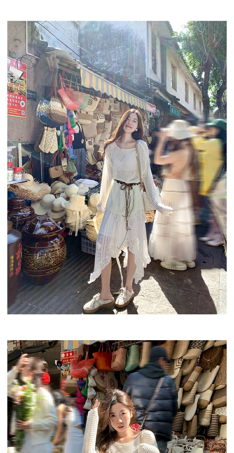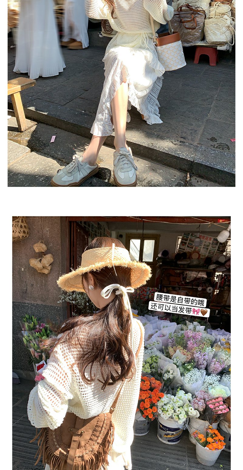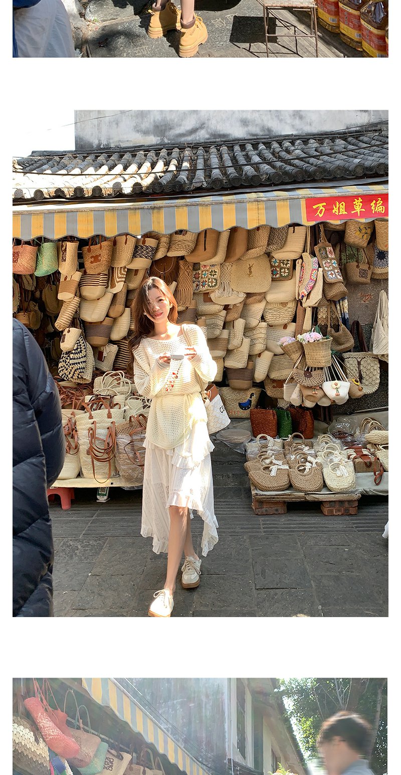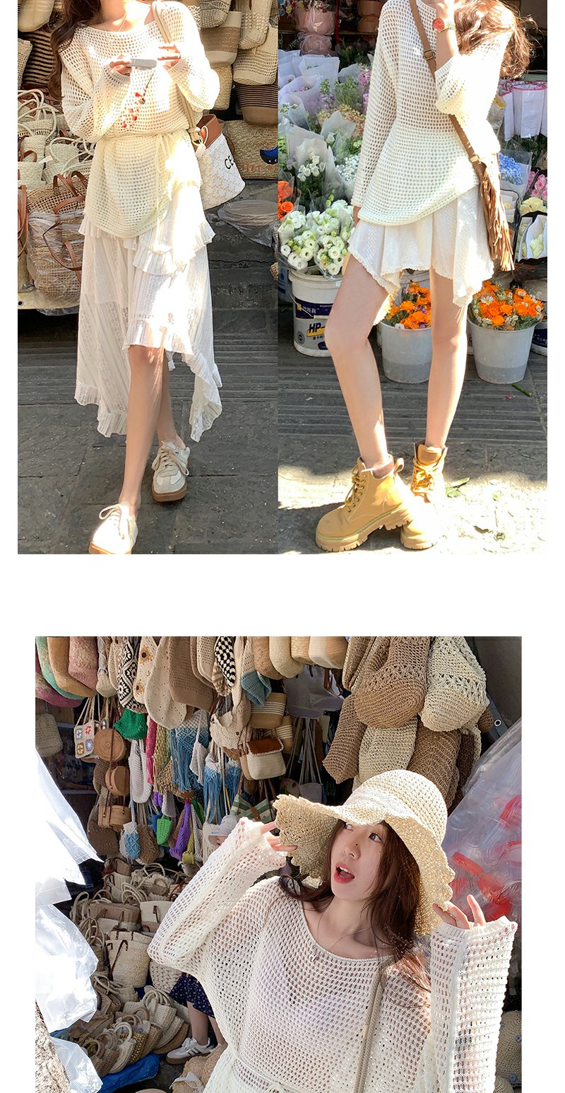 <曾小咸推荐>慵懒宽松套头杏色镂空针织罩衫【预售3-15天发货】