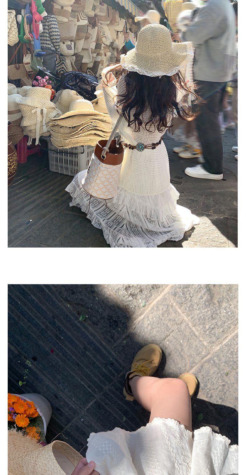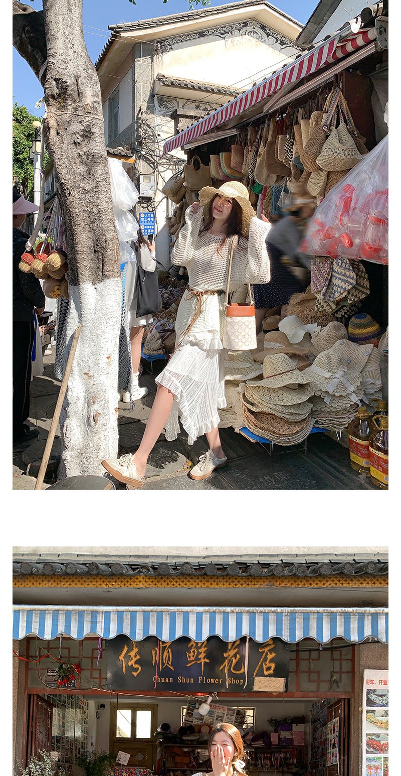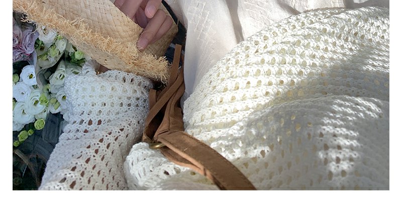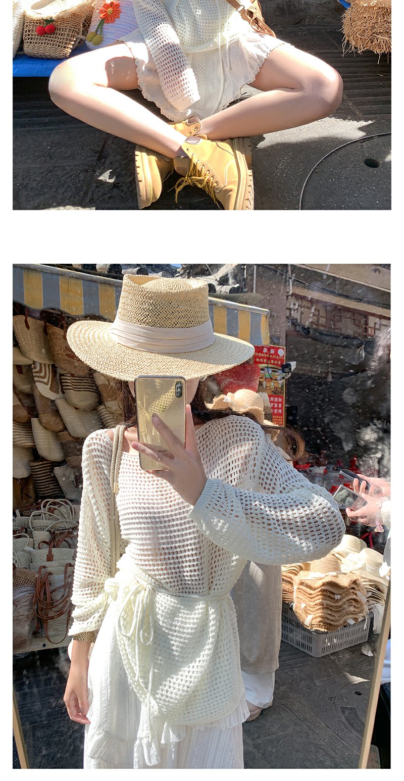 <曾小咸推荐>慵懒宽松套头杏色镂空针织罩衫【预售3-15天发货】